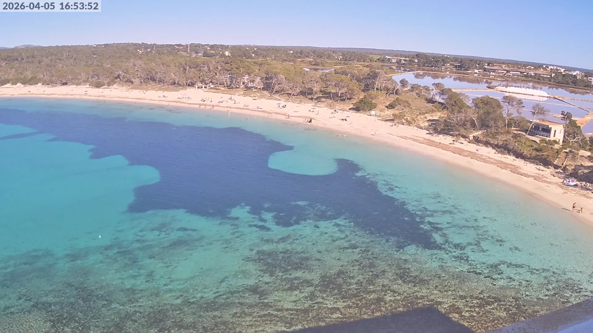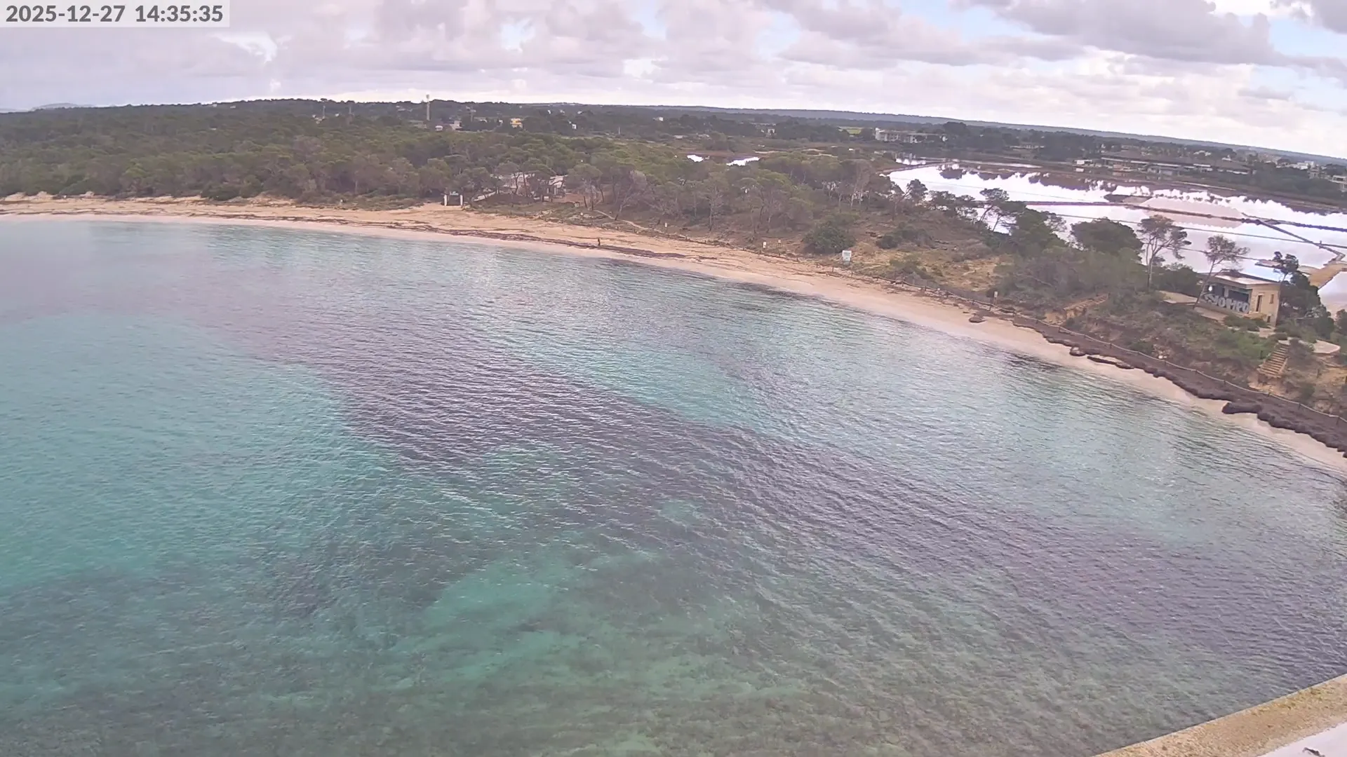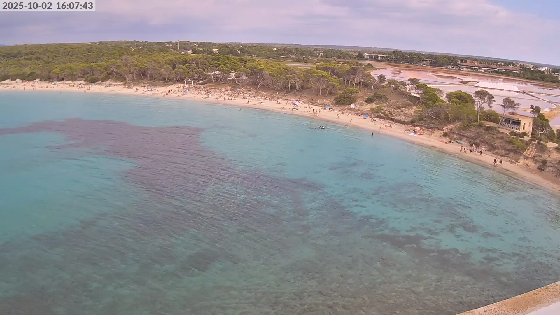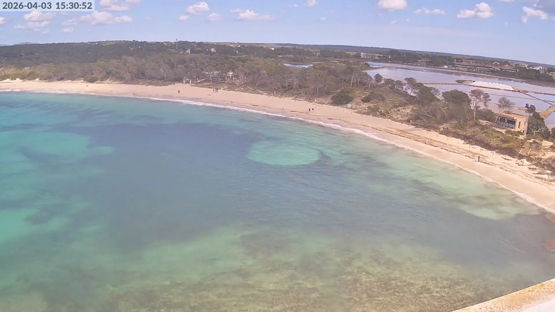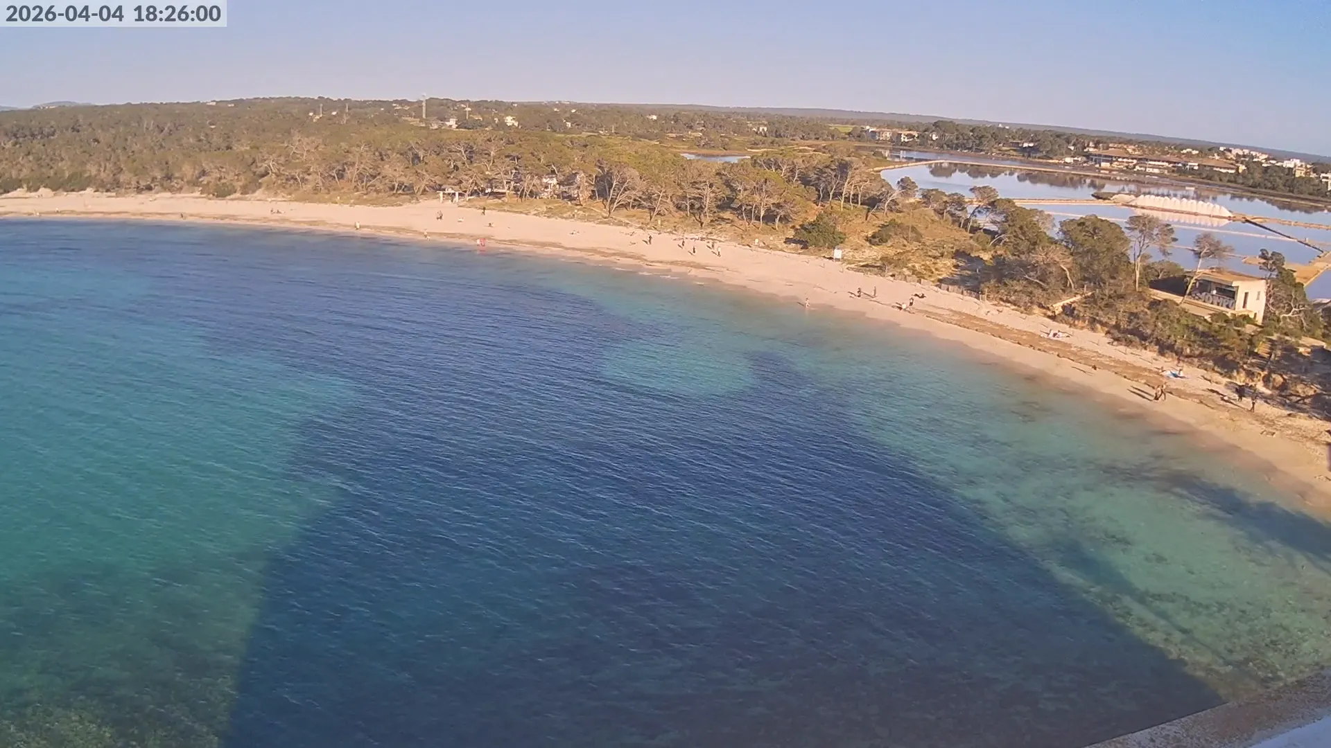 Consulta en directo el estado de Platja d’es Estanys, una de las playas más tranquilas y paradisíacas de Mallorca, situada junto a Platja des Trenc. Desde esta cámara ubicada en el Hotel Marquès del Palmer, obtienes una vista panorámica de sus aguas cristalinas, la arena dorada y las condiciones meteorológicas en tiempo real, lo que la convierte en una referencia ideal para quienes planean una visita a la zona. Si te interesa ver cómo cambia el paisaje con el paso del tiempo, accede a los timelapses de los últimos 7 días. Esta herramienta te permite comprobar la variabilidad climática, el estado del mar y la afluencia de visitantes en la playa.