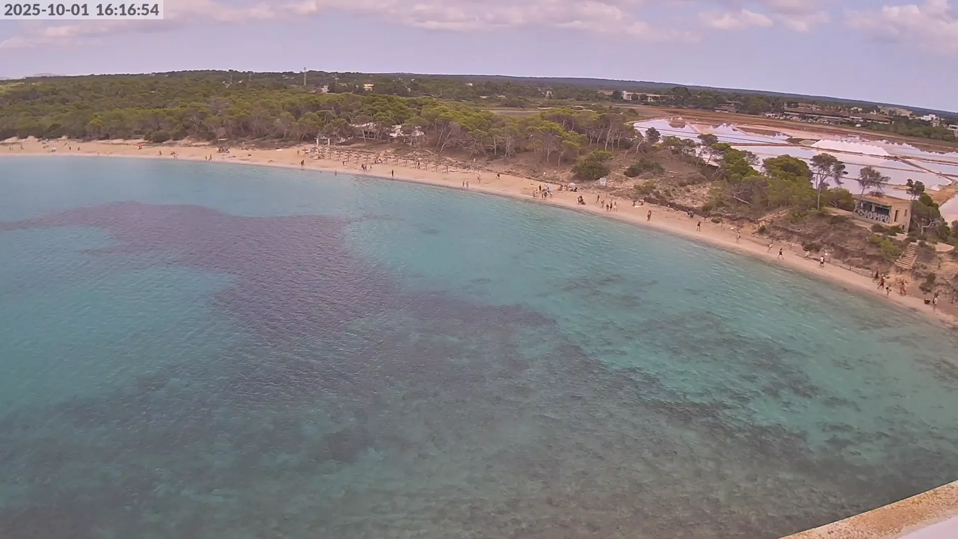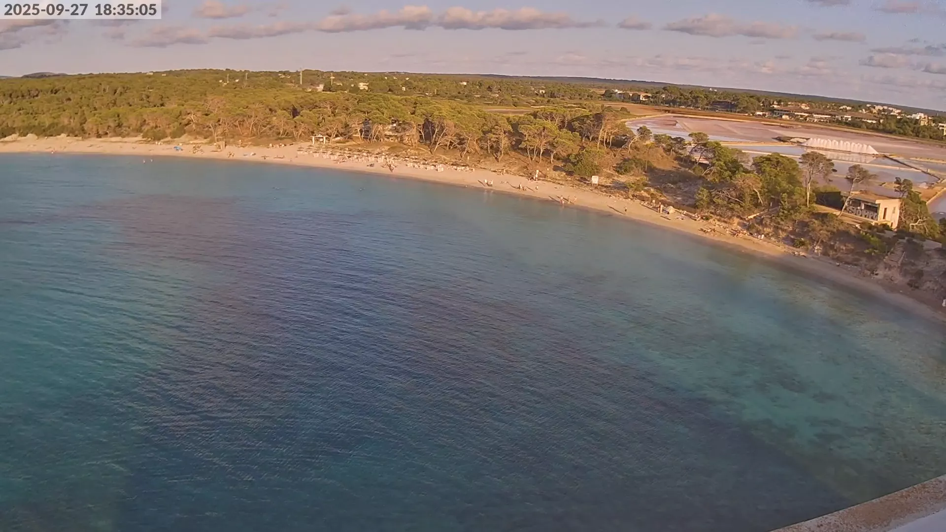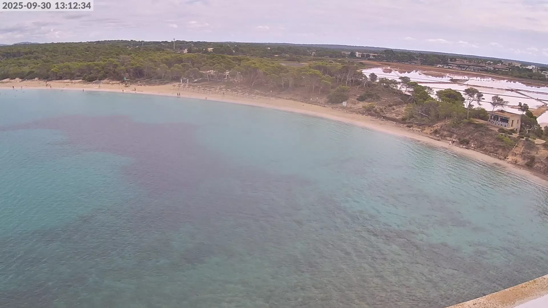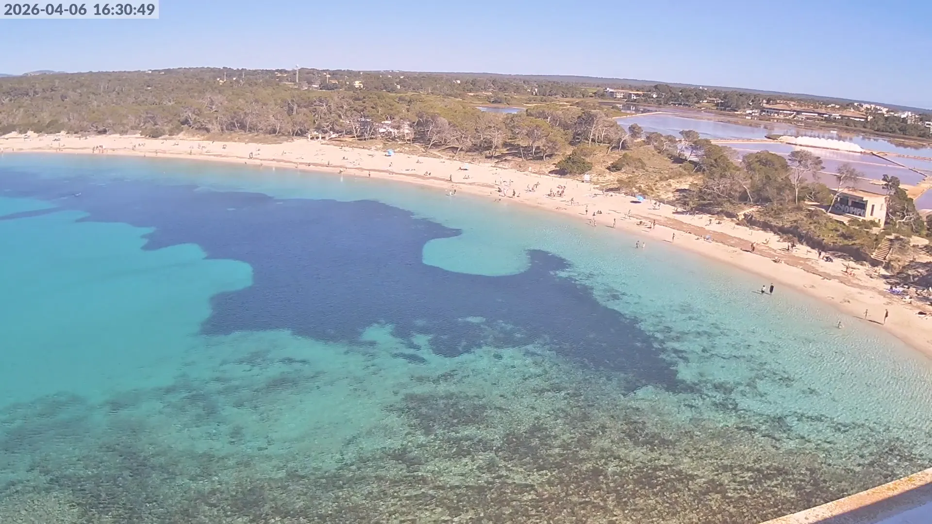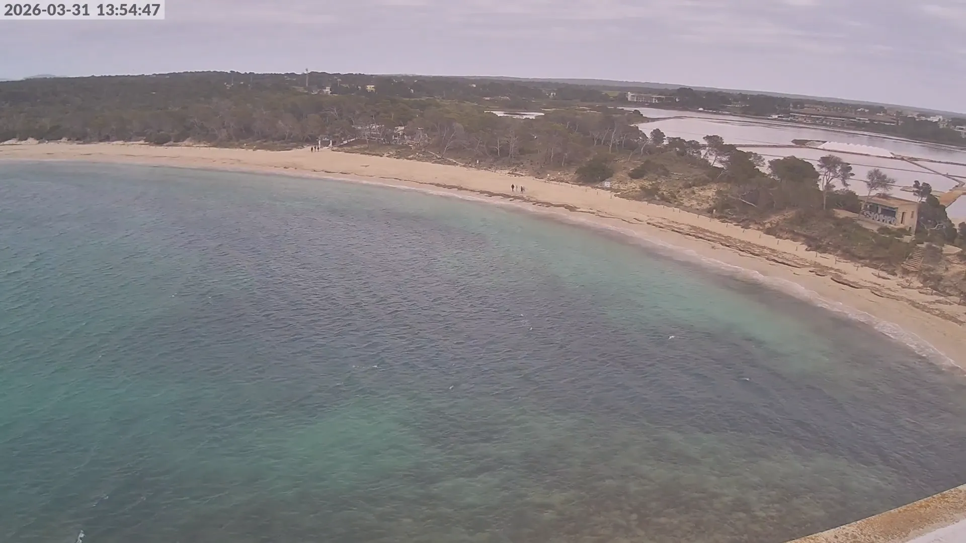 Consulta en directo el estado de Platja d’es Estanys, una de las playas más tranquilas y paradisíacas de Mallorca, situada junto a Platja des Trenc. Desde esta cámara ubicada en el Hotel Marquès del Palmer, obtienes una vista panorámica de sus aguas cristalinas, la arena dorada y las condiciones meteorológicas en tiempo real, lo que la convierte en una referencia ideal para quienes planean una visita a la zona. Si te interesa ver cómo cambia el paisaje con el paso del tiempo, accede a los timelapses de los últimos 7 días. Esta herramienta te permite comprobar la variabilidad climática, el estado del mar y la afluencia de visitantes en la playa.