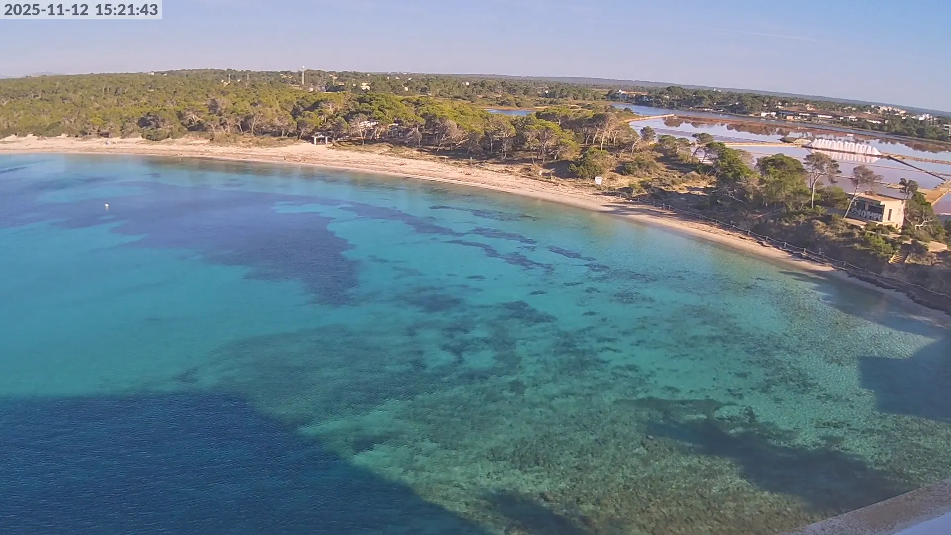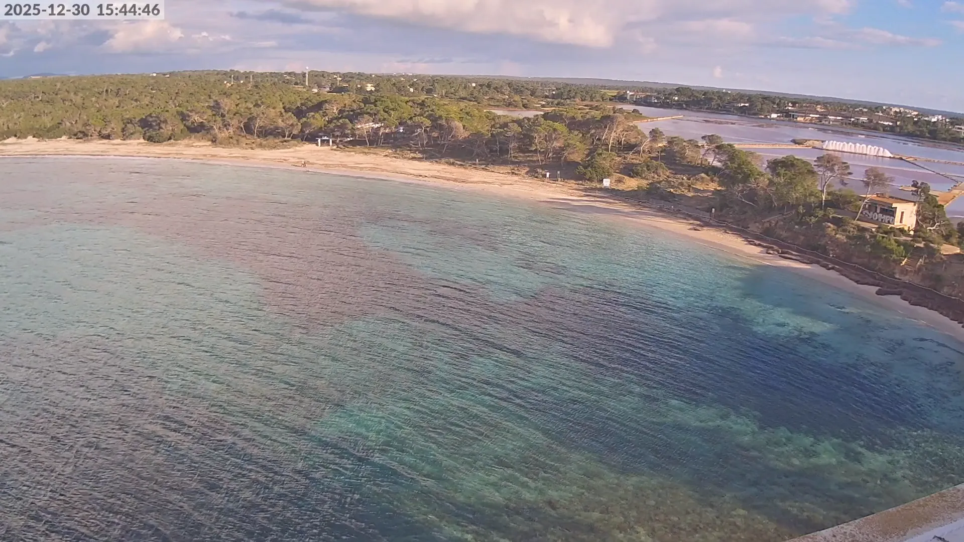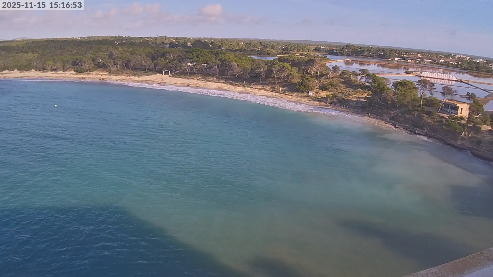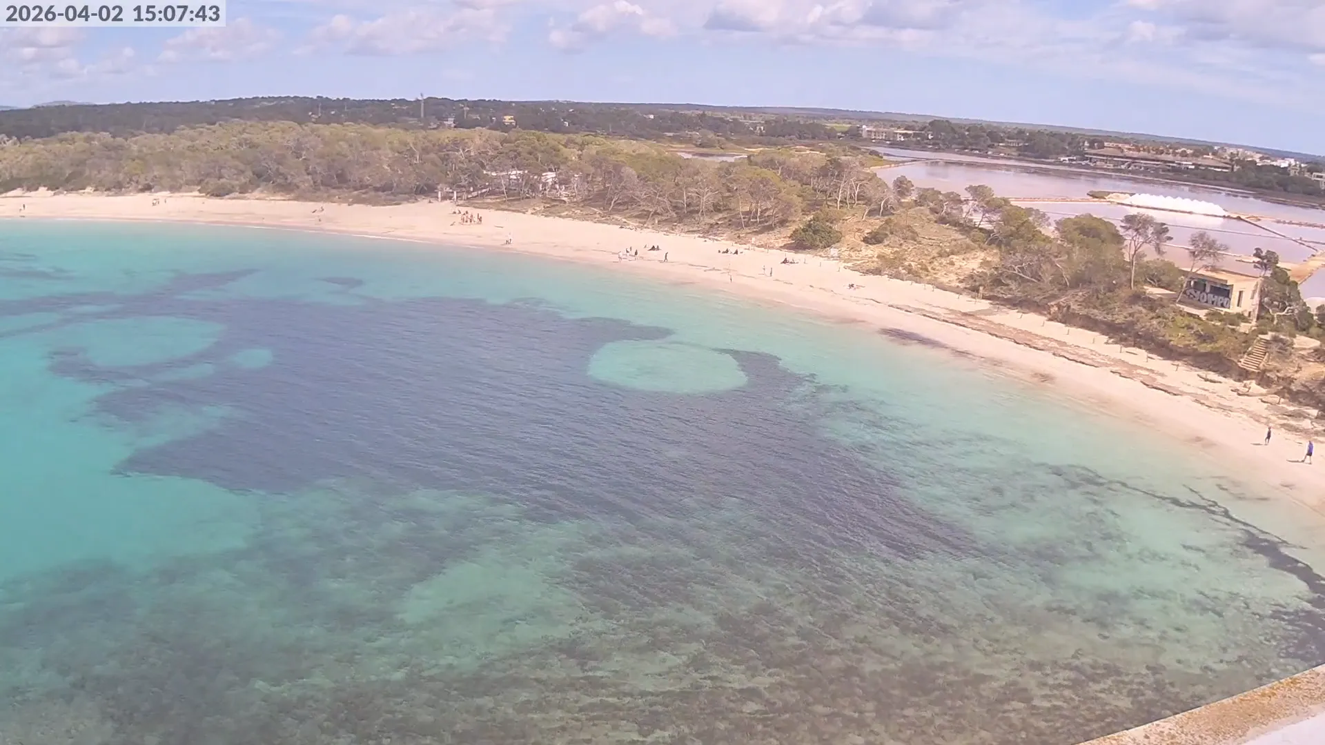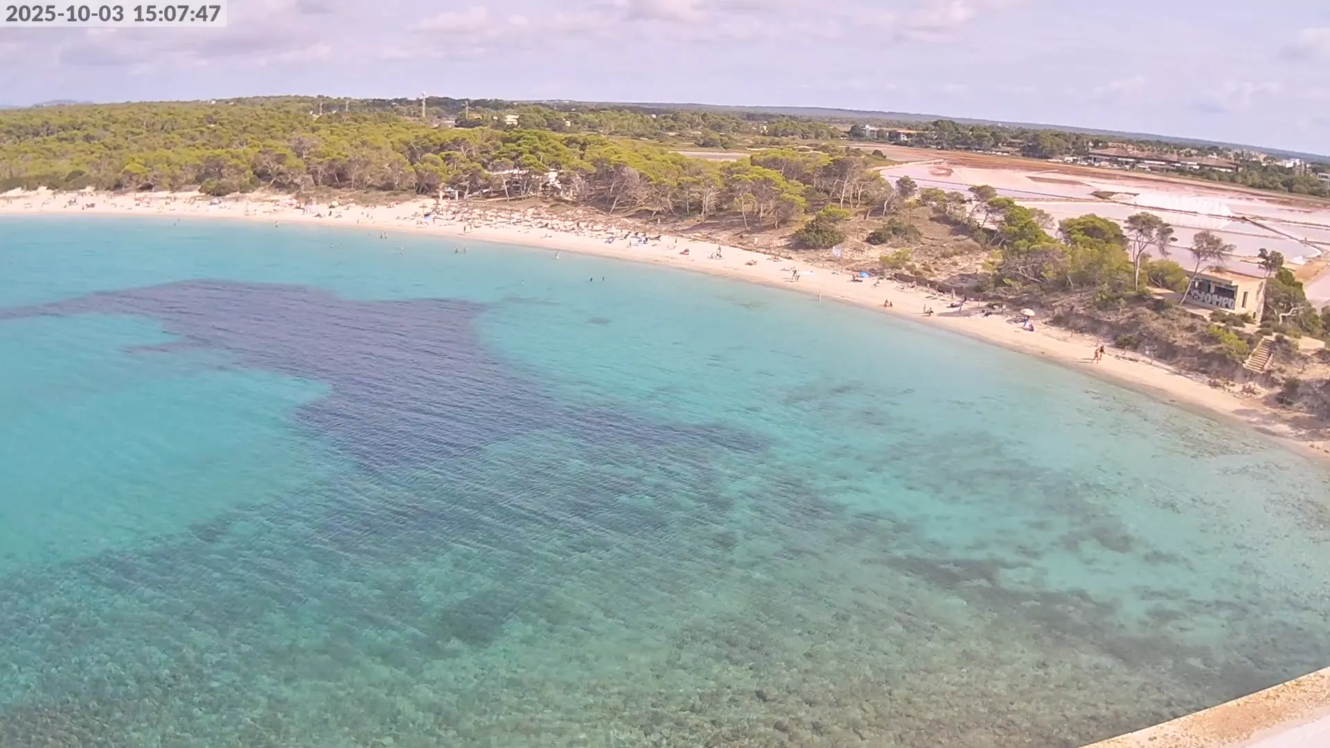 Consulta en directo el estado de Platja d’es Estanys, una de las playas más tranquilas y paradisíacas de Mallorca, situada junto a Platja des Trenc. Desde esta cámara ubicada en el Hotel Marquès del Palmer, obtienes una vista panorámica de sus aguas cristalinas, la arena dorada y las condiciones meteorológicas en tiempo real, lo que la convierte en una referencia ideal para quienes planean una visita a la zona. Si te interesa ver cómo cambia el paisaje con el paso del tiempo, accede a los timelapses de los últimos 7 días. Esta herramienta te permite comprobar la variabilidad climática, el estado del mar y la afluencia de visitantes en la playa.