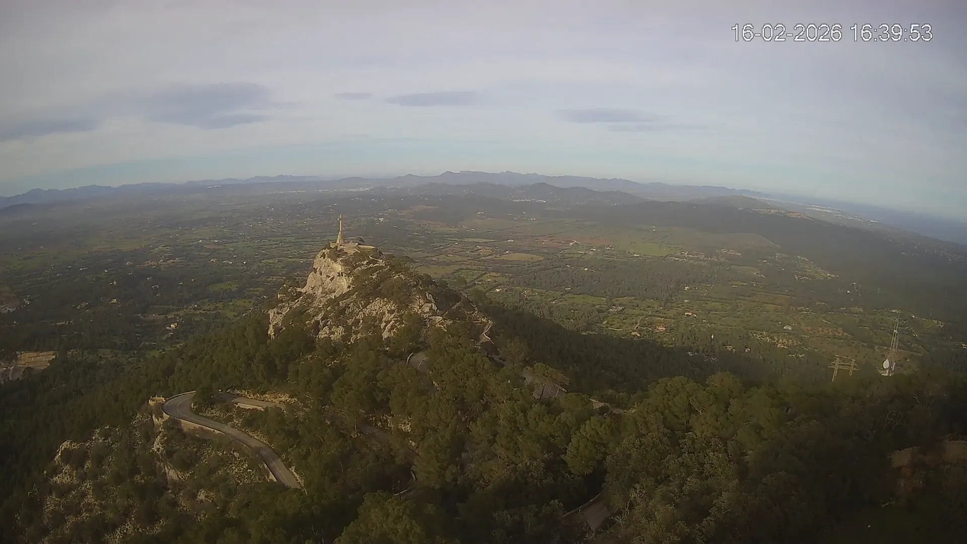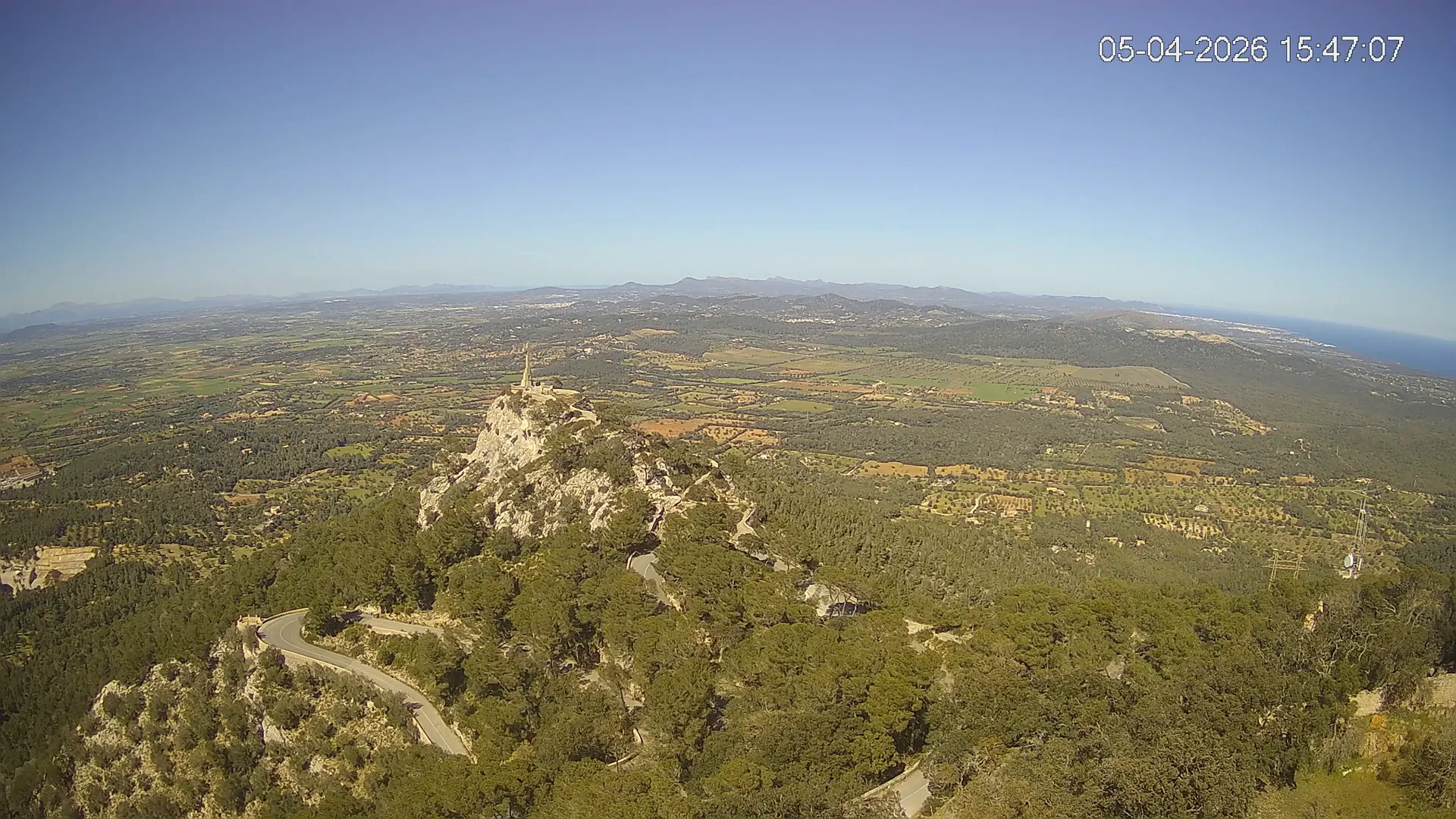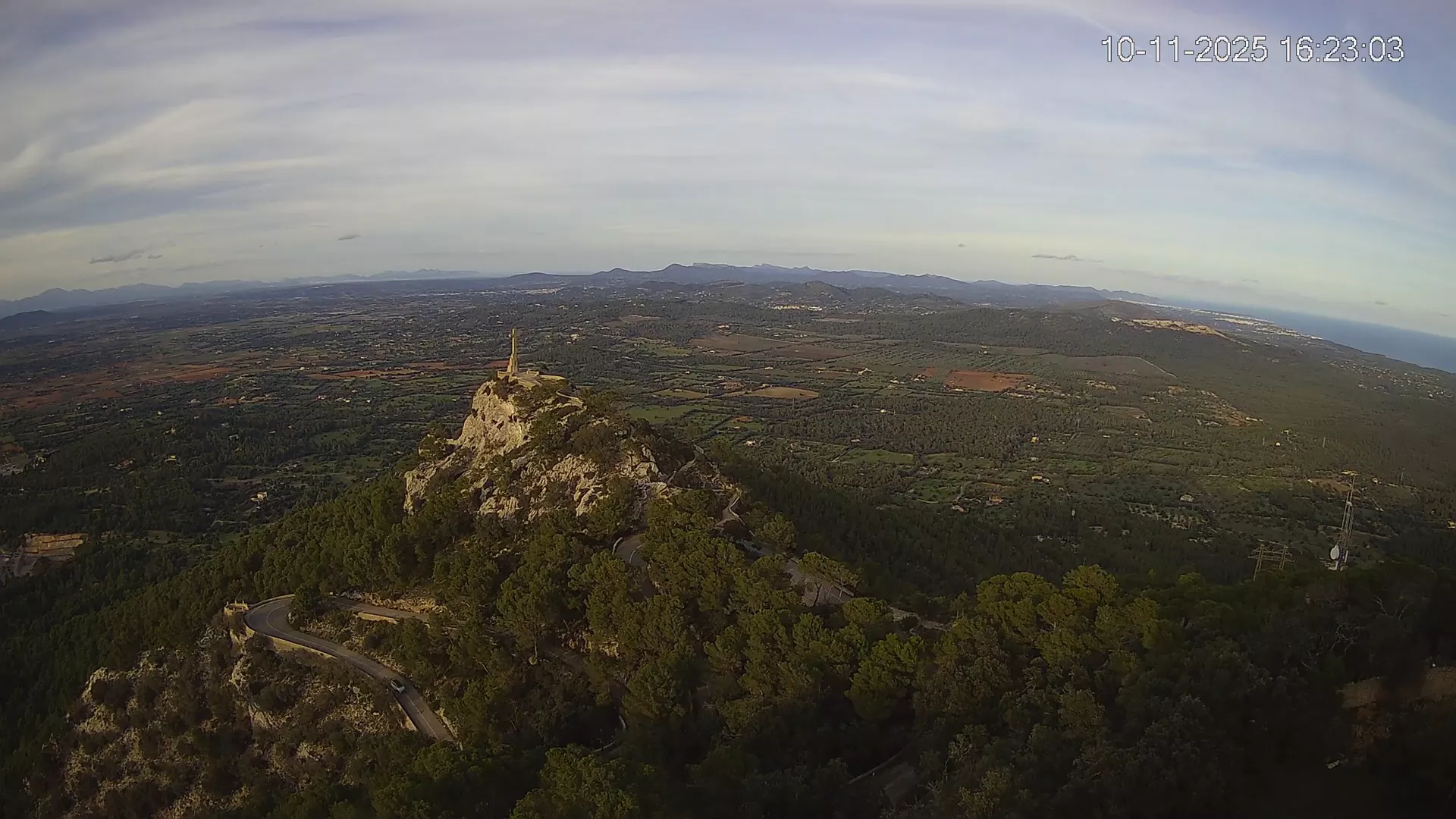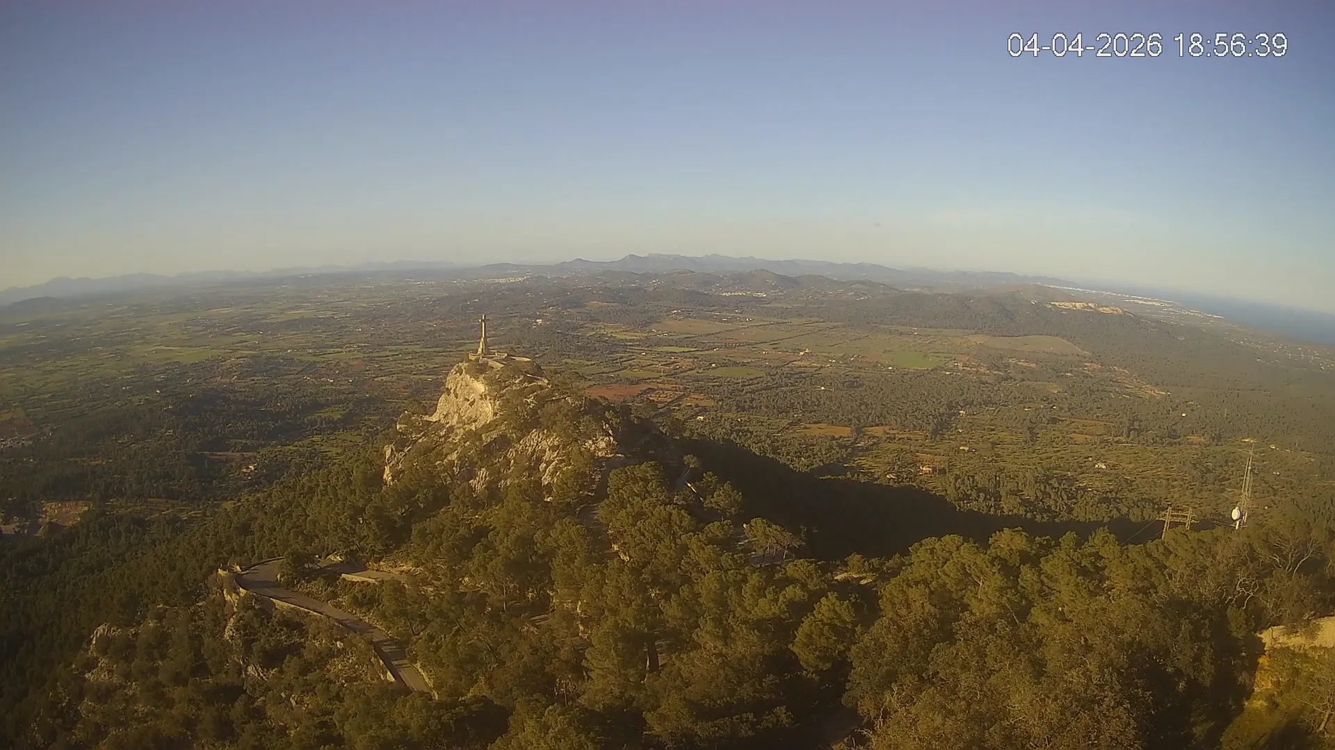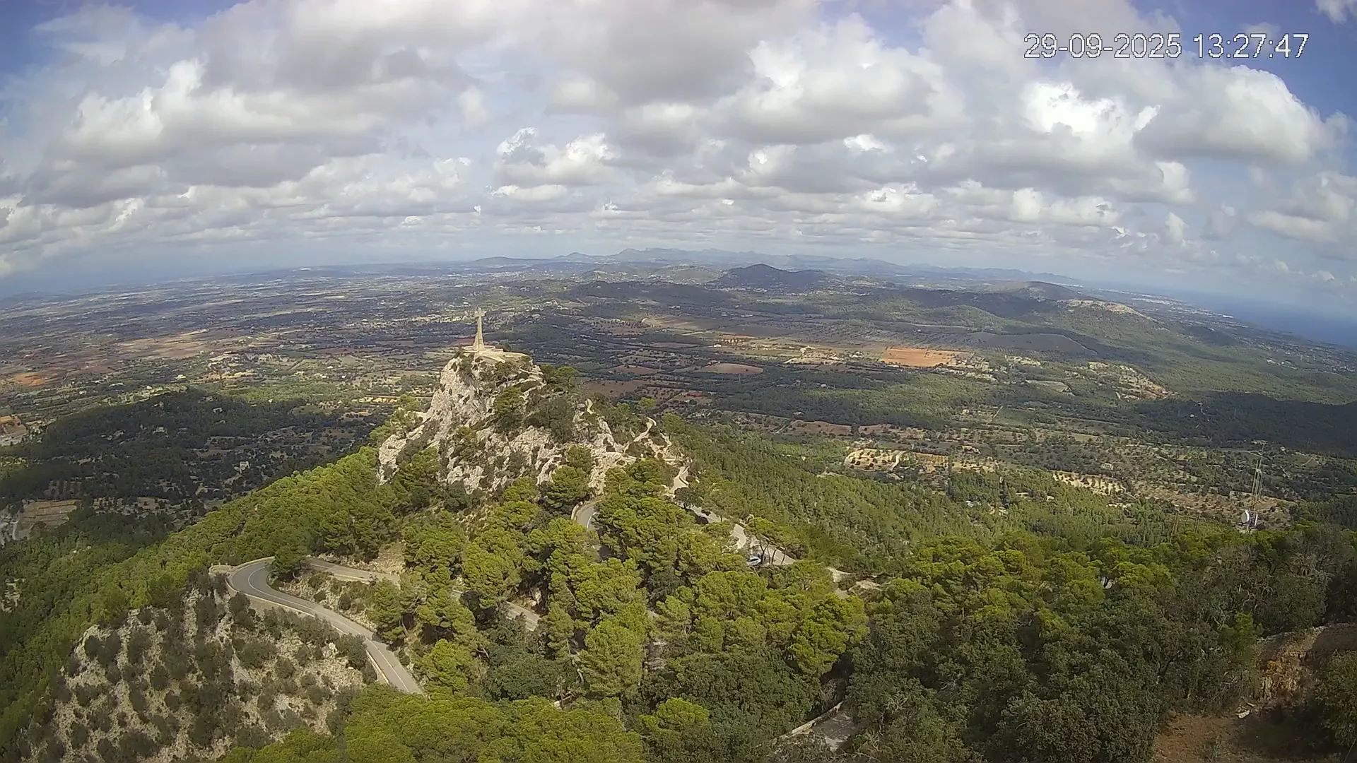 Desde la cima del Puig de Sant Salvador, esta cámara ubicada en el histórico Santuario de Sant Salvador ofrece una vista en tiempo real de uno de los puntos más elevados del sureste de Mallorca. La panorámica abarca el paisaje rural del Pla de Mallorca, colinas cubiertas de vegetación y, en días despejados, vistas que alcanzan la costa y el horizonte. Accede a los timelapses de los últimos 7 días y observa cómo cambian la luz y el clima a lo largo del día. Desde amaneceres iluminando los campos hasta atardeceres tiñendo el horizonte, descubre la transformación del entorno así como tú quieras. Visiona es perfecta para excursionistas, fotógrafos o quienes buscan disfrutar de una vista privilegiada de Mallorca desde las alturas.