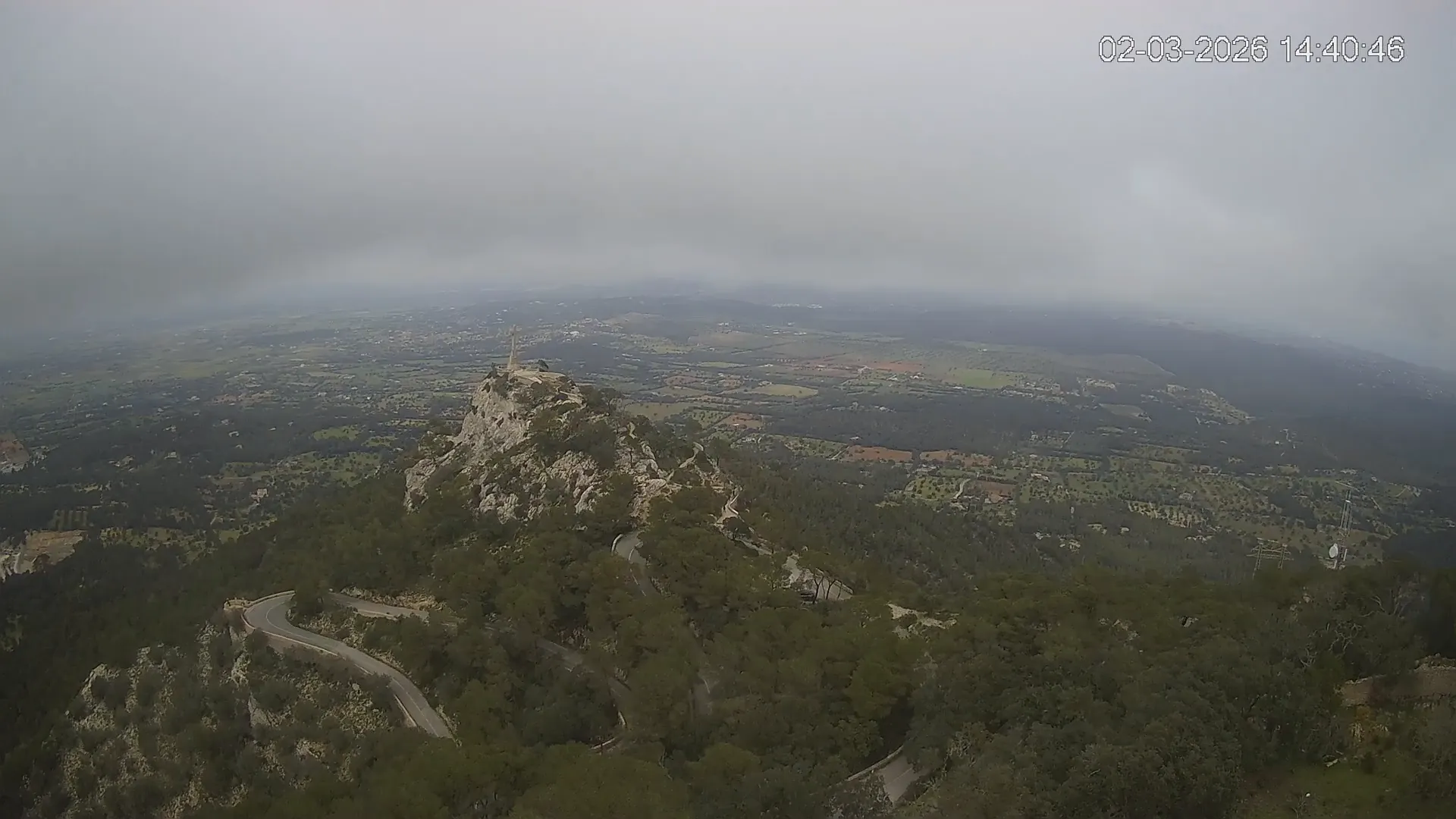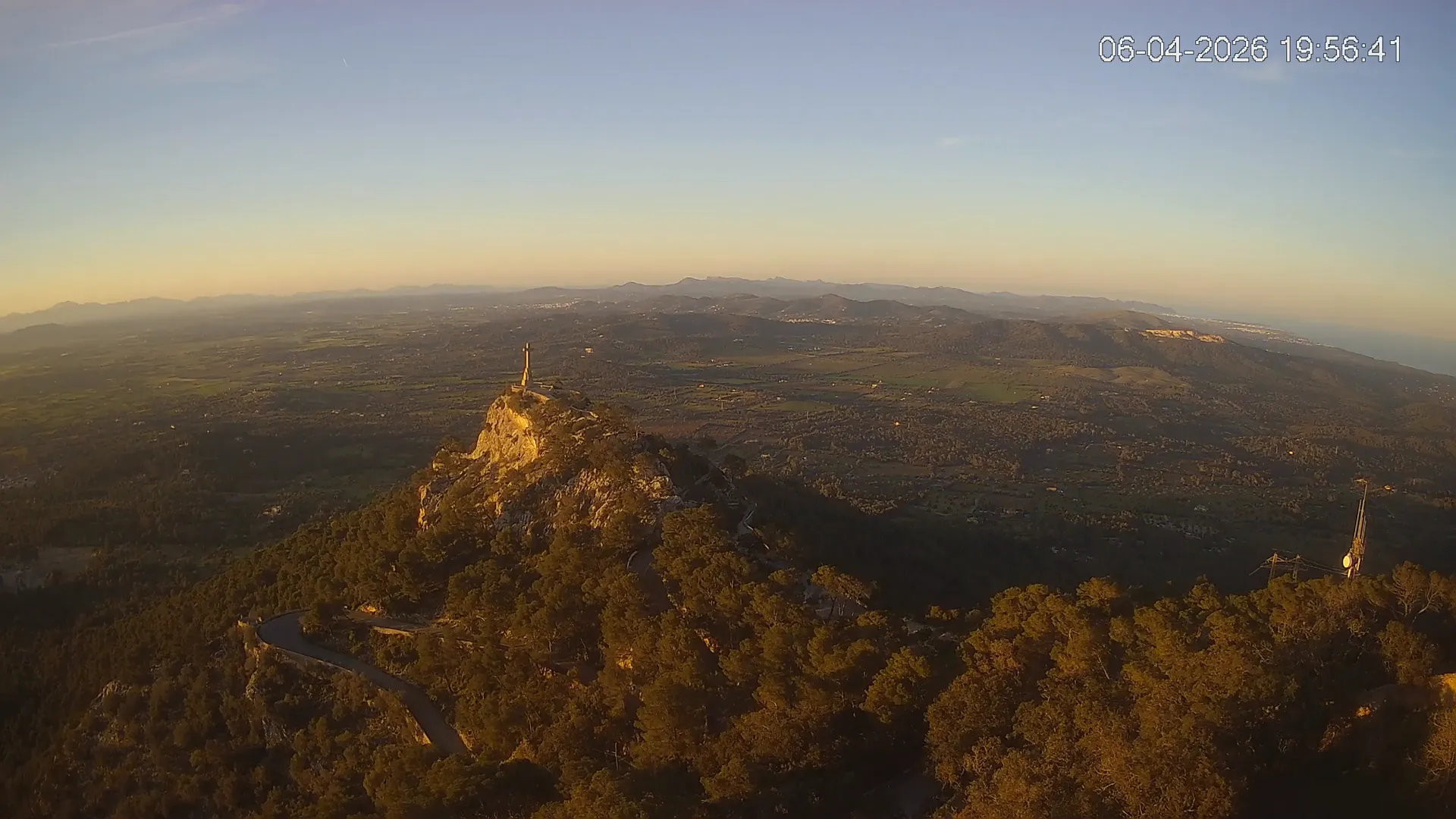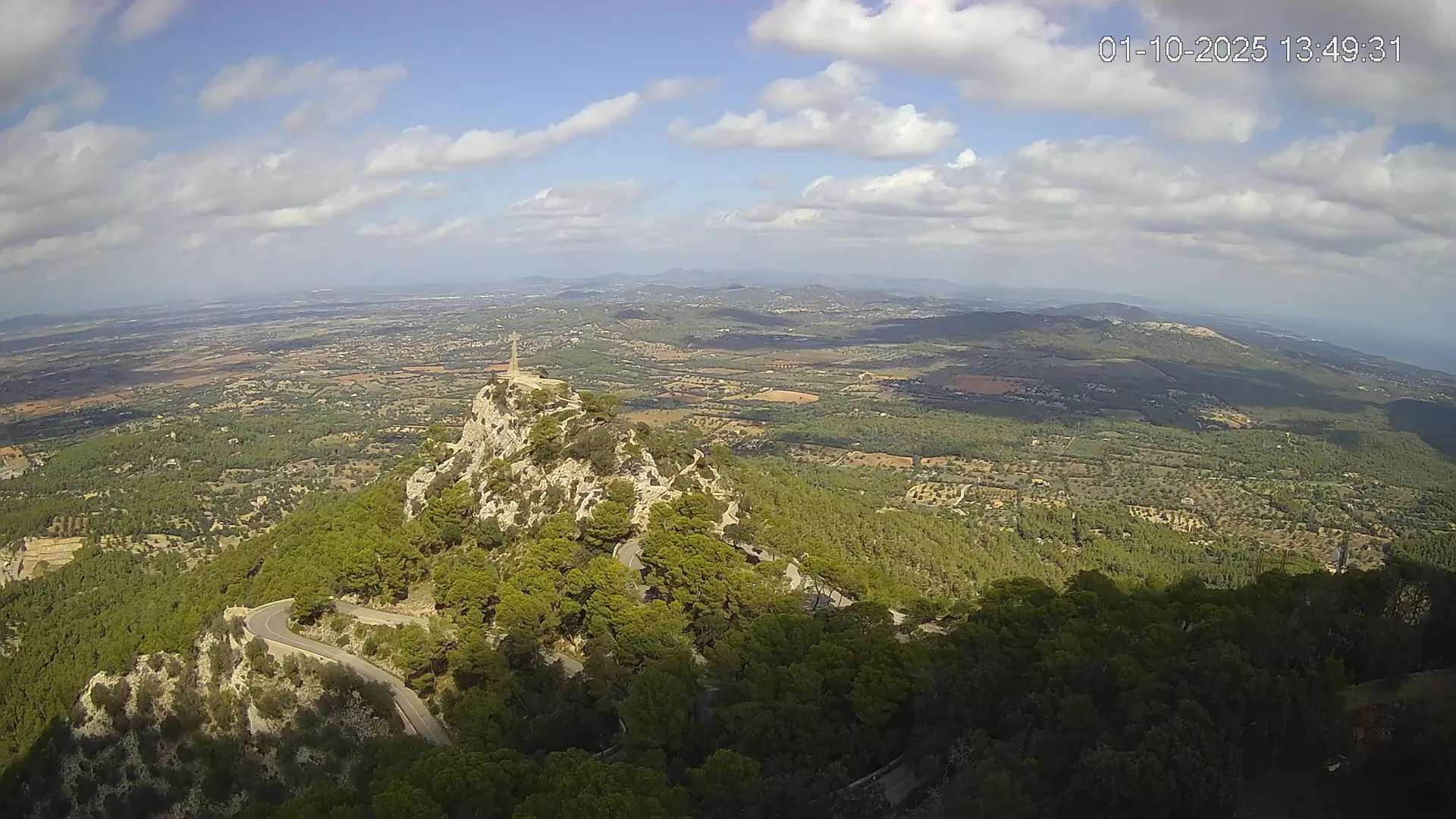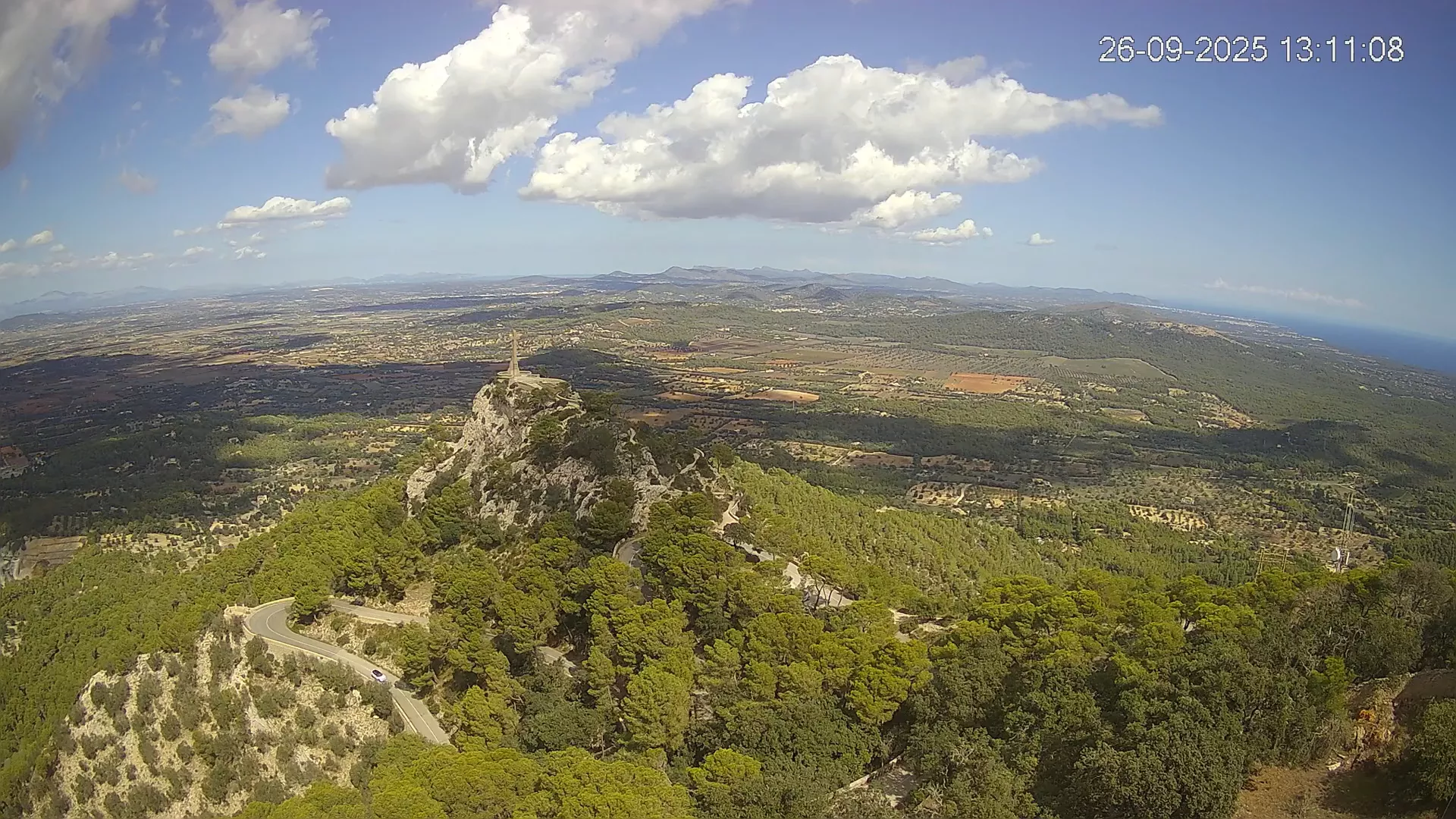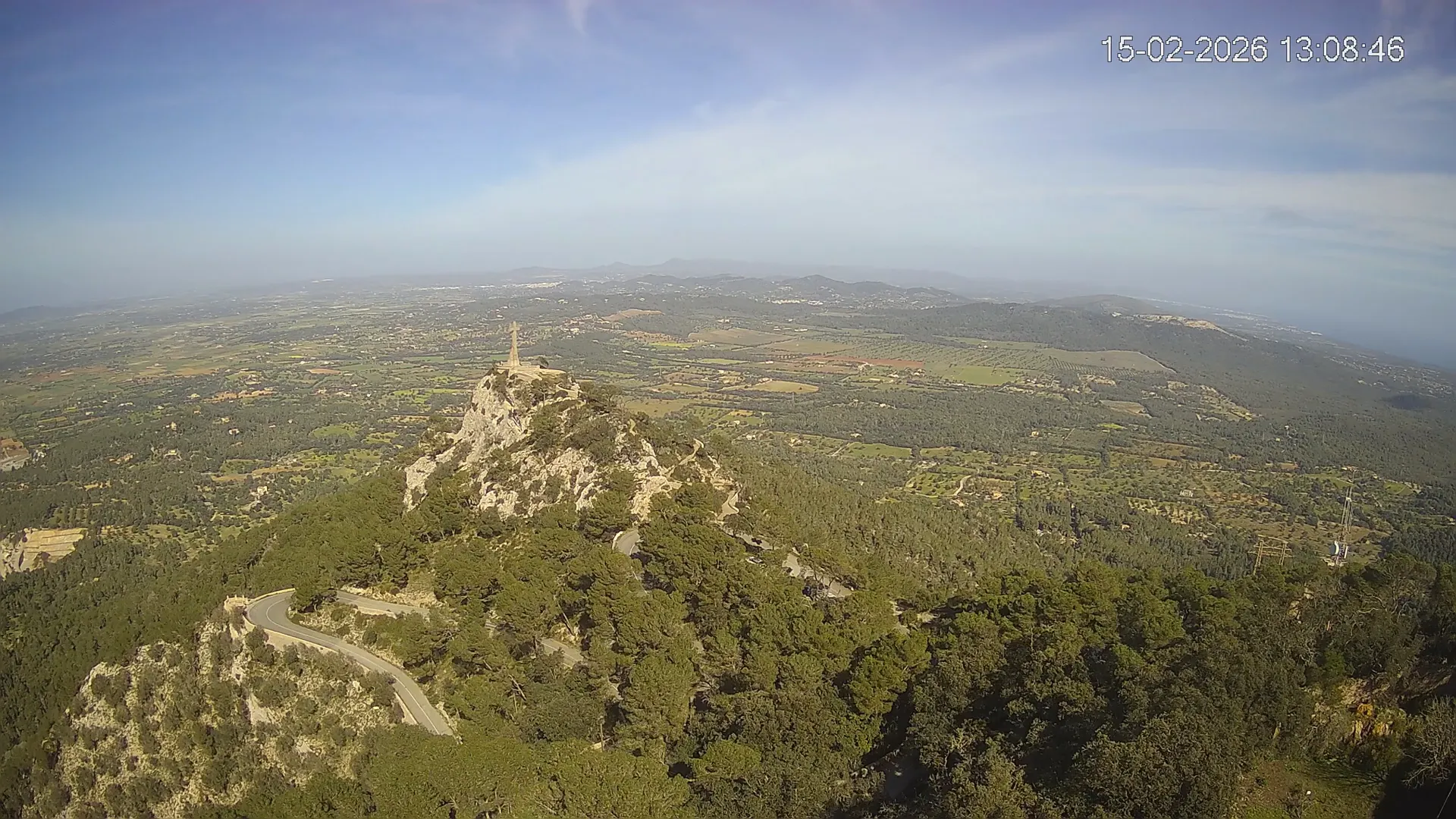 Desde la cima del Puig de Sant Salvador, esta cámara ubicada en el histórico Santuario de Sant Salvador ofrece una vista en tiempo real de uno de los puntos más elevados del sureste de Mallorca. La panorámica abarca el paisaje rural del Pla de Mallorca, colinas cubiertas de vegetación y, en días despejados, vistas que alcanzan la costa y el horizonte. Accede a los timelapses de los últimos 7 días y observa cómo cambian la luz y el clima a lo largo del día. Desde amaneceres iluminando los campos hasta atardeceres tiñendo el horizonte, descubre la transformación del entorno así como tú quieras. Visiona es perfecta para excursionistas, fotógrafos o quienes buscan disfrutar de una vista privilegiada de Mallorca desde las alturas.