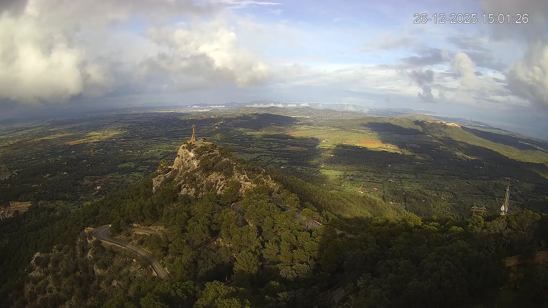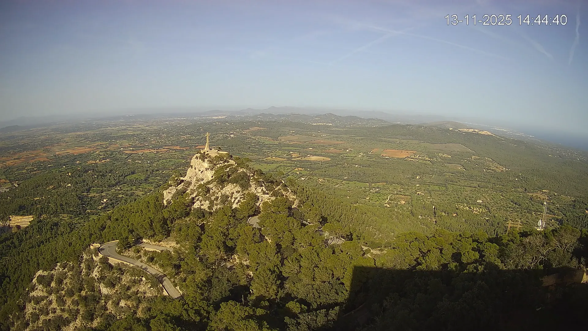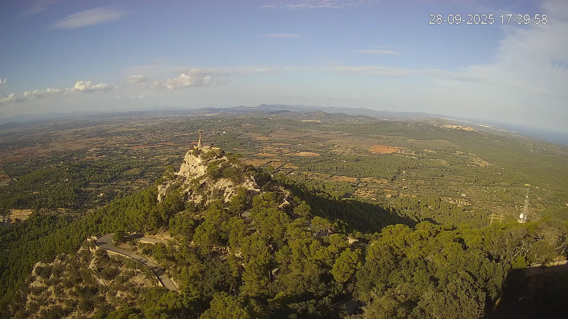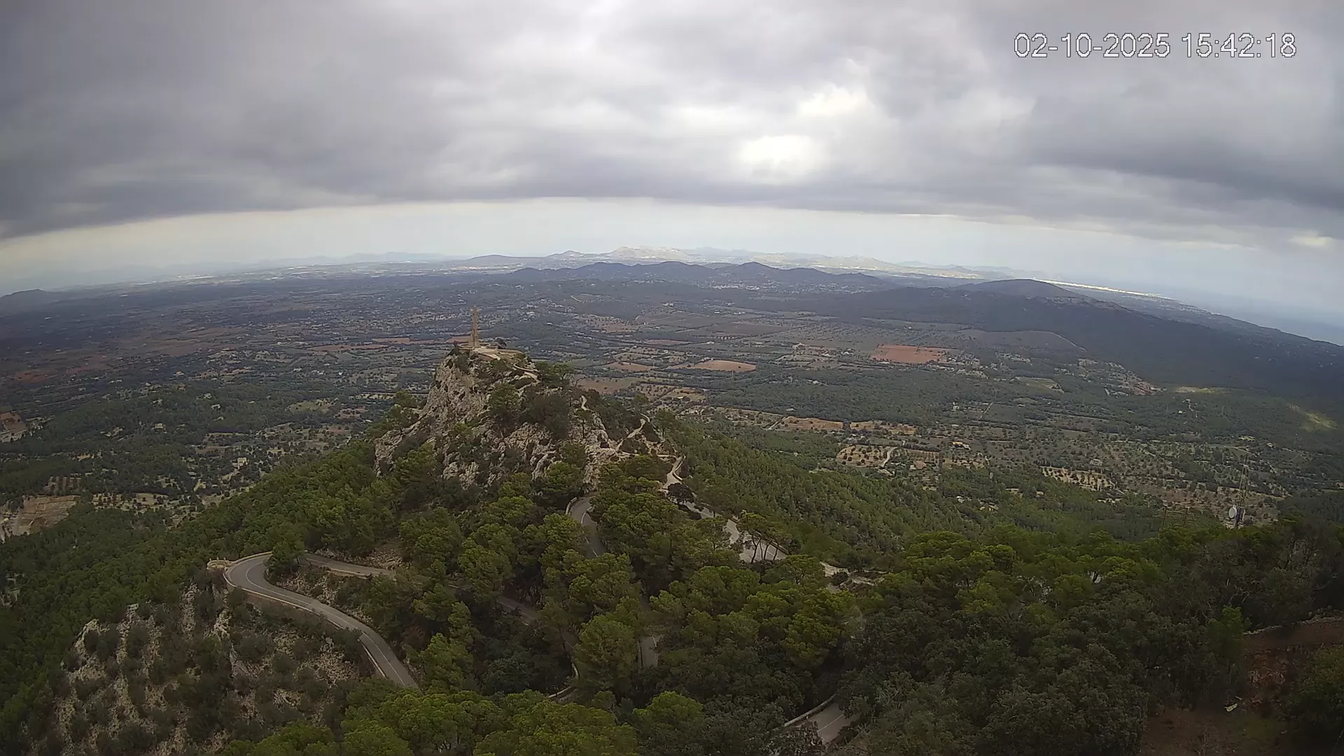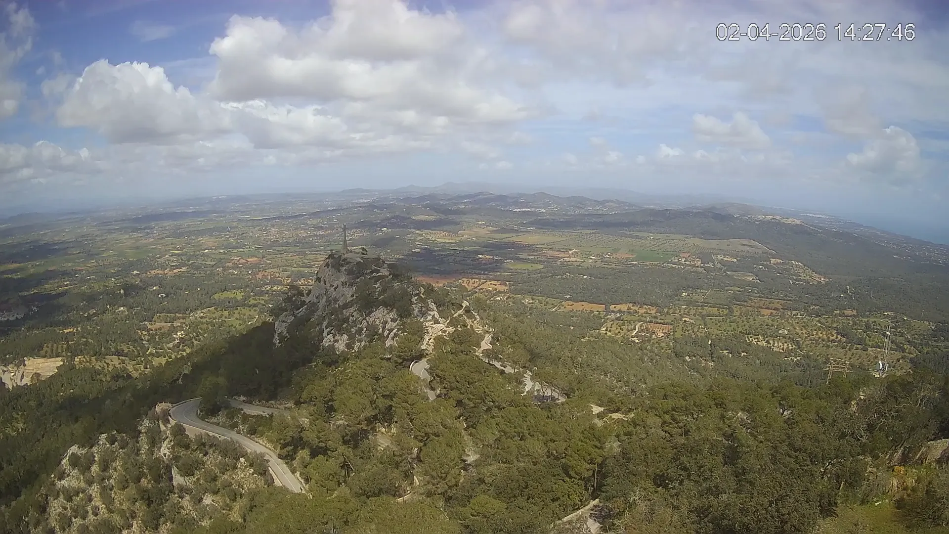 Desde la cima del Puig de Sant Salvador, esta cámara ubicada en el histórico Santuario de Sant Salvador ofrece una vista en tiempo real de uno de los puntos más elevados del sureste de Mallorca. La panorámica abarca el paisaje rural del Pla de Mallorca, colinas cubiertas de vegetación y, en días despejados, vistas que alcanzan la costa y el horizonte. Accede a los timelapses de los últimos 7 días y observa cómo cambian la luz y el clima a lo largo del día. Desde amaneceres iluminando los campos hasta atardeceres tiñendo el horizonte, descubre la transformación del entorno así como tú quieras. Visiona es perfecta para excursionistas, fotógrafos o quienes buscan disfrutar de una vista privilegiada de Mallorca desde las alturas.