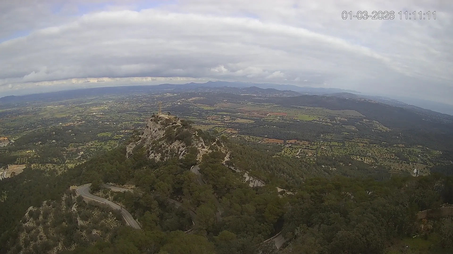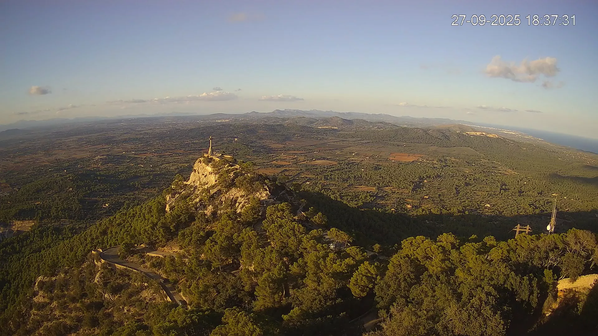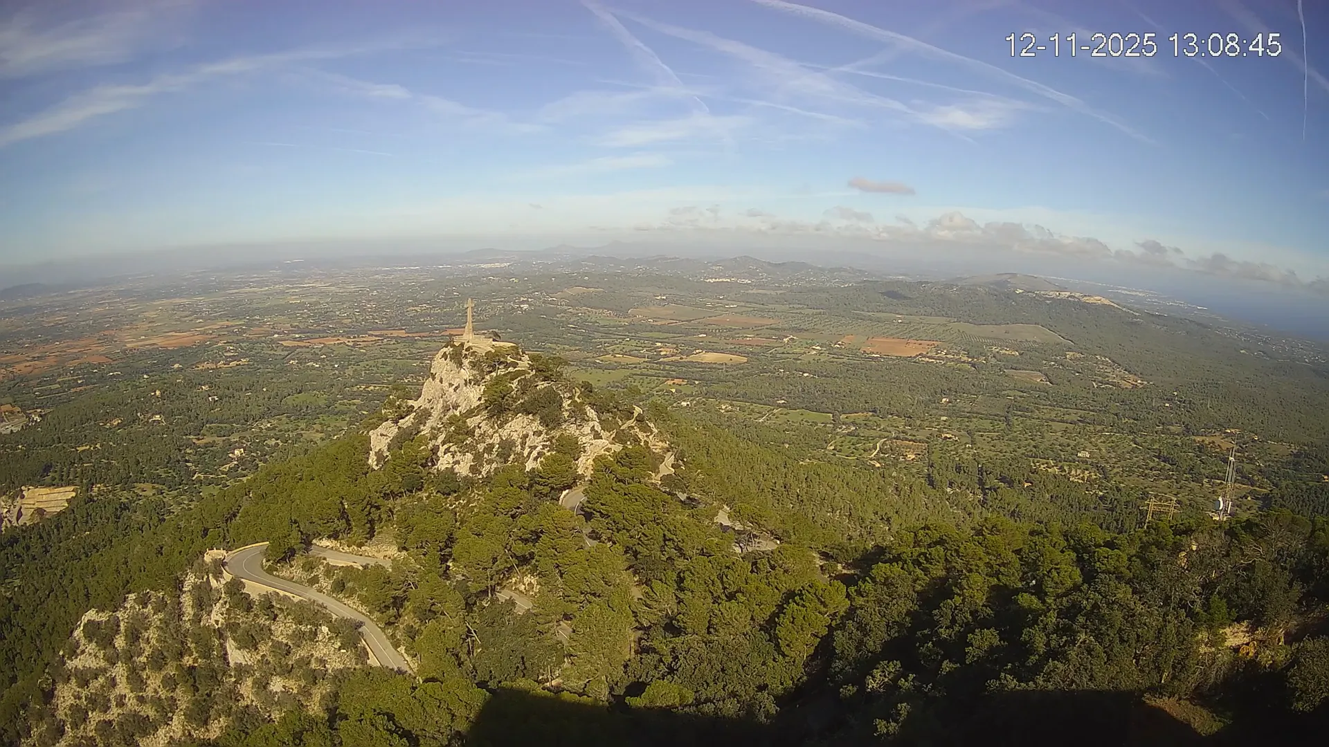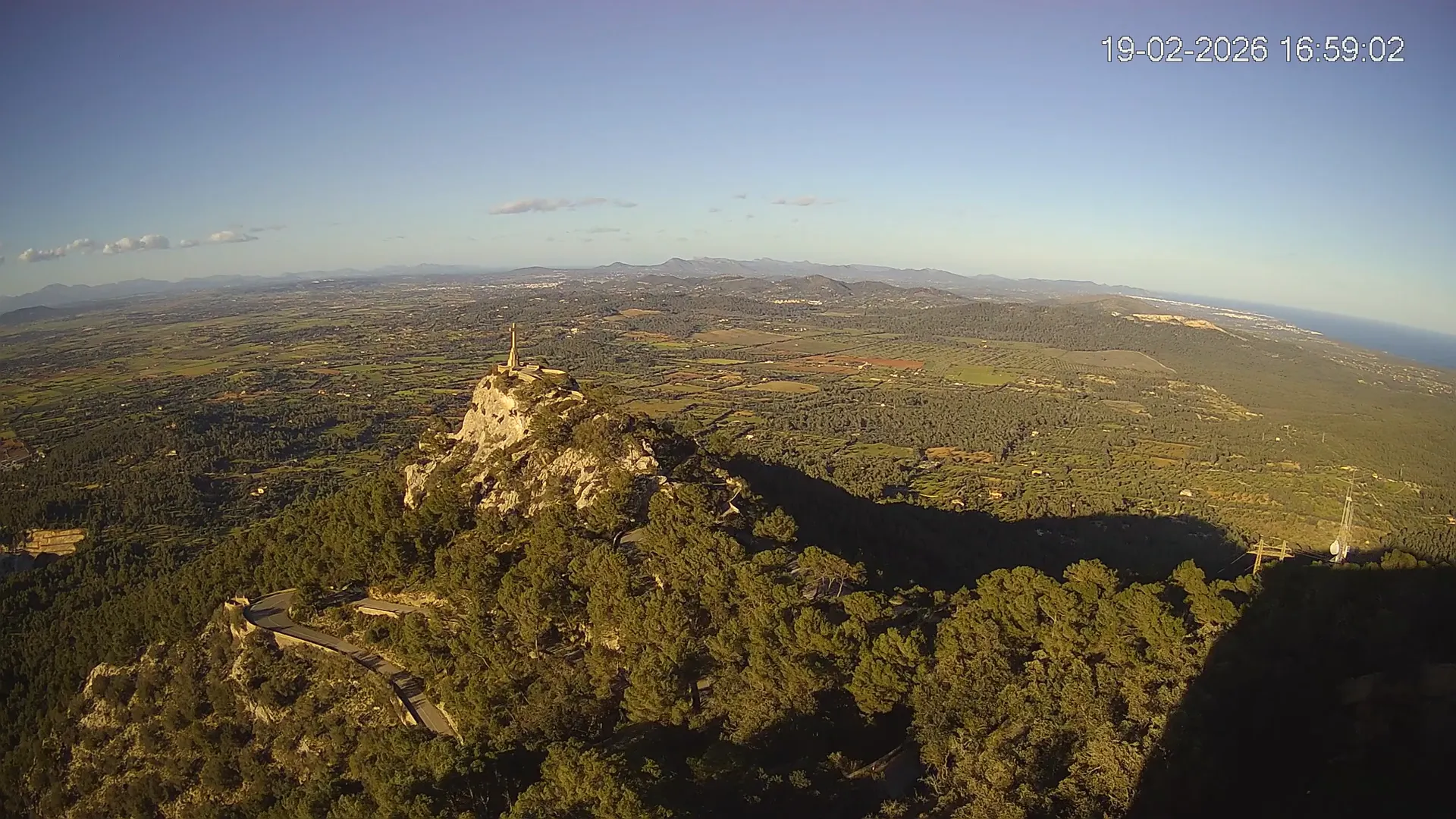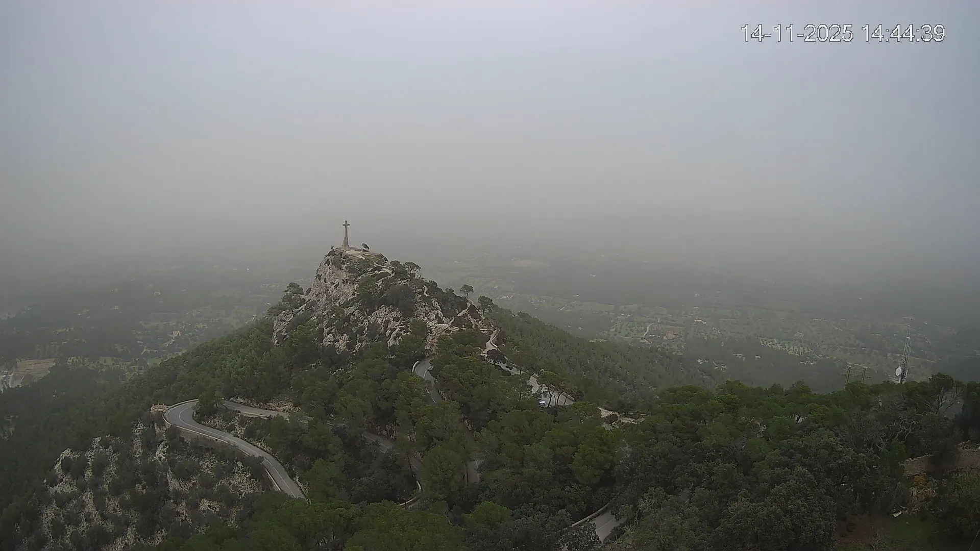 Desde la cima del Puig de Sant Salvador, esta cámara ubicada en el histórico Santuario de Sant Salvador ofrece una vista en tiempo real de uno de los puntos más elevados del sureste de Mallorca. La panorámica abarca el paisaje rural del Pla de Mallorca, colinas cubiertas de vegetación y, en días despejados, vistas que alcanzan la costa y el horizonte. Accede a los timelapses de los últimos 7 días y observa cómo cambian la luz y el clima a lo largo del día. Desde amaneceres iluminando los campos hasta atardeceres tiñendo el horizonte, descubre la transformación del entorno así como tú quieras. Visiona es perfecta para excursionistas, fotógrafos o quienes buscan disfrutar de una vista privilegiada de Mallorca desde las alturas.