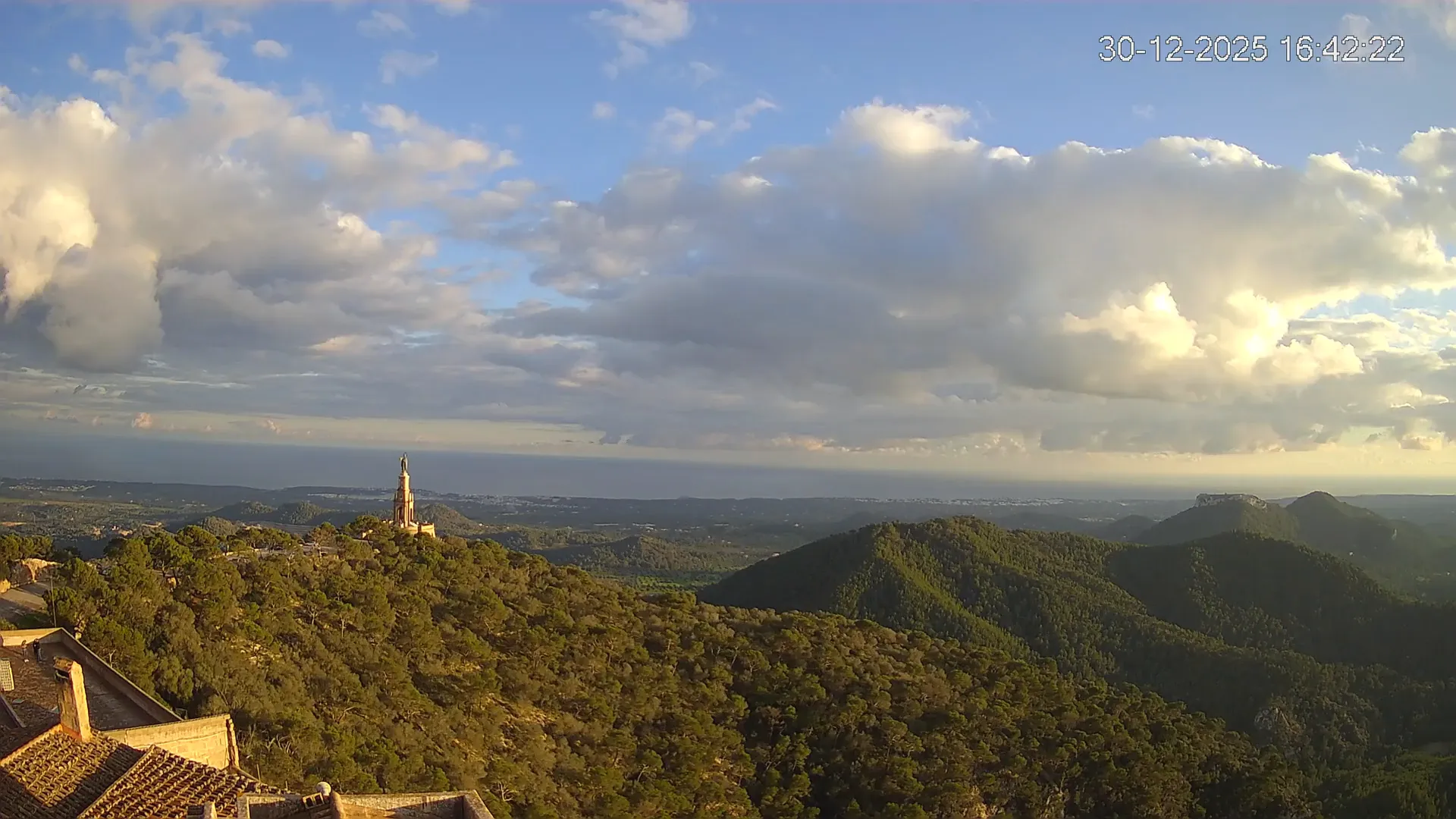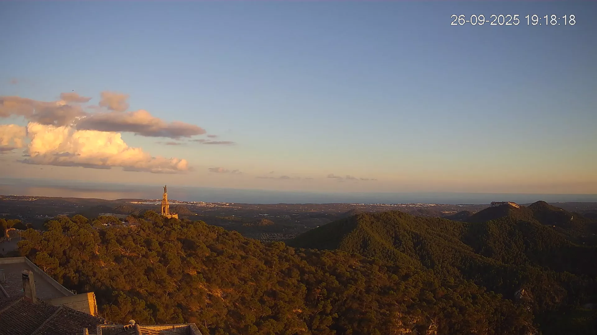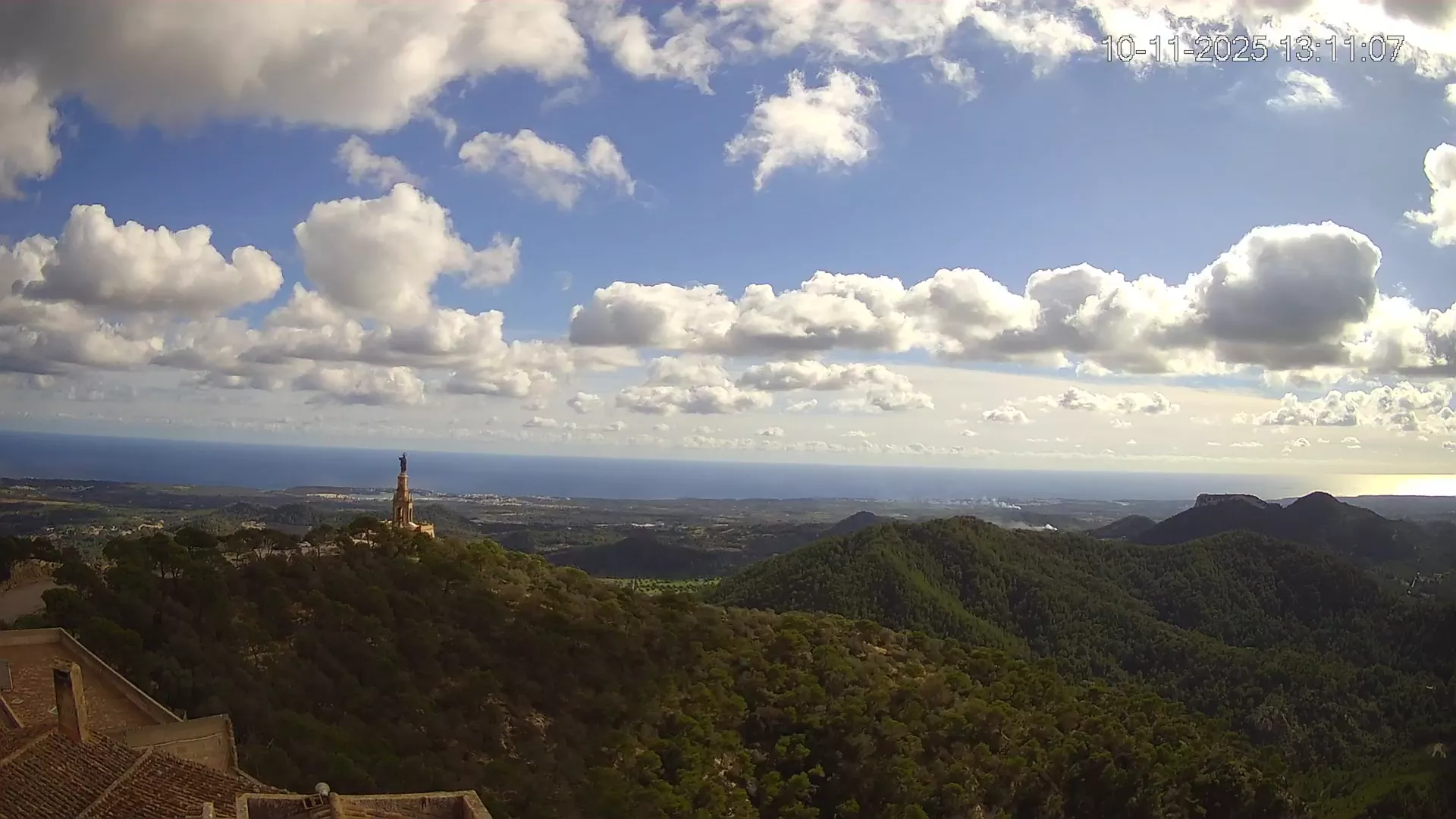 ¿Quieres ver Mallorca desde las alturas? Esta cámara, situada en el histórico Santuario de Sant Salvador, te ofrece una vista en tiempo real desde uno de los miradores más icónicos del sureste de la isla. Desde aquí, la imagen se abre hacia el paisaje rural del Pla de Mallorca, con colinas onduladas, extensos campos de cultivo y, en días despejados, el perfil de la costa en el horizonte. Explora los timelapses de los últimos 7 días y observa cómo amaneceres suaves, cielos nublados o atardeceres dorados transforman la vista. Tanto si buscas planificar una excursión, seguir el clima o simplemente desconectar con una vista privilegiada, esta cámara te conecta directamente con la esencia natural y cultural de Mallorca.