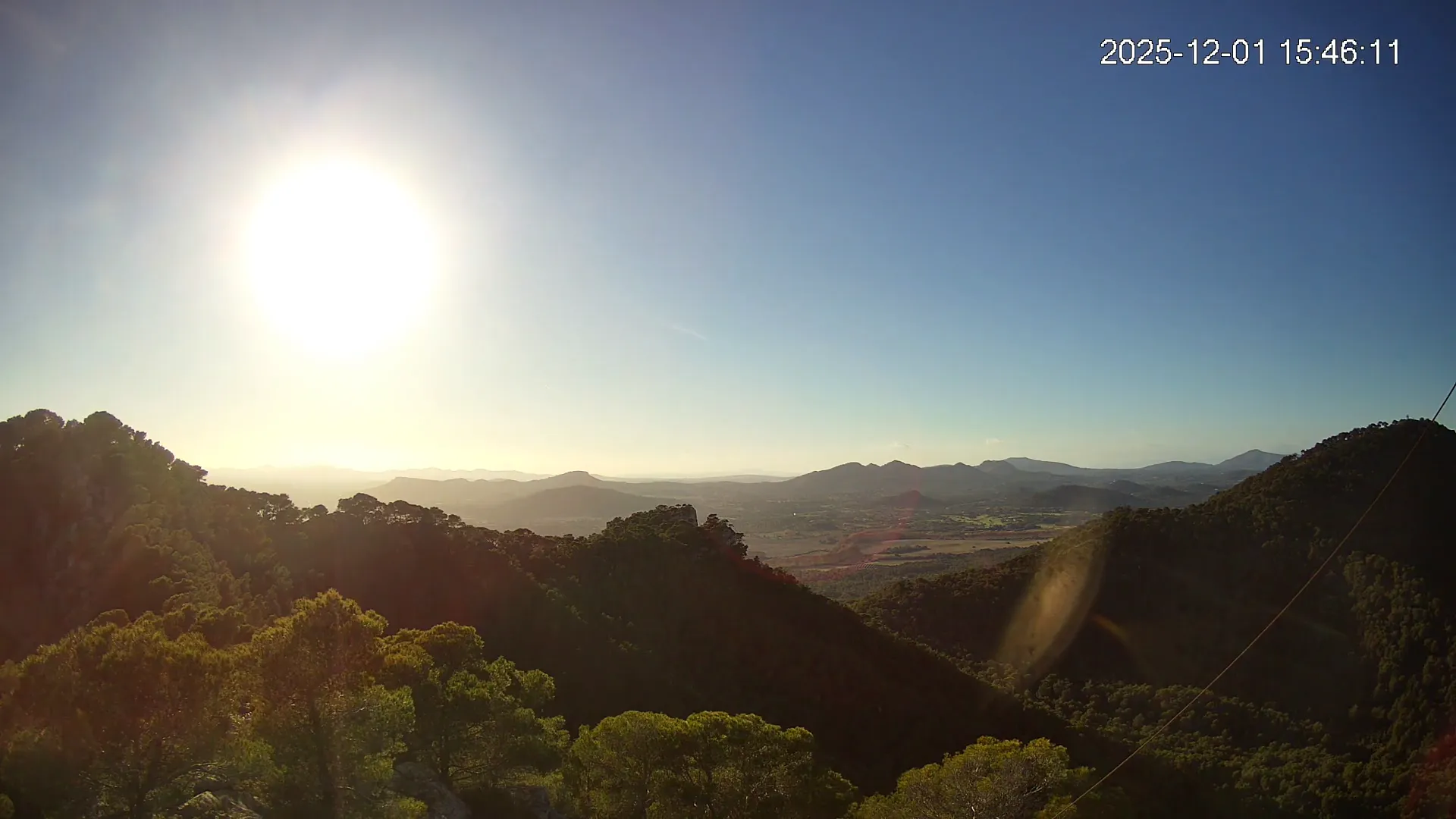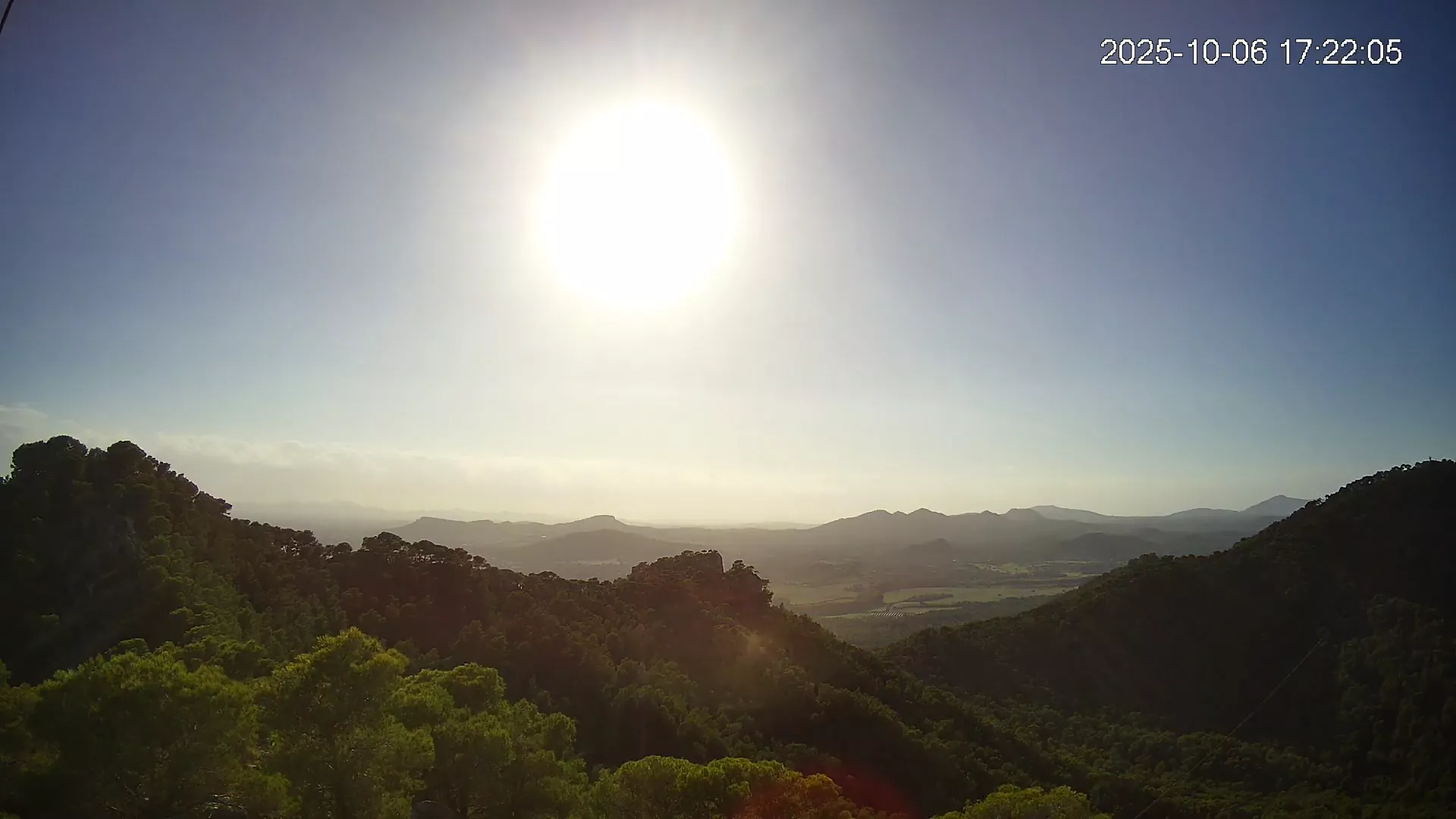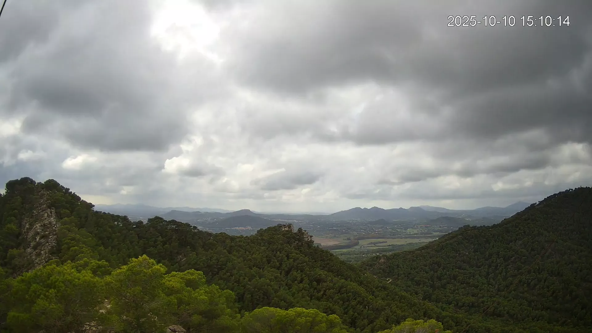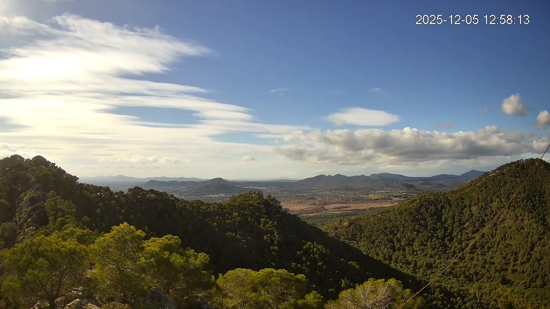 Desde el Puig Negre, en la zona de Canyamel, esta cámara ofrece una vista elevada hacia el interior de Mallorca, abarcando un amplio paisaje del Llevant mallorquín. Al fondo se distinguen los pueblos de Son Servera y Sant Llorenç des Cardassar, entre colinas suaves y campos cultivados. Una panorámica que muestra la transición entre la costa y el interior rural de la isla.