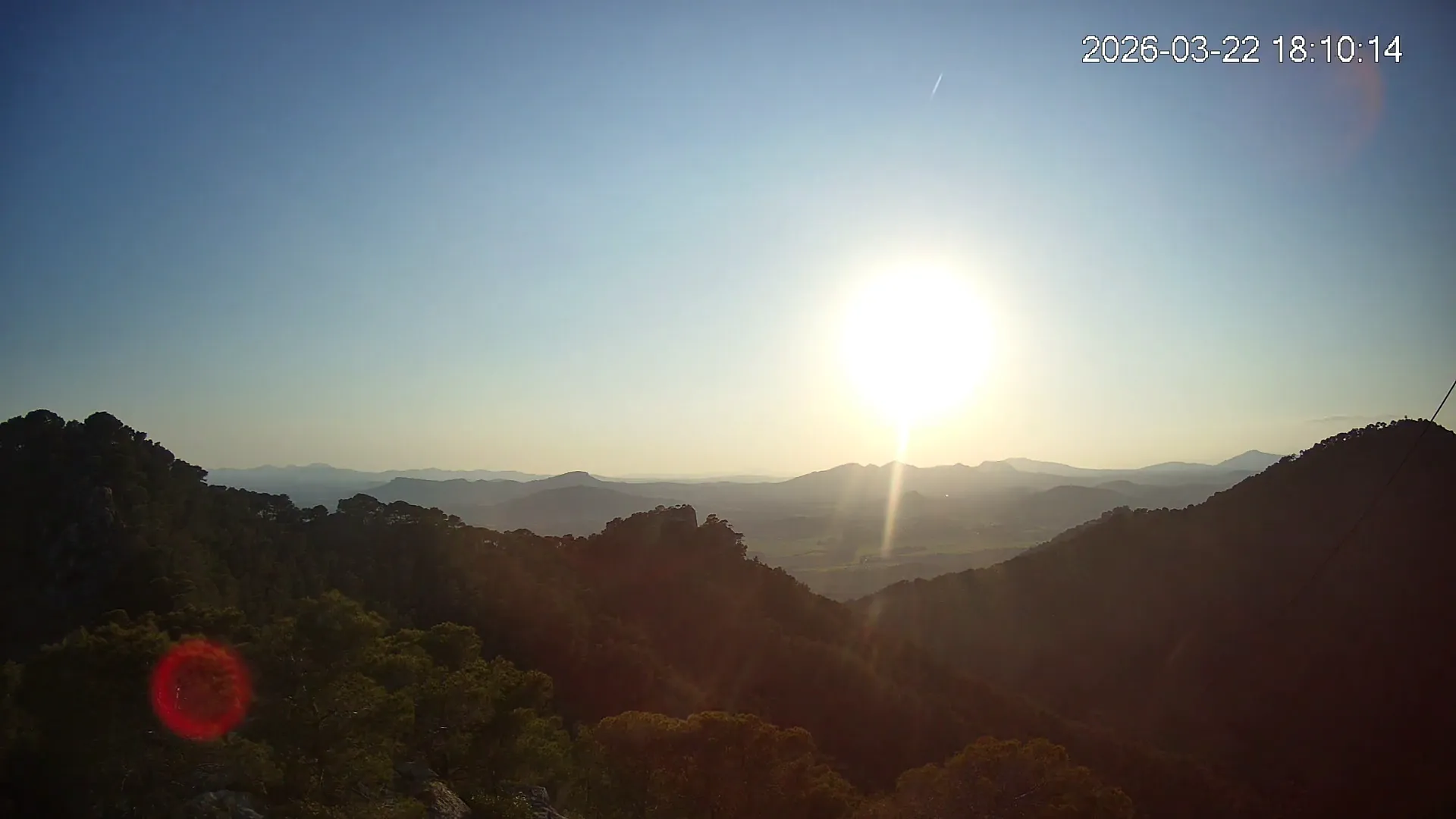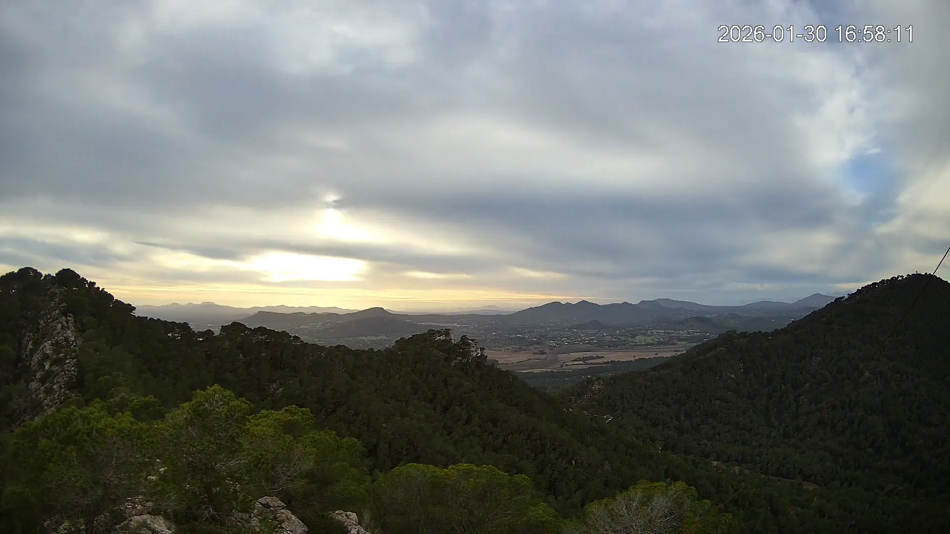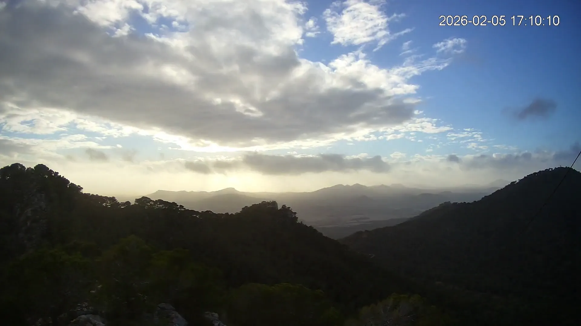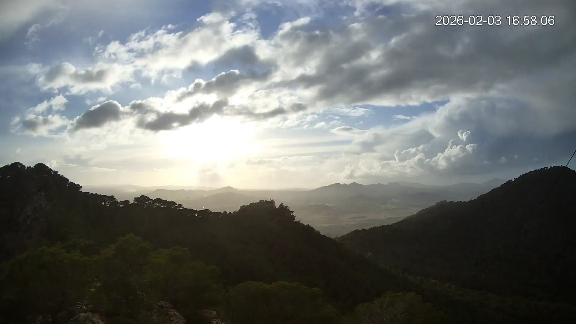 Desde el Puig Negre, en la zona de Canyamel, esta cámara ofrece una vista elevada hacia el interior de Mallorca, abarcando un amplio paisaje del Llevant mallorquín. Al fondo se distinguen los pueblos de Son Servera y Sant Llorenç des Cardassar, entre colinas suaves y campos cultivados. Una panorámica que muestra la transición entre la costa y el interior rural de la isla.
