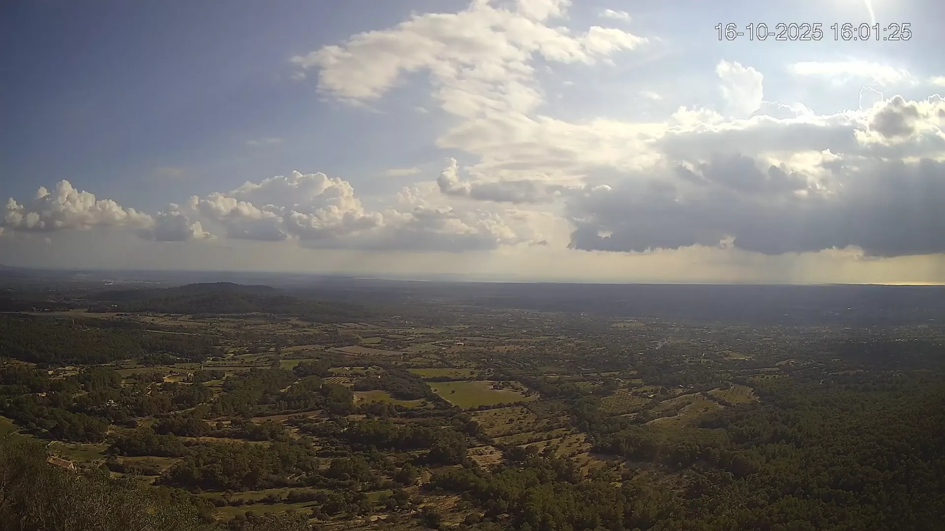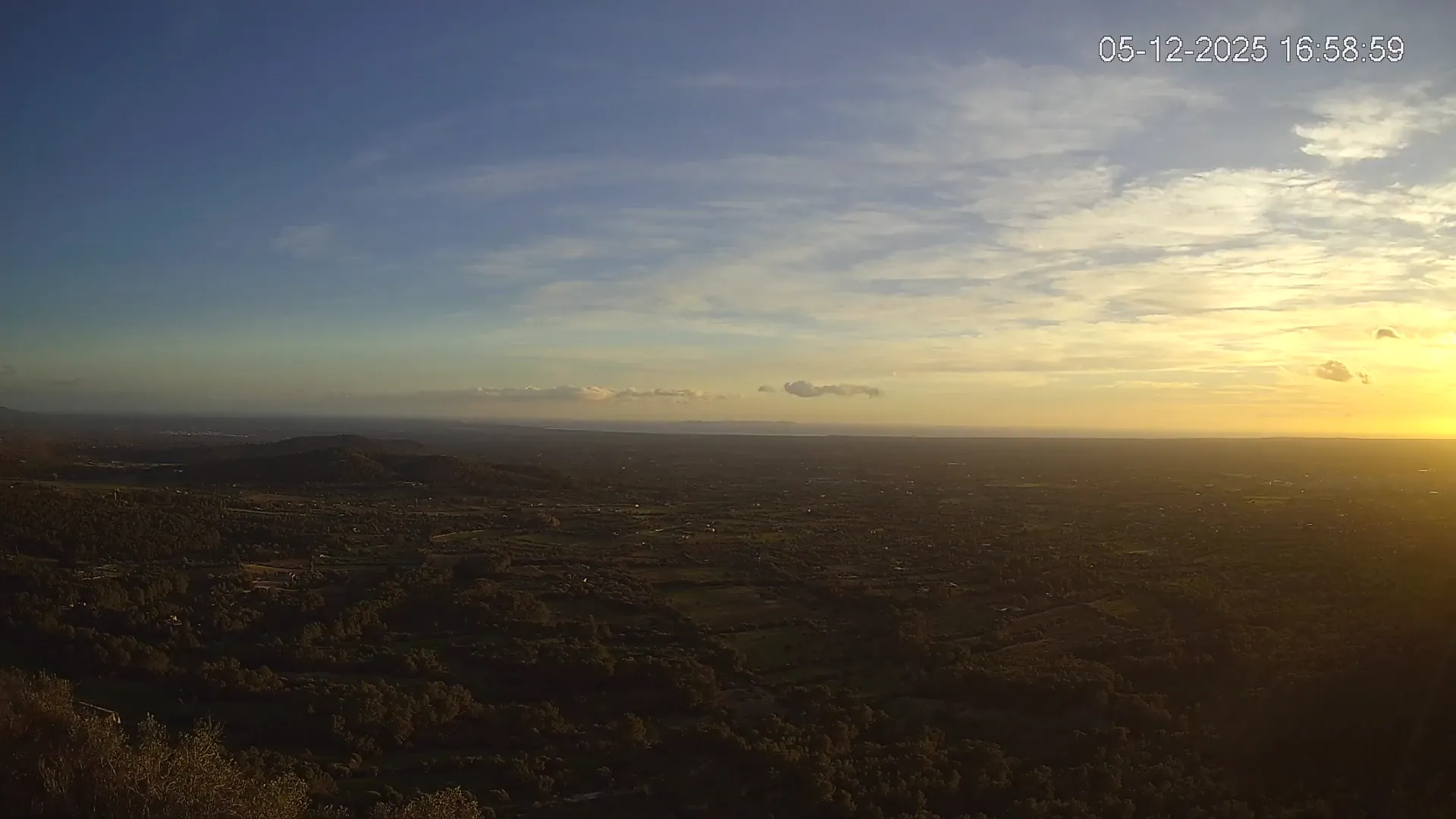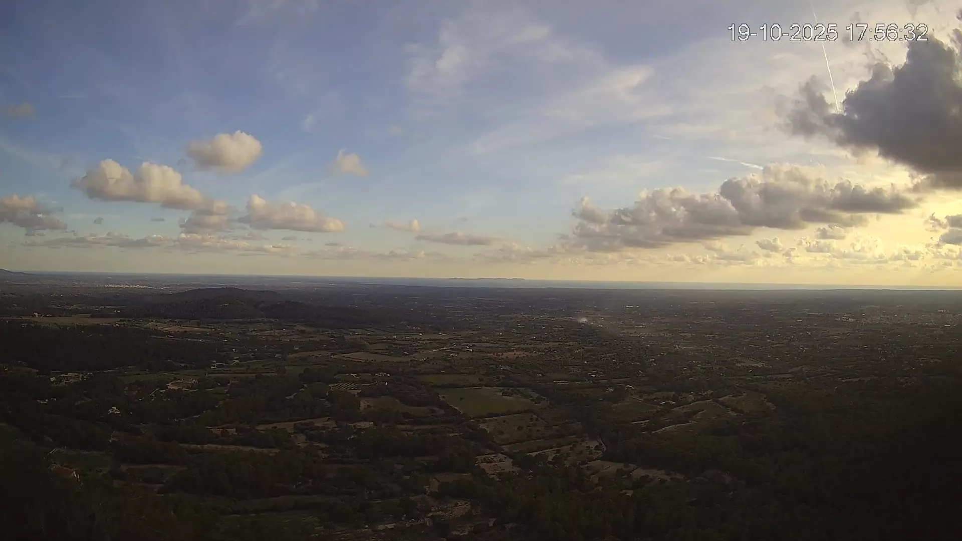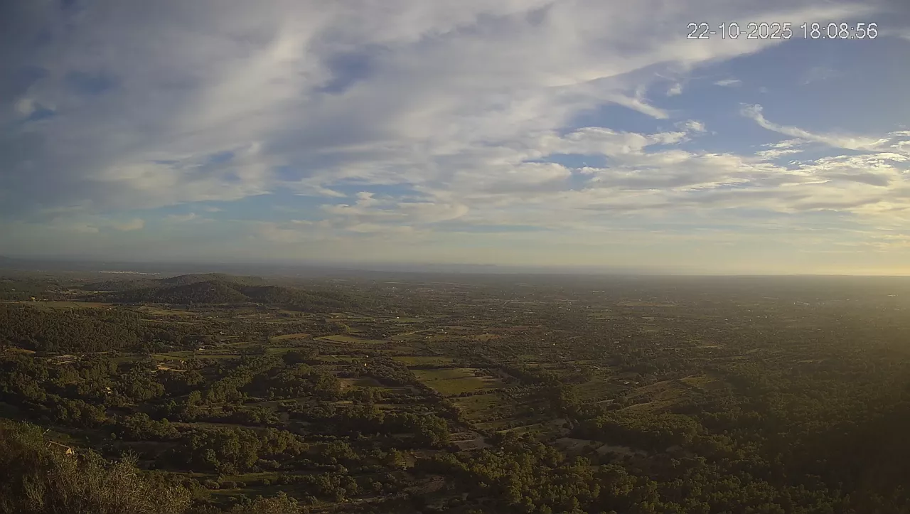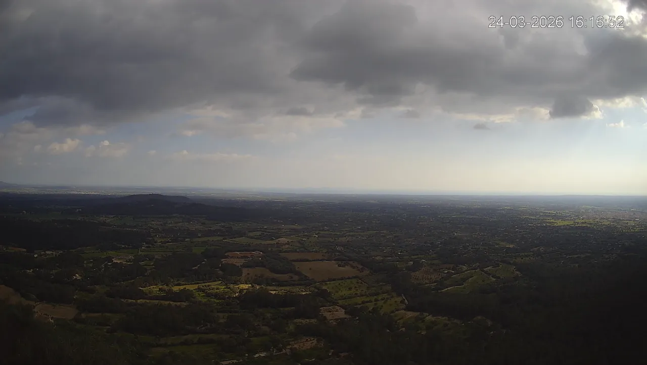 Ubicada en la histórica Ermita de Sant Honorat, esta cámara ofrece una vista en directo del entorno natural que rodea el Puig de Randa, en el corazón de Mallorca. Desde este punto elevado, la imagen combina colinas cubiertas de vegetación mediterránea, campos abiertos y amplias vistas hacia el sur de Mallorca, extendiéndose hacia el horizonte. Accede a los timelapses de los últimos 7 días y observa los amaneceres iluminando el valle, los cambios en el clima y los atardeceres transformando el horizonte. Ya sea para comprobar las condiciones meteorológicas o simplemente disfrutar de una vista privilegiada de uno de los rincones más tranquilos de Mallorca, esta cámara ofrece una conexión directa con el entorno natural.