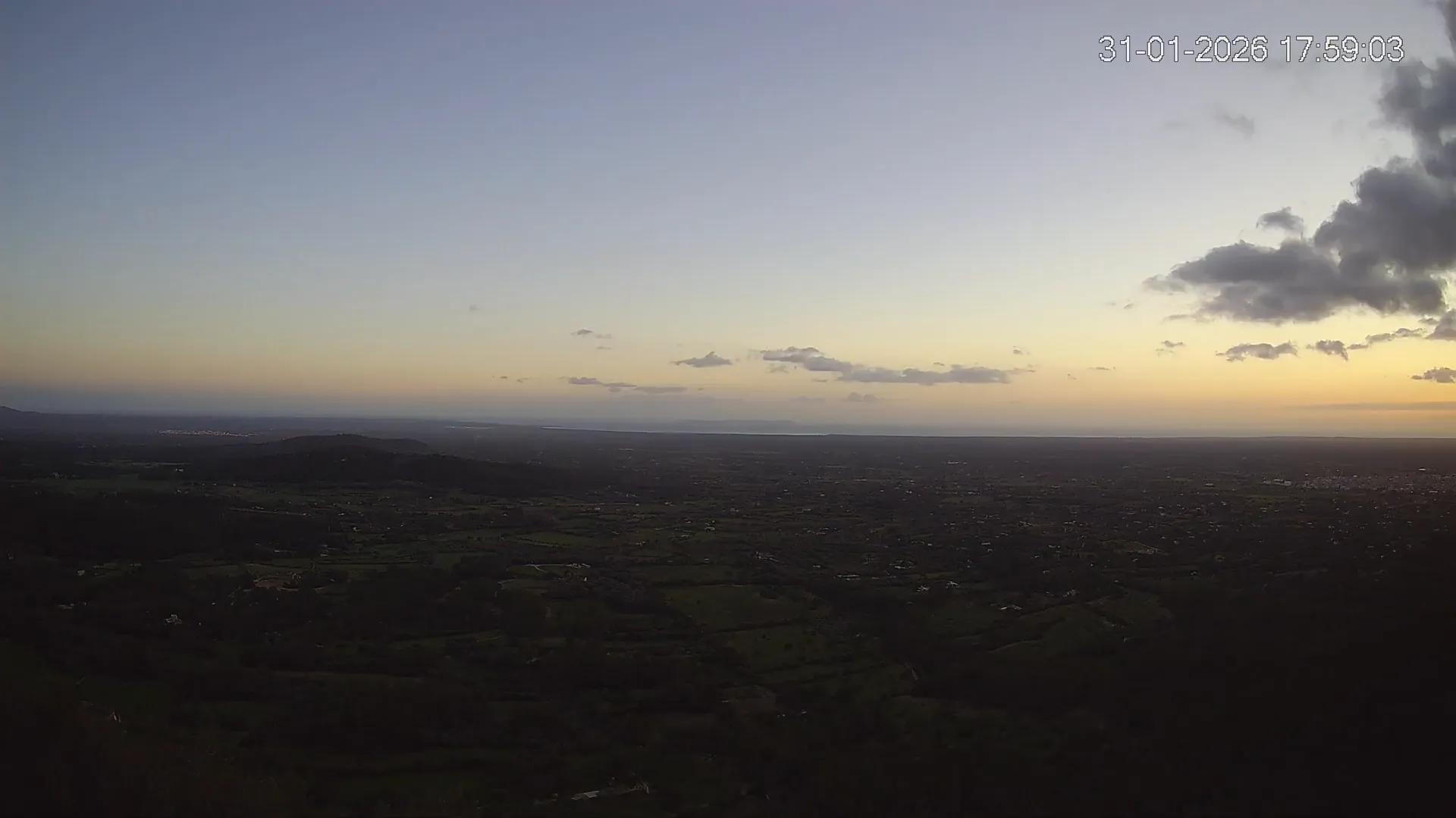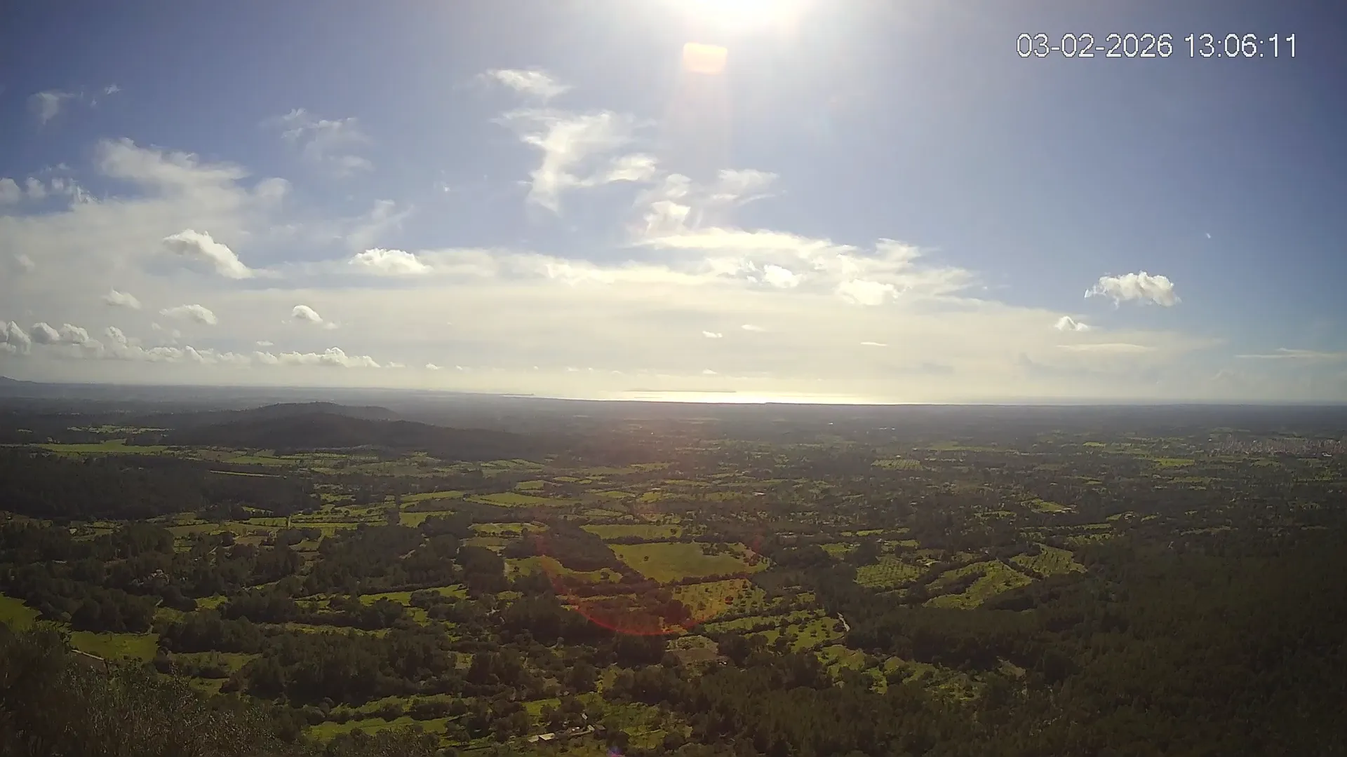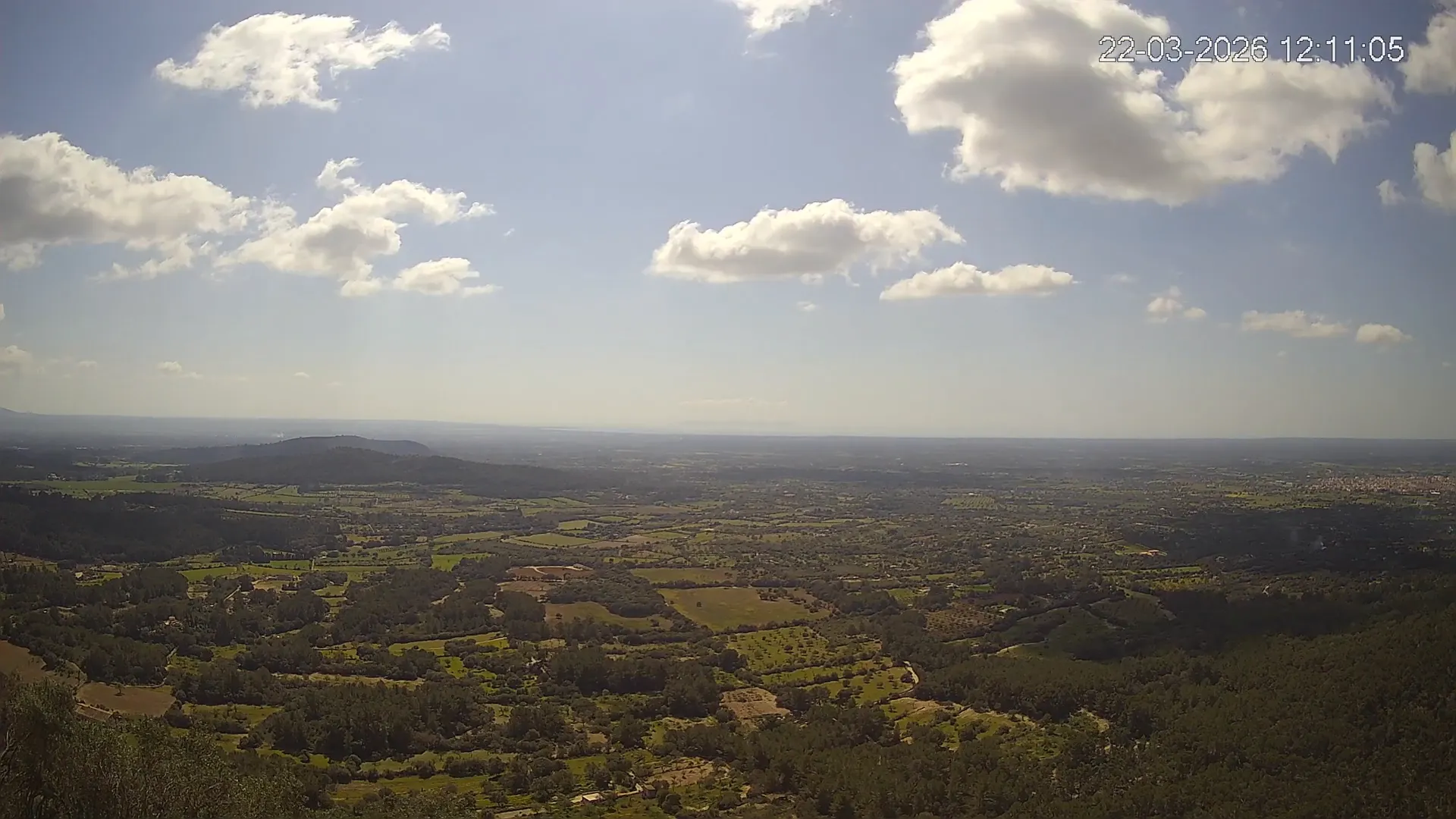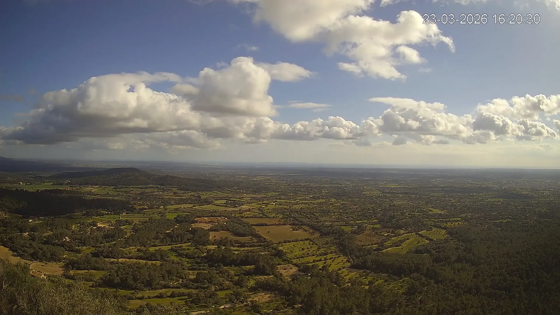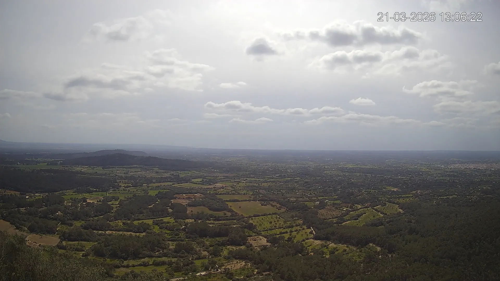 Ubicada en la histórica Ermita de Sant Honorat, esta cámara ofrece una vista en directo del entorno natural que rodea el Puig de Randa, en el corazón de Mallorca. Desde este punto elevado, la imagen combina colinas cubiertas de vegetación mediterránea, campos abiertos y amplias vistas hacia el sur de Mallorca, extendiéndose hacia el horizonte. Accede a los timelapses de los últimos 7 días y observa los amaneceres iluminando el valle, los cambios en el clima y los atardeceres transformando el horizonte. Ya sea para comprobar las condiciones meteorológicas o simplemente disfrutar de una vista privilegiada de uno de los rincones más tranquilos de Mallorca, esta cámara ofrece una conexión directa con el entorno natural.