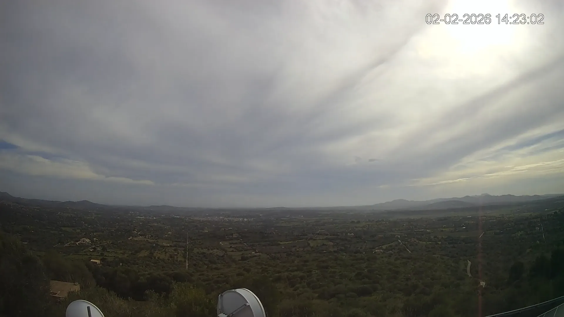 Esta cámara situada en el Puig del Telègraf ofrece una vista panorámica de Sant Llorenç des Cardassar y su entorno. Desde este punto elevado, se puede observar el núcleo urbano, los campos de cultivo y las colinas que rodean la zona, con una perspectiva clara del paisaje del Llevant de Mallorca. Accede a los timelapses de la última semana para ver cómo cambia el paisaje a lo largo del día. Si lo prefieres, consulta en tiempo real las condiciones meteorológicas, la visibilidad y la evolución del día en Sant Llorenç des Cardassar.