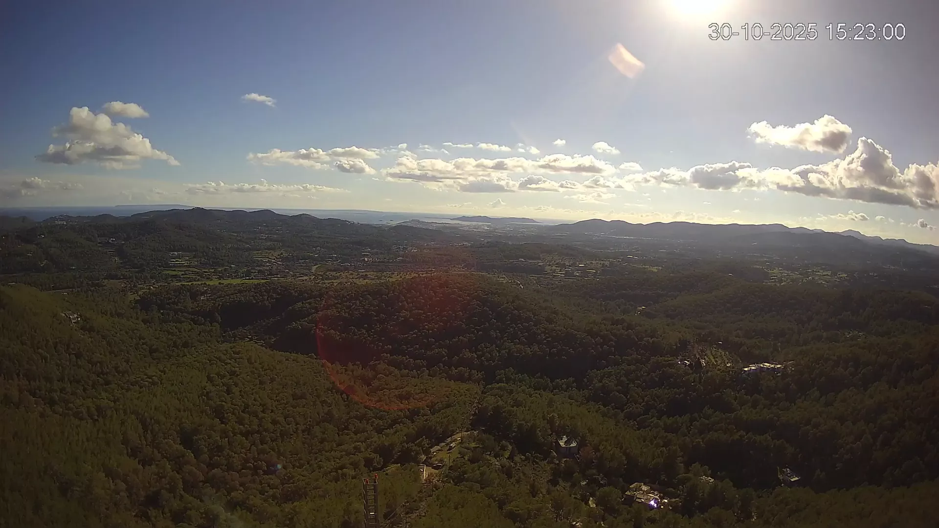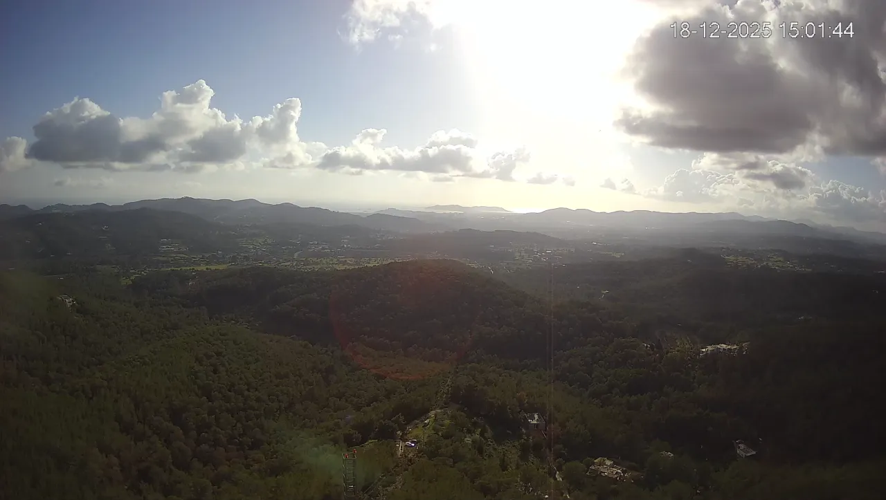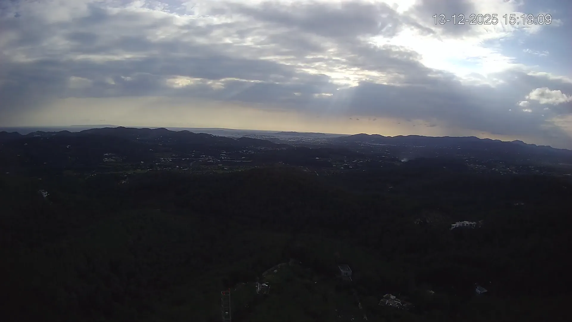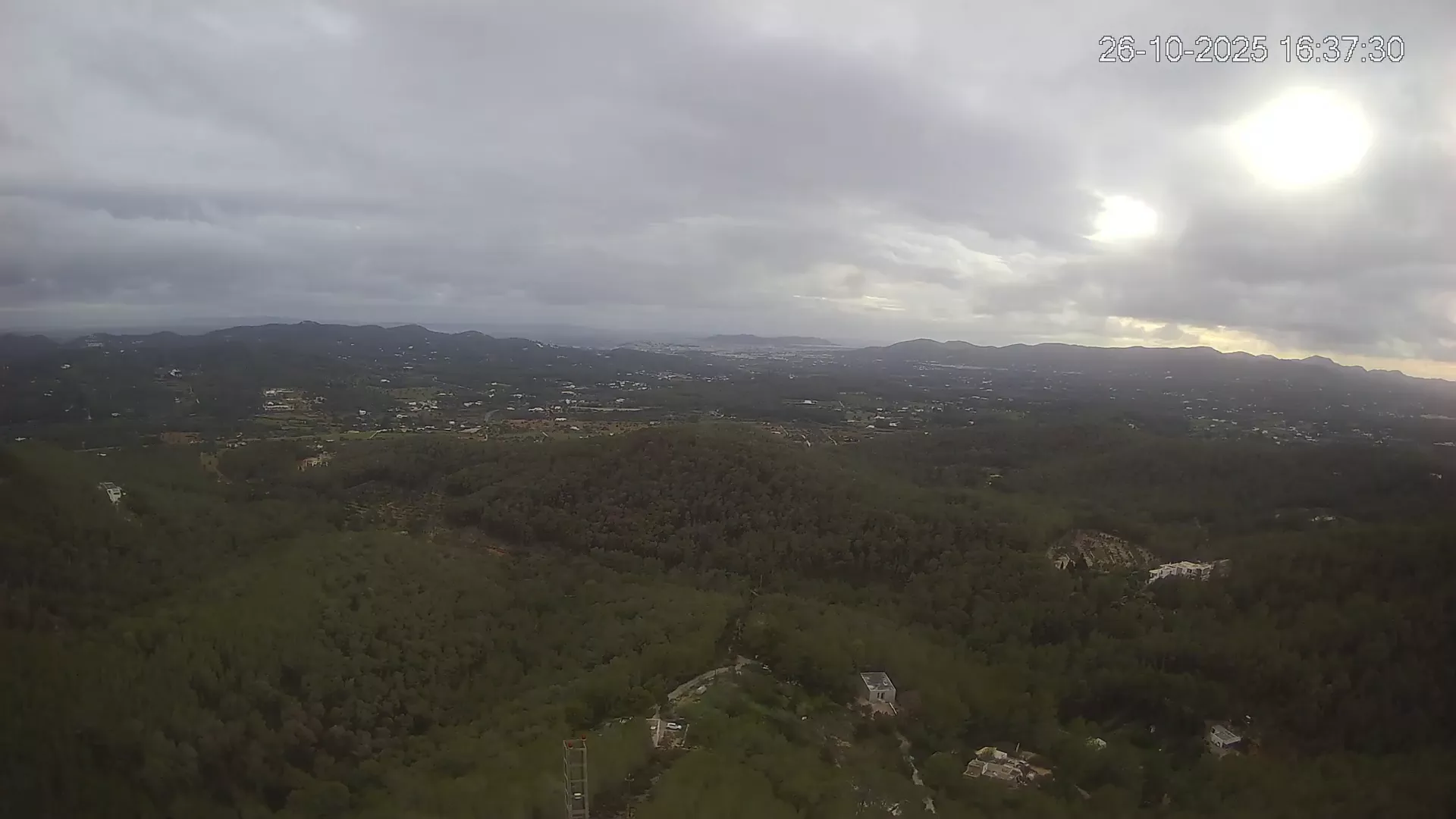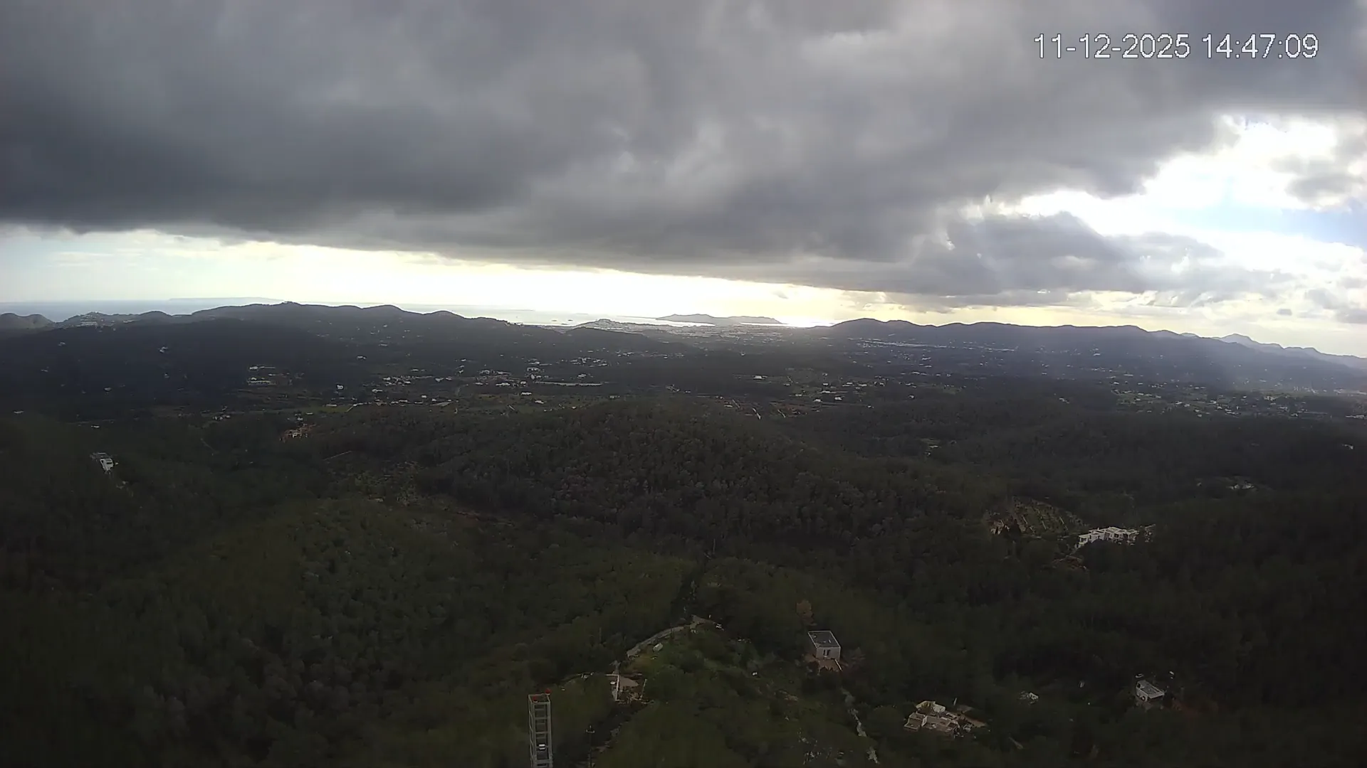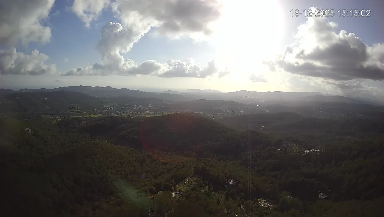 Desde esta cámara situada en Sant Llorenç, Ibiza, puedes observar en directo una panorámica del paisaje rural y montañoso del interior de la isla. La imagen abarca extensas áreas de vegetación mediterránea, campos y colinas, mostrando la belleza natural de esta zona menos urbanizada de Ibiza. Visiona te ofrece una emisión continua para que puedas consultar en cualquier momento las condiciones meteorológicas y la visibilidad en la zona. Es una herramienta útil para residentes, excursionistas y amantes de la naturaleza que desean conocer el estado del tiempo en el interior de Ibiza.