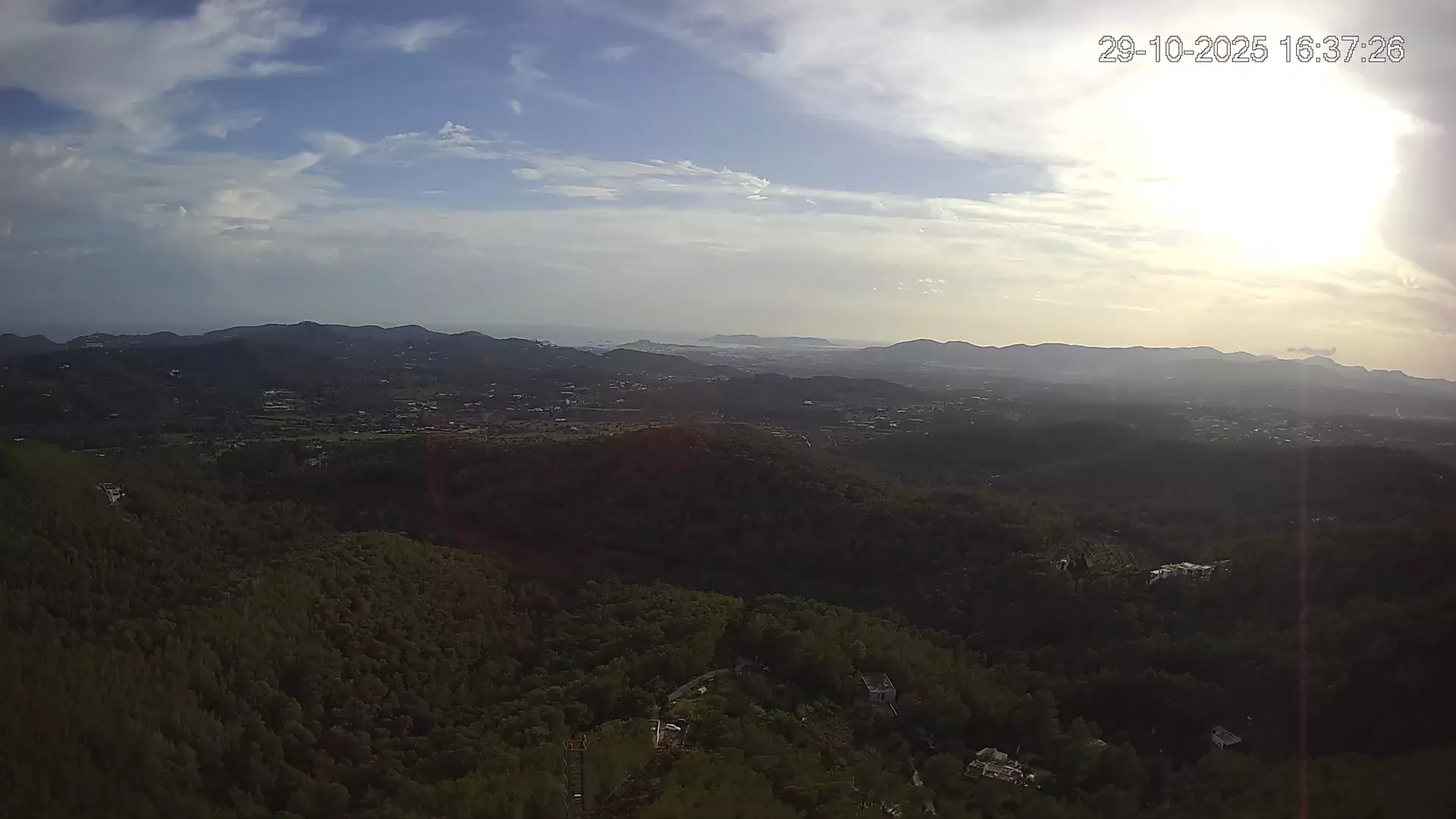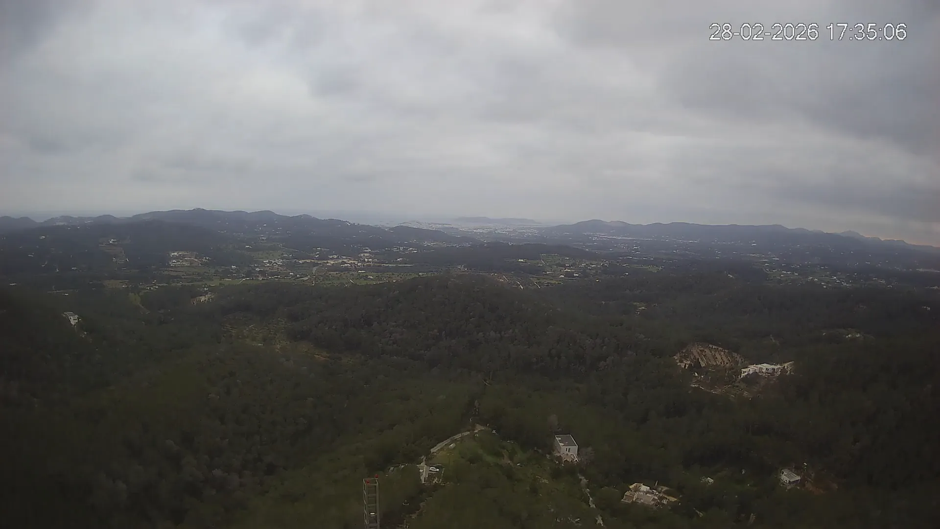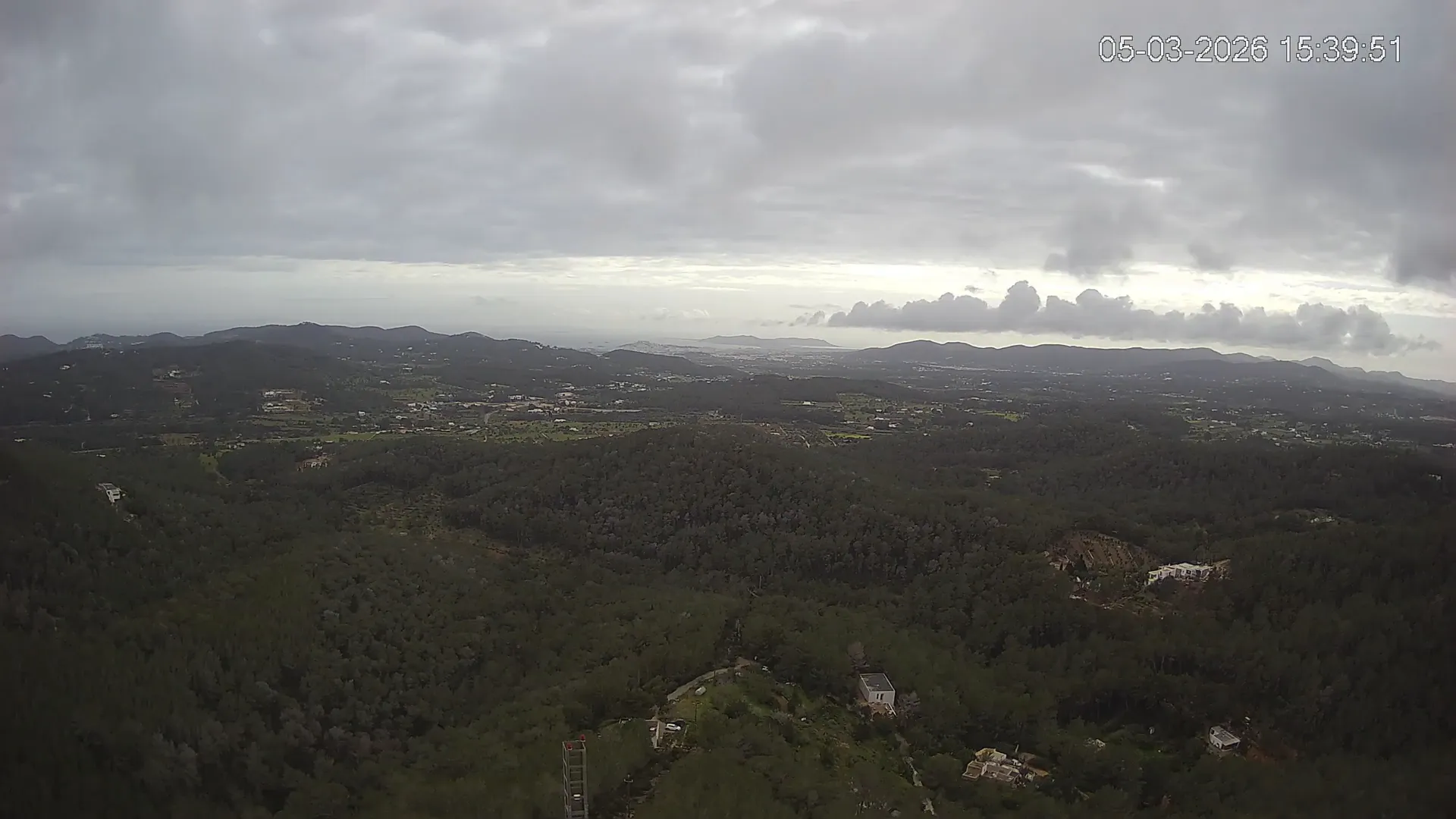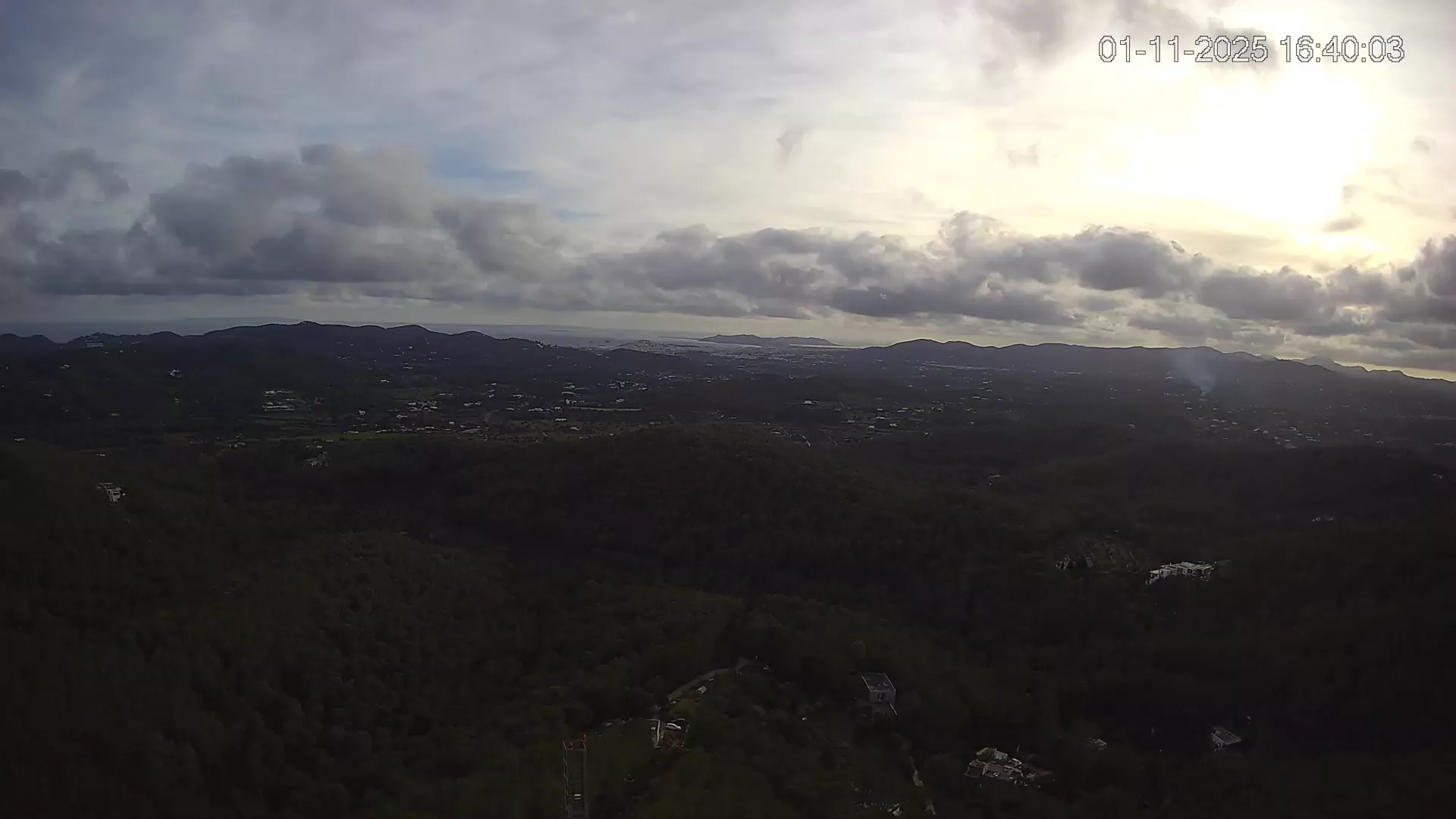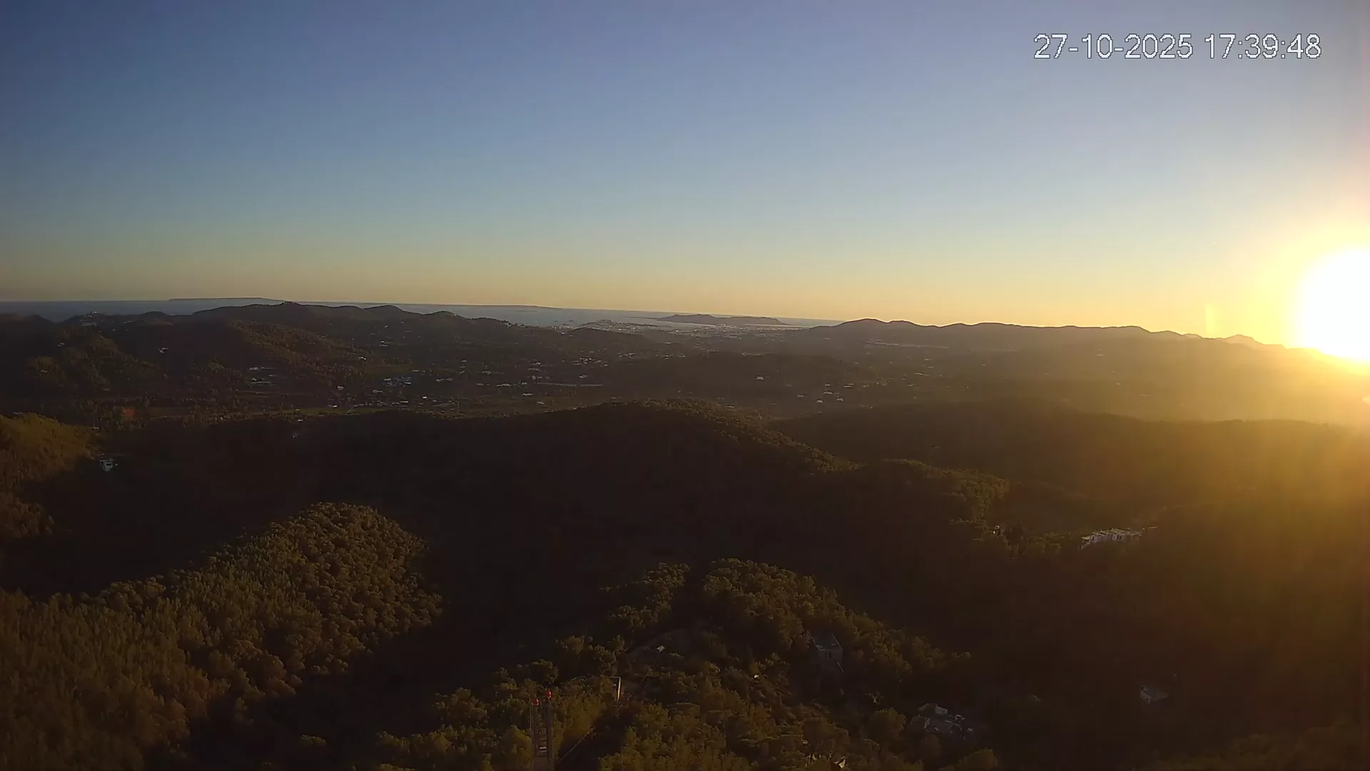 Desde esta cámara situada en Sant Llorenç, Ibiza, puedes observar en directo una panorámica del paisaje rural y montañoso del interior de la isla. La imagen abarca extensas áreas de vegetación mediterránea, campos y colinas, mostrando la belleza natural de esta zona menos urbanizada de Ibiza. Visiona te ofrece una emisión continua para que puedas consultar en cualquier momento las condiciones meteorológicas y la visibilidad en la zona. Es una herramienta útil para residentes, excursionistas y amantes de la naturaleza que desean conocer el estado del tiempo en el interior de Ibiza.