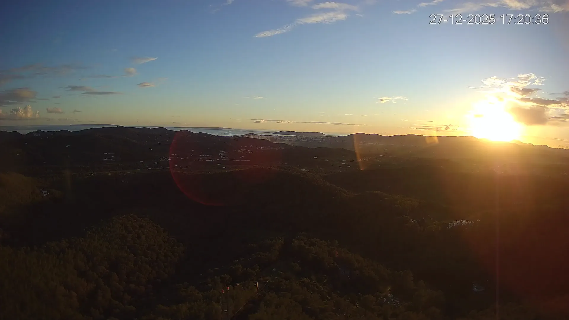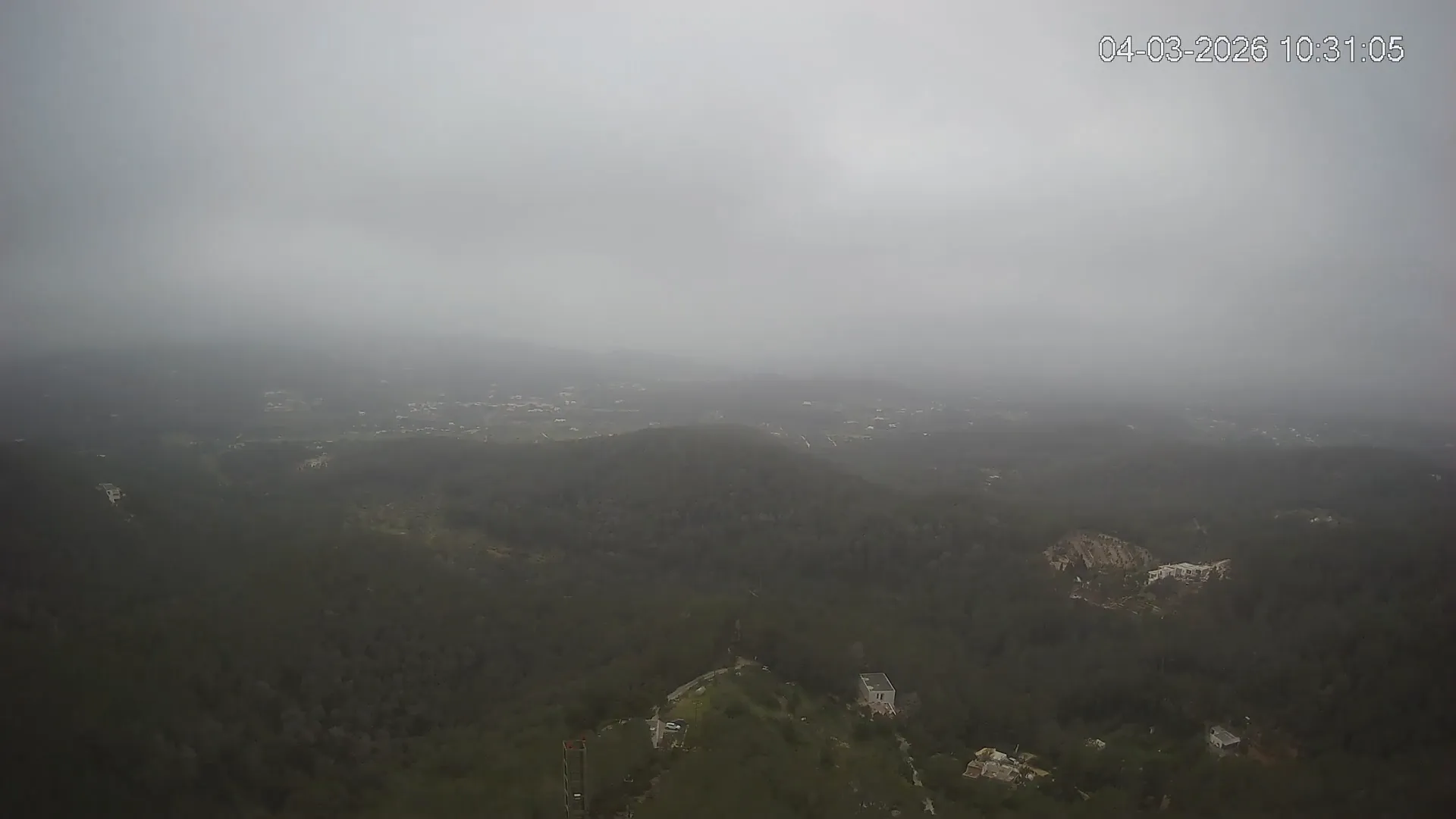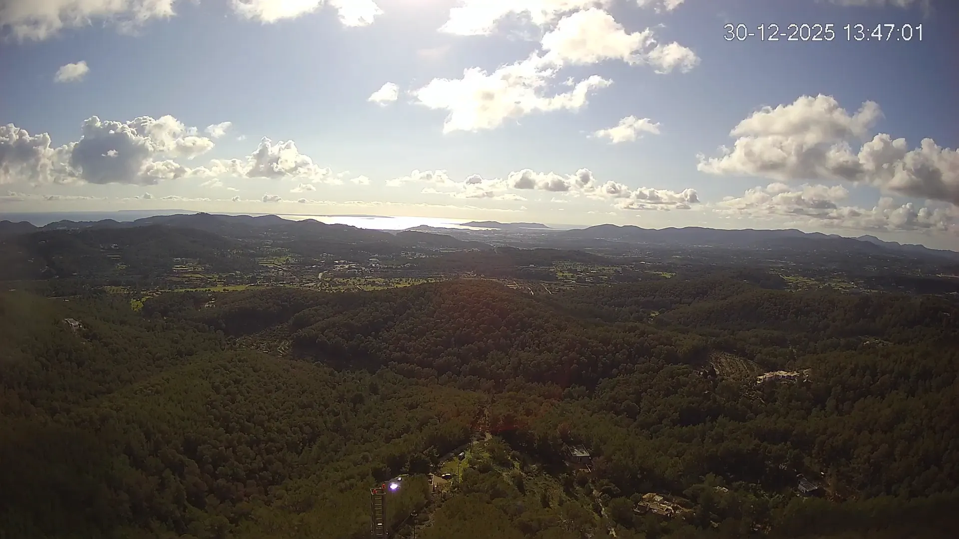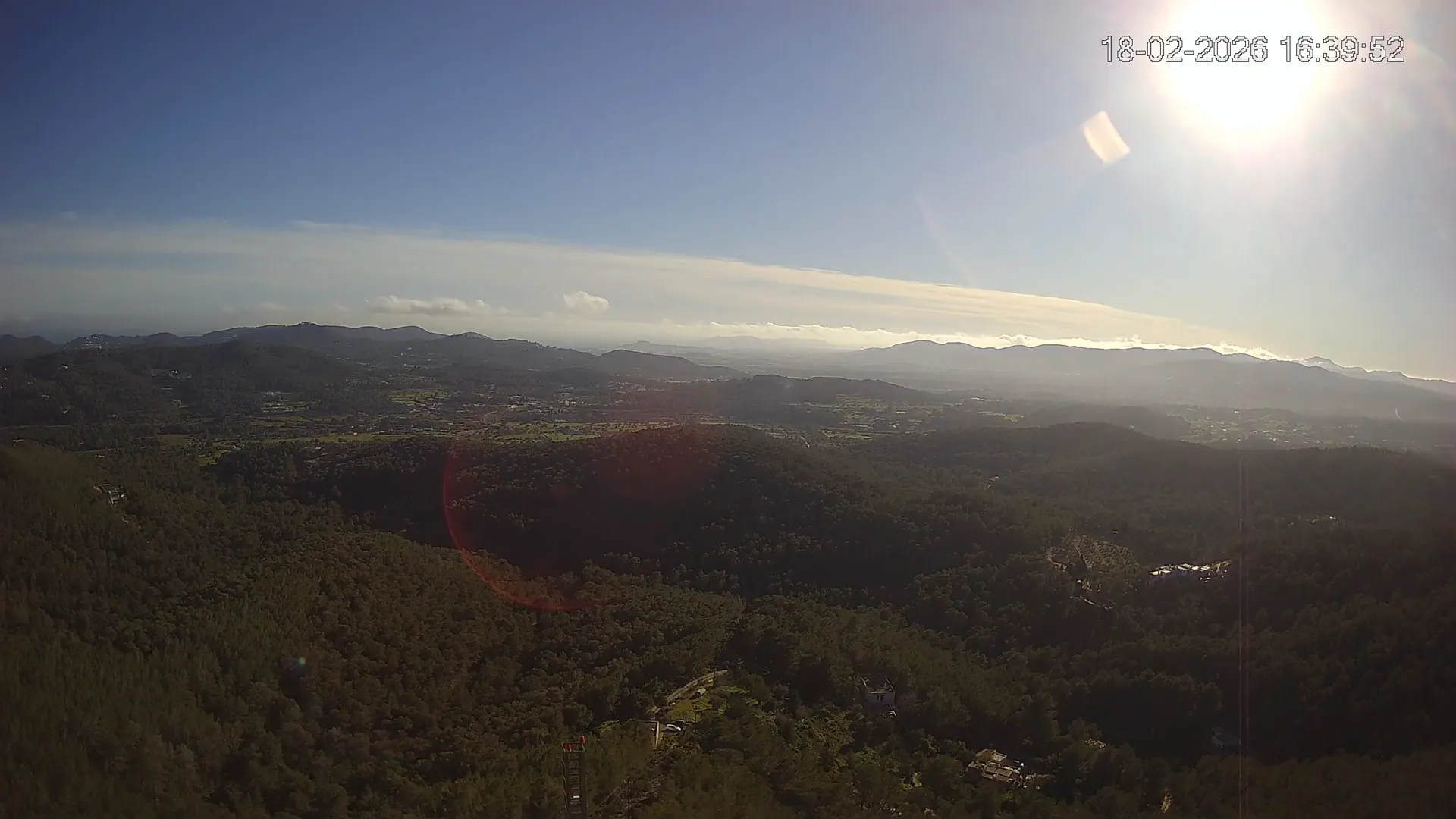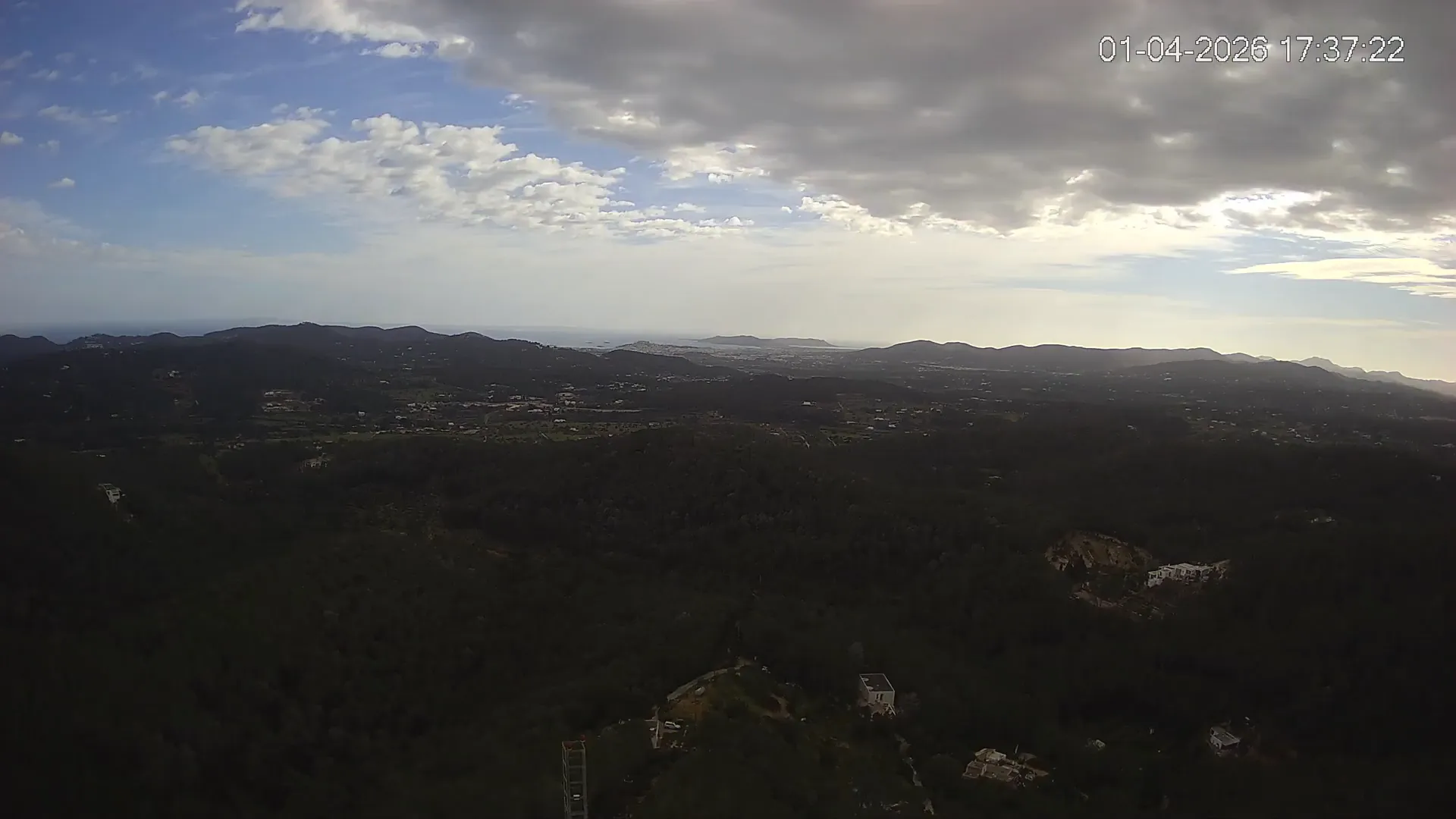 Desde esta cámara situada en Sant Llorenç, Ibiza, puedes observar en directo una panorámica del paisaje rural y montañoso del interior de la isla. La imagen abarca extensas áreas de vegetación mediterránea, campos y colinas, mostrando la belleza natural de esta zona menos urbanizada de Ibiza. Visiona te ofrece una emisión continua para que puedas consultar en cualquier momento las condiciones meteorológicas y la visibilidad en la zona. Es una herramienta útil para residentes, excursionistas y amantes de la naturaleza que desean conocer el estado del tiempo en el interior de Ibiza.