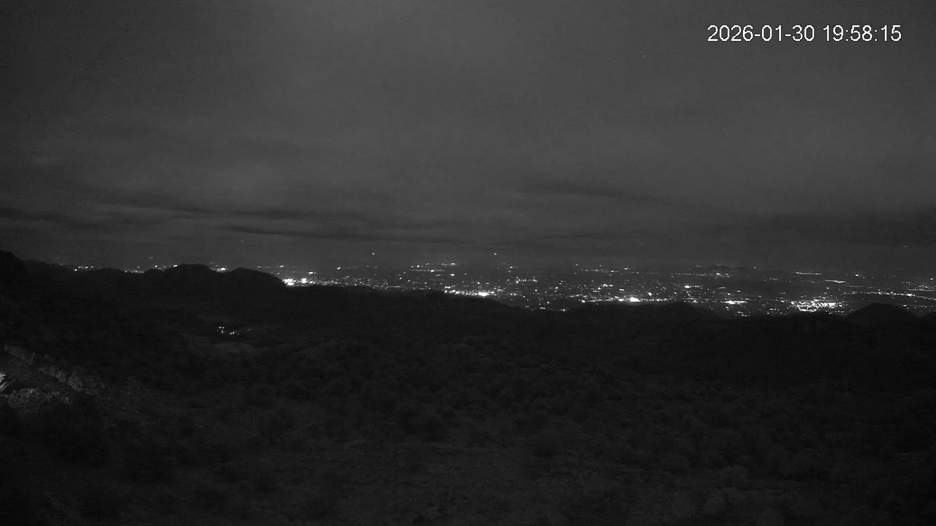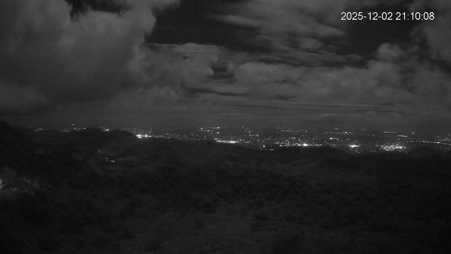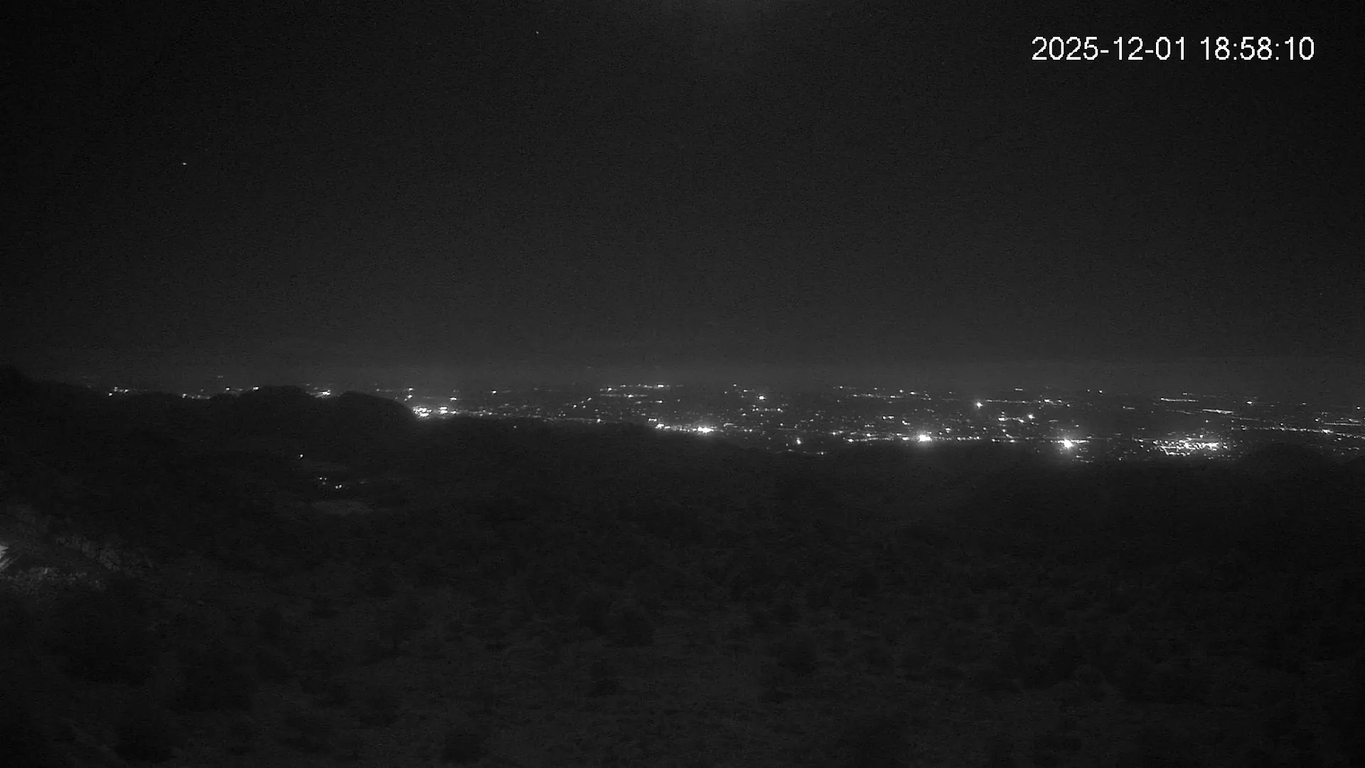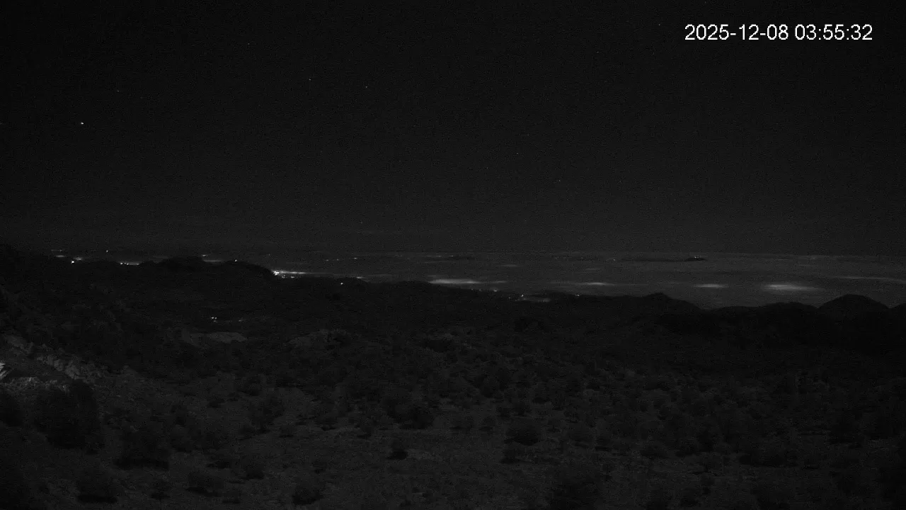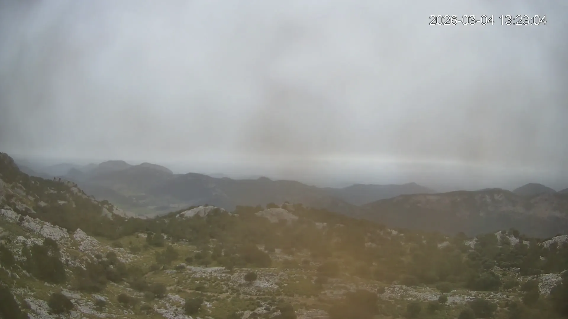 Desde una ubicación privilegiada en Alfabia, esta cámara apunta hacia el tranquilo valle que conduce al pueblo de Orient, rodeado de bosques y caminos serpenteantes. En una de las crestas se eleva el Castell d’Alaró, asomando entre peñascos como un vigía del pasado. El encuadre transmite una sensación de aislamiento y calma, en un entorno donde la montaña guarda siglos de historia y el paisaje invita a la contemplación.