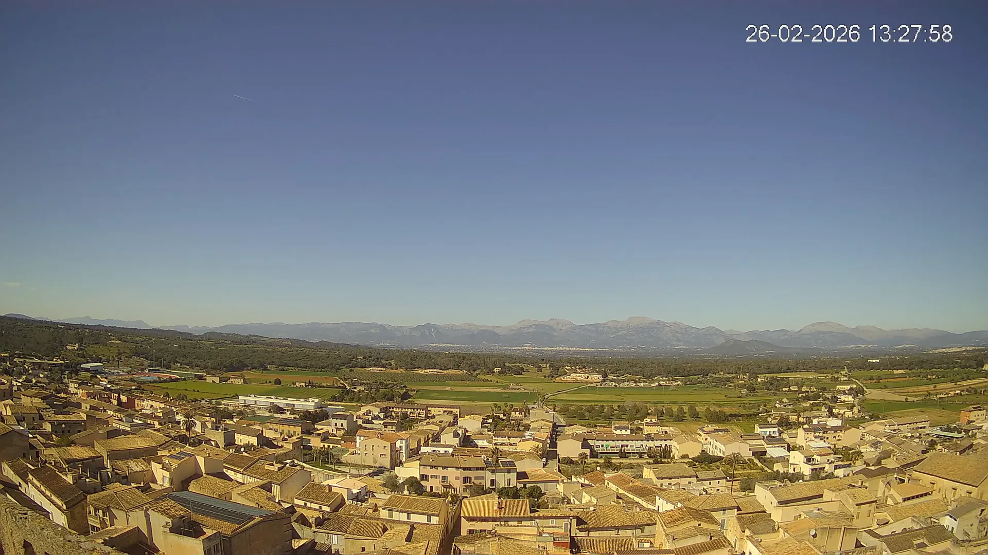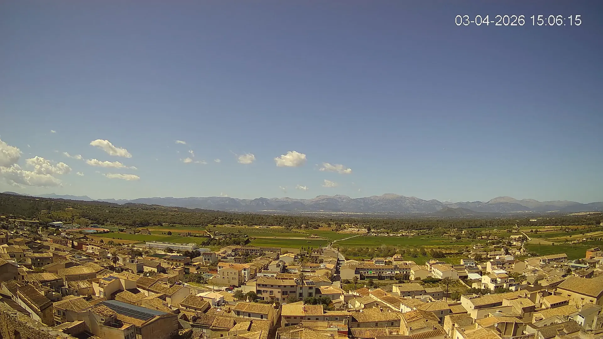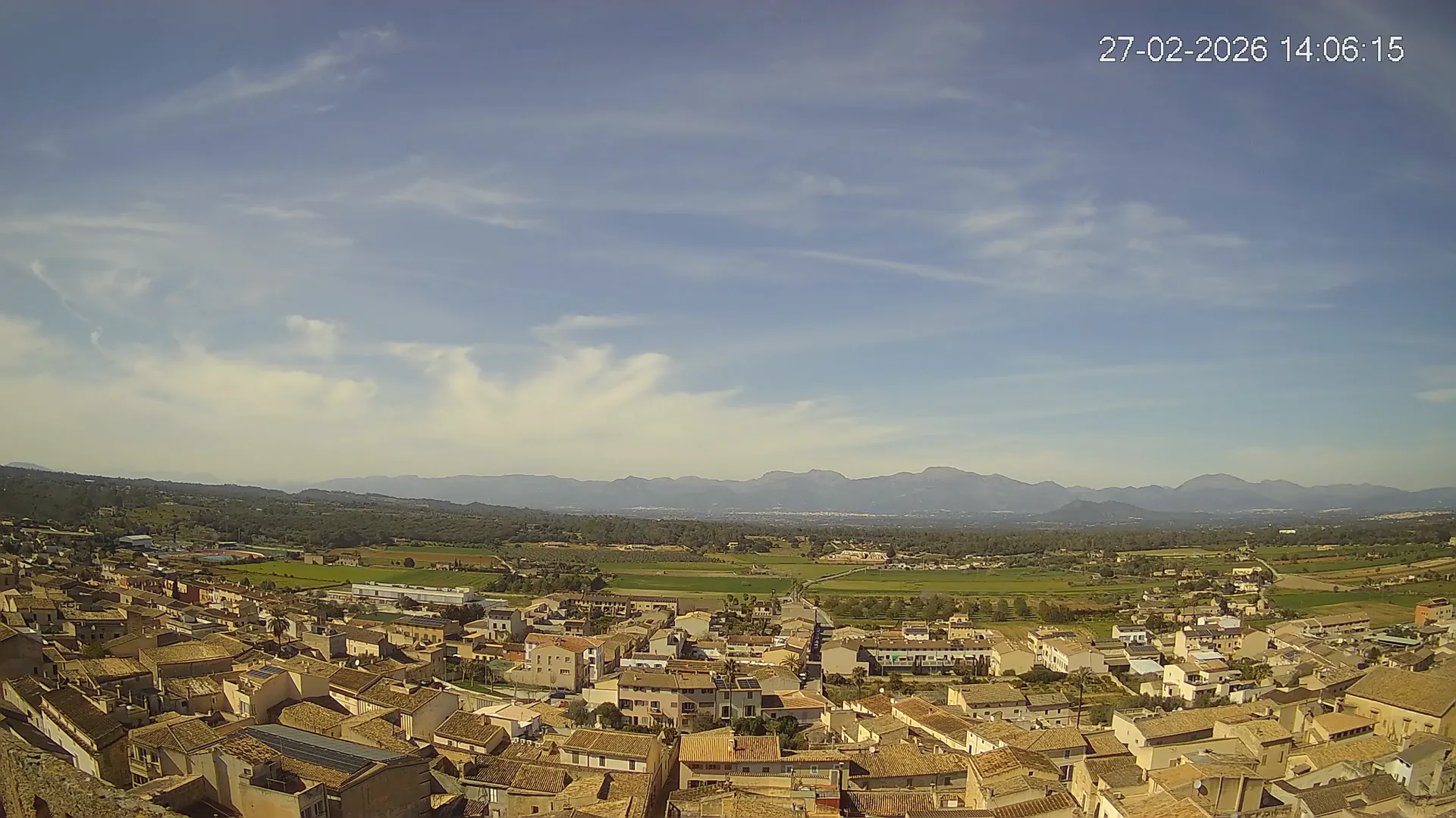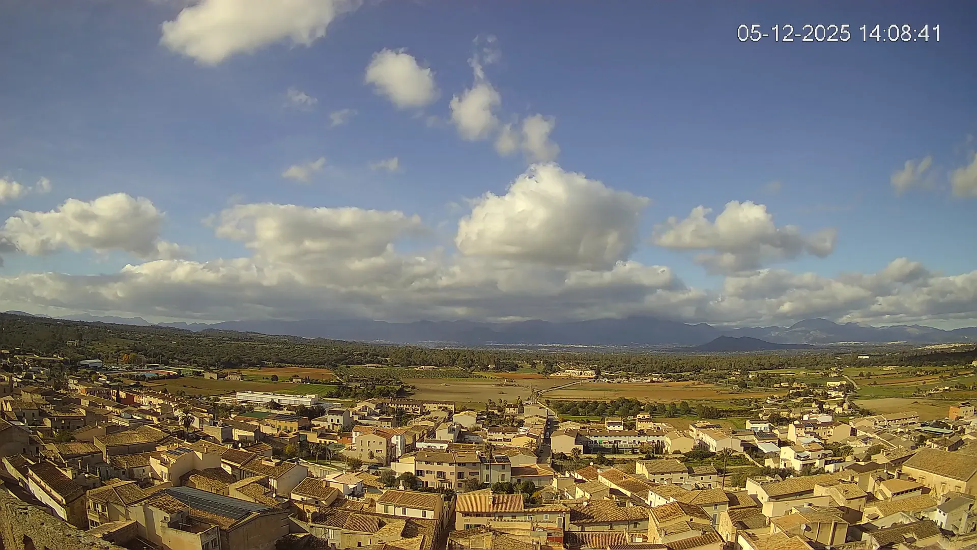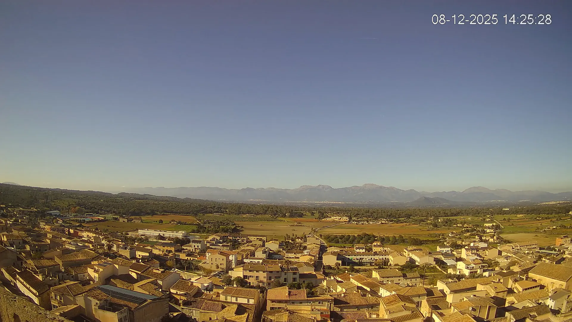 Esta cámara situada en la Iglesia de Sineu ofrece una imagen en directo del municipio y su entorno rural en el Pla de Mallorca. Desde aquí, se pueden observar los campos de cultivo, la evolución del tiempo y la visibilidad en la zona, con la Serra de Tramuntana en el horizonte en días despejados. La transmisión permite conocer en tiempo real el estado del cielo, la nubosidad y la luminosidad a lo largo del día. Además, los timelapses de los últimos 7 días facilitan el seguimiento de los cambios meteorológicos y la variación de la luz desde el amanecer hasta el anochecer. Si necesitas consultar el estado del tiempo en Sineu, planificar actividades o simplemente obtener una referencia visual de la zona, accede al streaming en vivo o revisa los timelapses recientes.