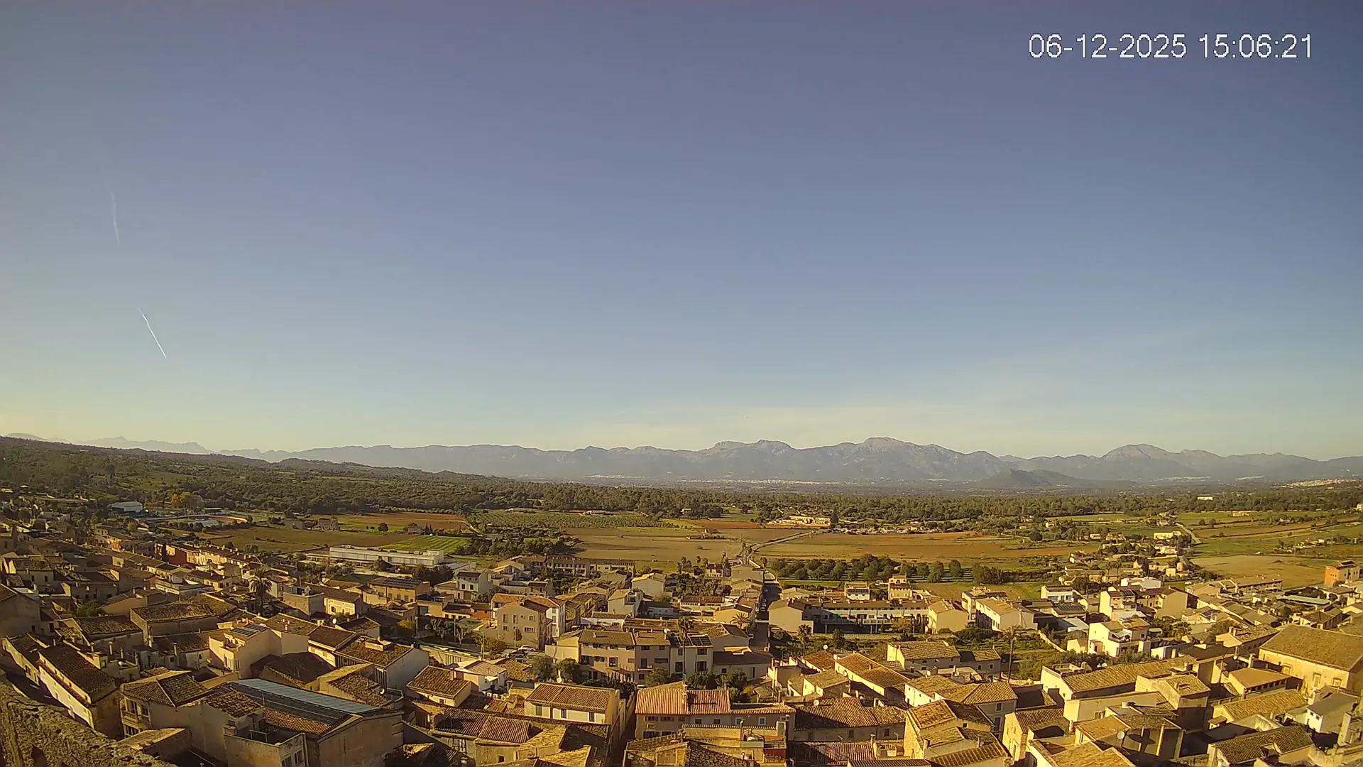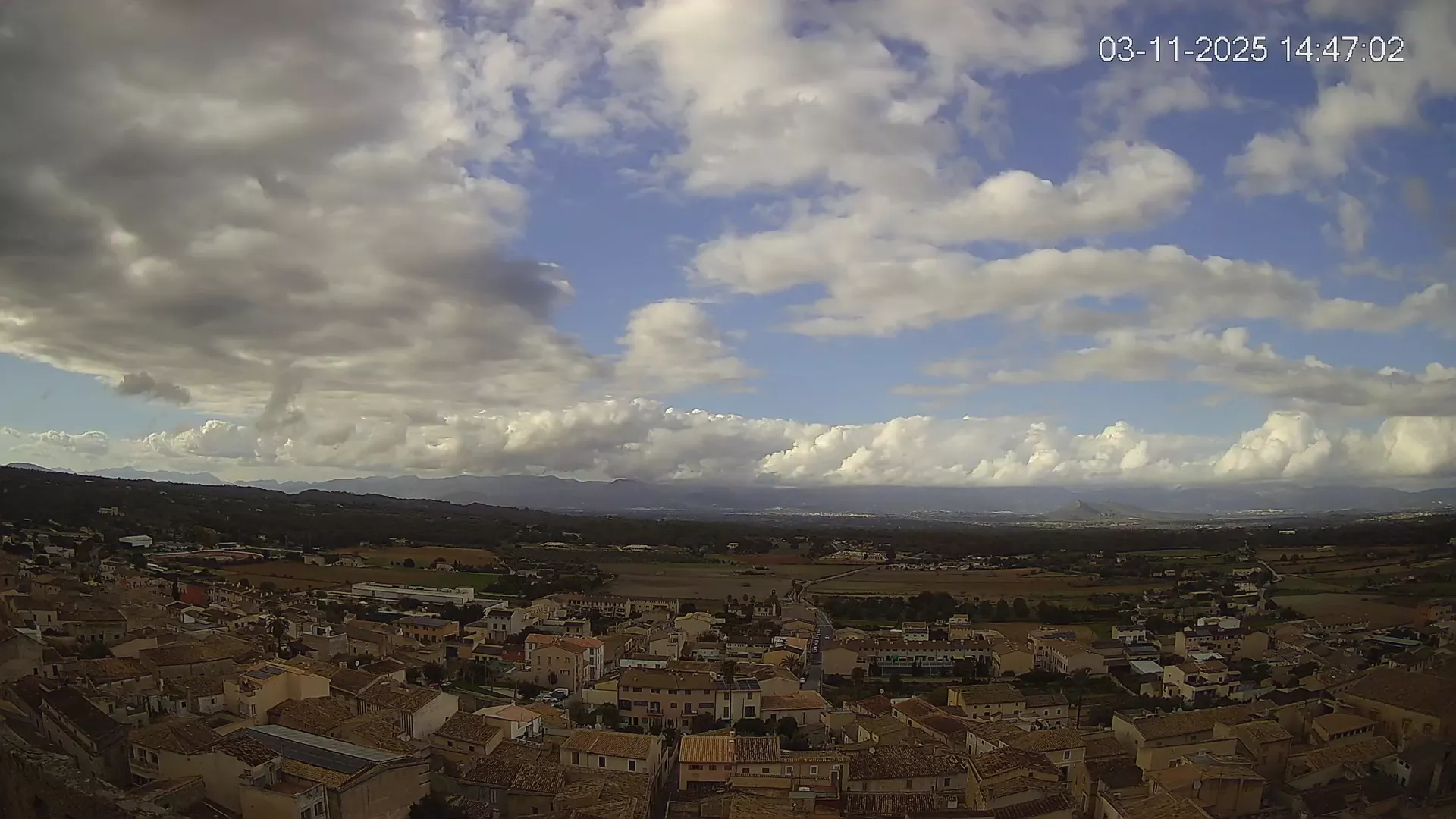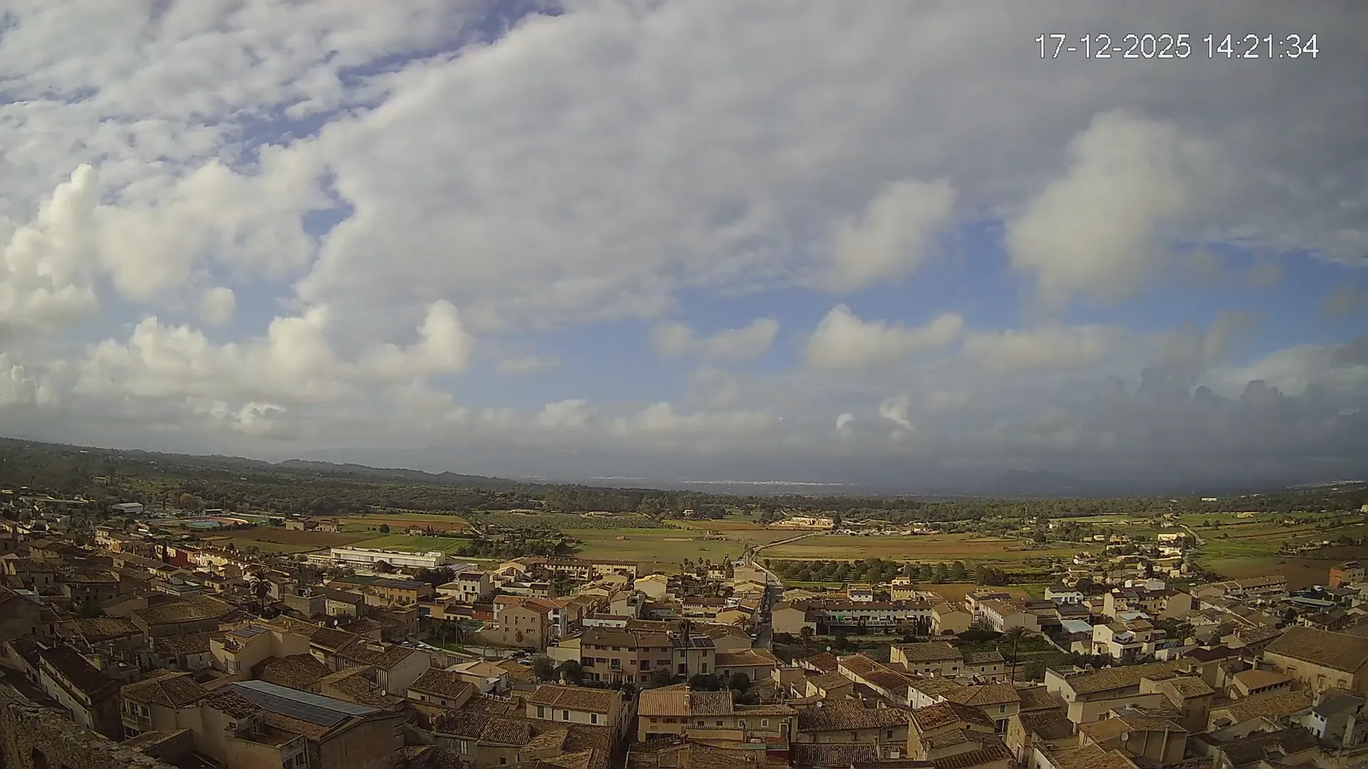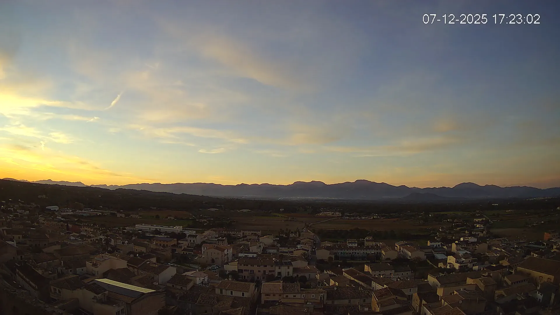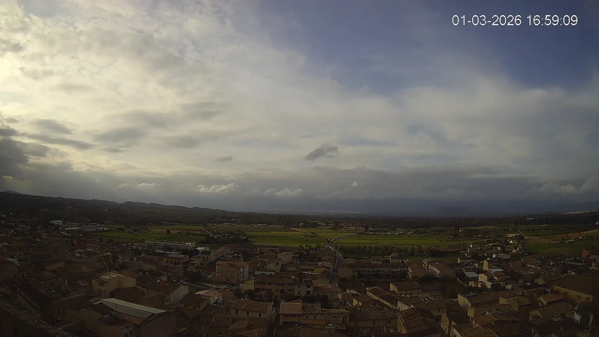 Esta cámara situada en la Iglesia de Sineu ofrece una imagen en directo del municipio y su entorno rural en el Pla de Mallorca. Desde aquí, se pueden observar los campos de cultivo, la evolución del tiempo y la visibilidad en la zona, con la Serra de Tramuntana en el horizonte en días despejados. La transmisión permite conocer en tiempo real el estado del cielo, la nubosidad y la luminosidad a lo largo del día. Además, los timelapses de los últimos 7 días facilitan el seguimiento de los cambios meteorológicos y la variación de la luz desde el amanecer hasta el anochecer. Si necesitas consultar el estado del tiempo en Sineu, planificar actividades o simplemente obtener una referencia visual de la zona, accede al streaming en vivo o revisa los timelapses recientes.
