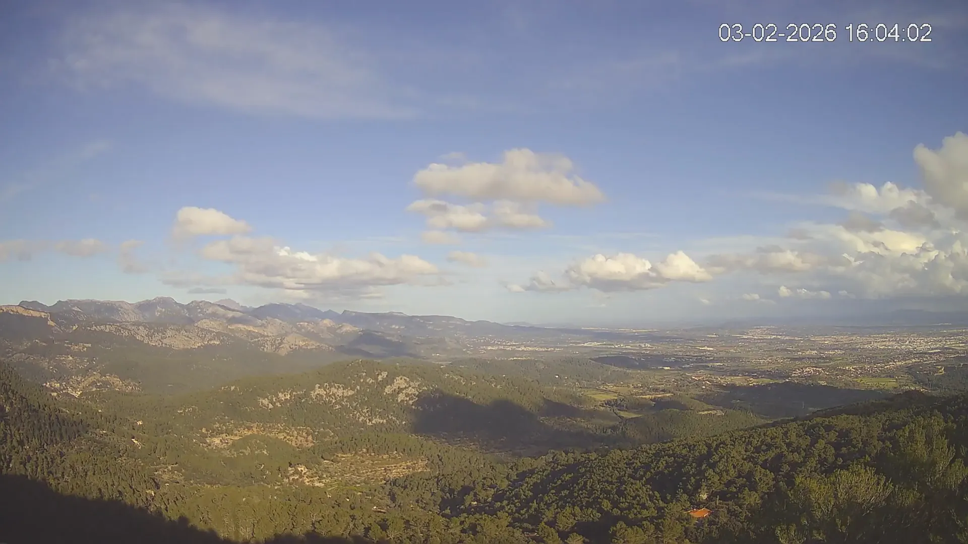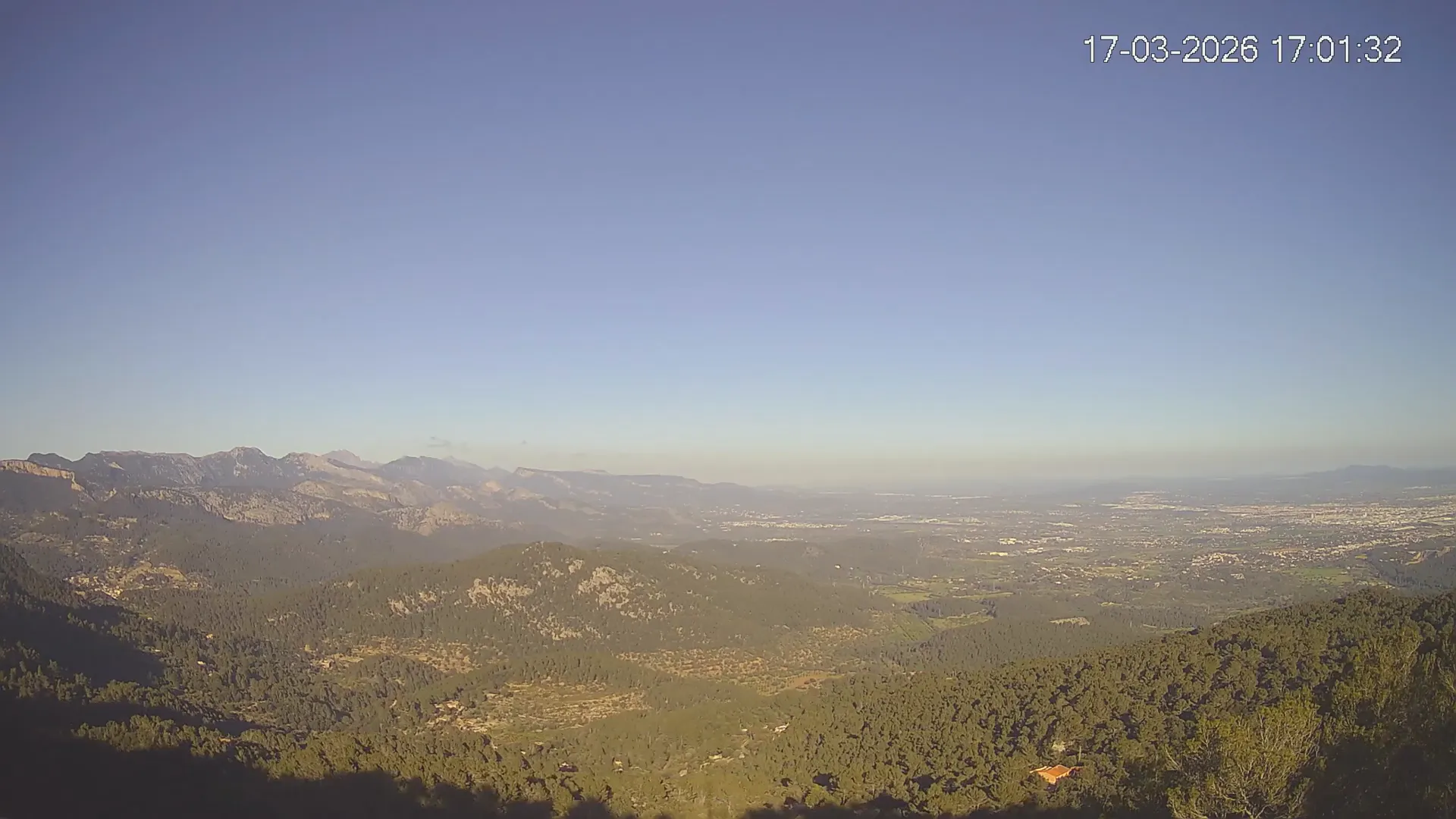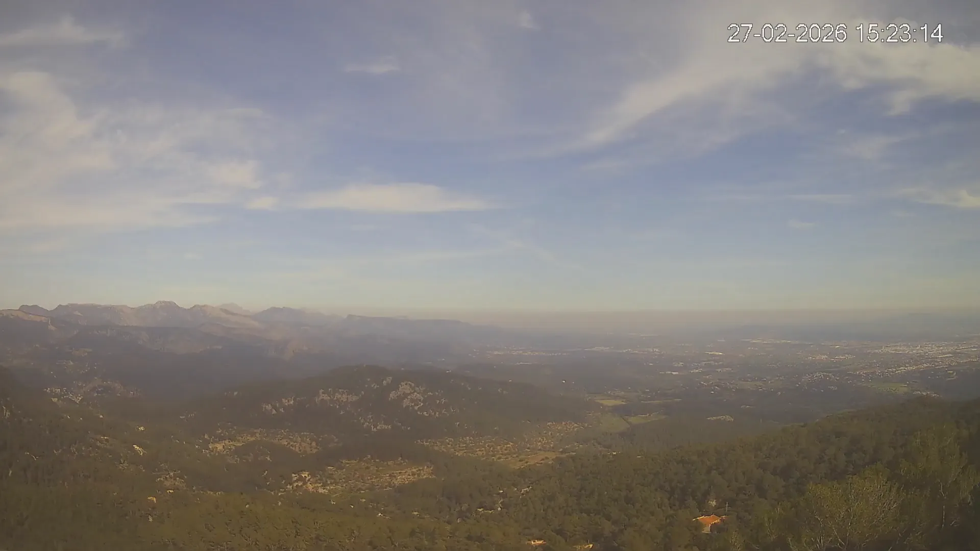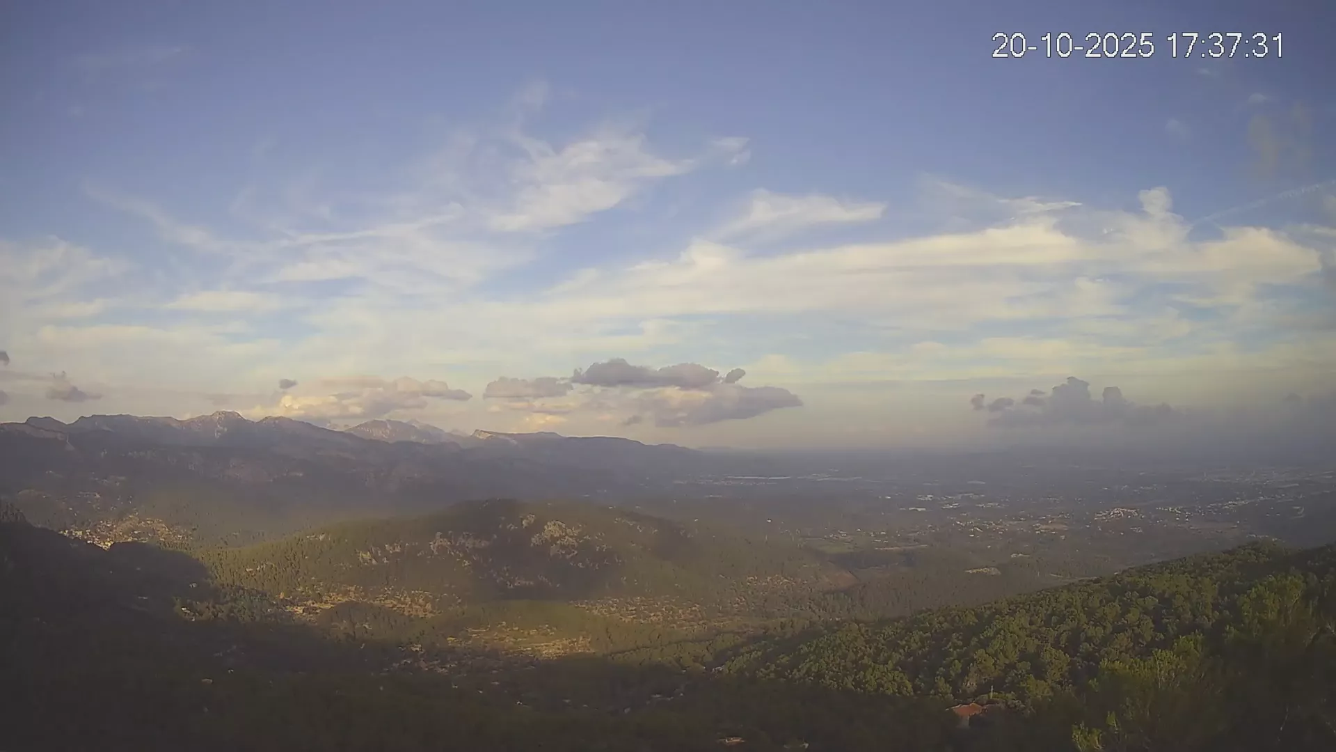 ¿Buscas una panorámica amplia del paisaje mallorquín? Esta cámara situada en el Mirador de Sobremunt ofrece una vista en tiempo real desde las alturas, capturando una mezcla de naturaleza y paisaje urbano. Desde aquí, puedes observar las colinas cubiertas de vegetación mediterránea en primer plano, mientras que al fondo se asoma la ciudad de Palma y, en días despejados, el mar en el horizonte. ¿Te interesa ver cómo ha cambiado el paisaje esta semana? Accede a los timelapses de los últimos 7 días y observa la evolución del clima, la luz recorriendo el paisaje y los colores del atardecer sobre la ciudad y el mar. Utilidad perfecta para senderistas, fotógrafos o quienes disfrutan de vistas panorámicas de Mallorca.