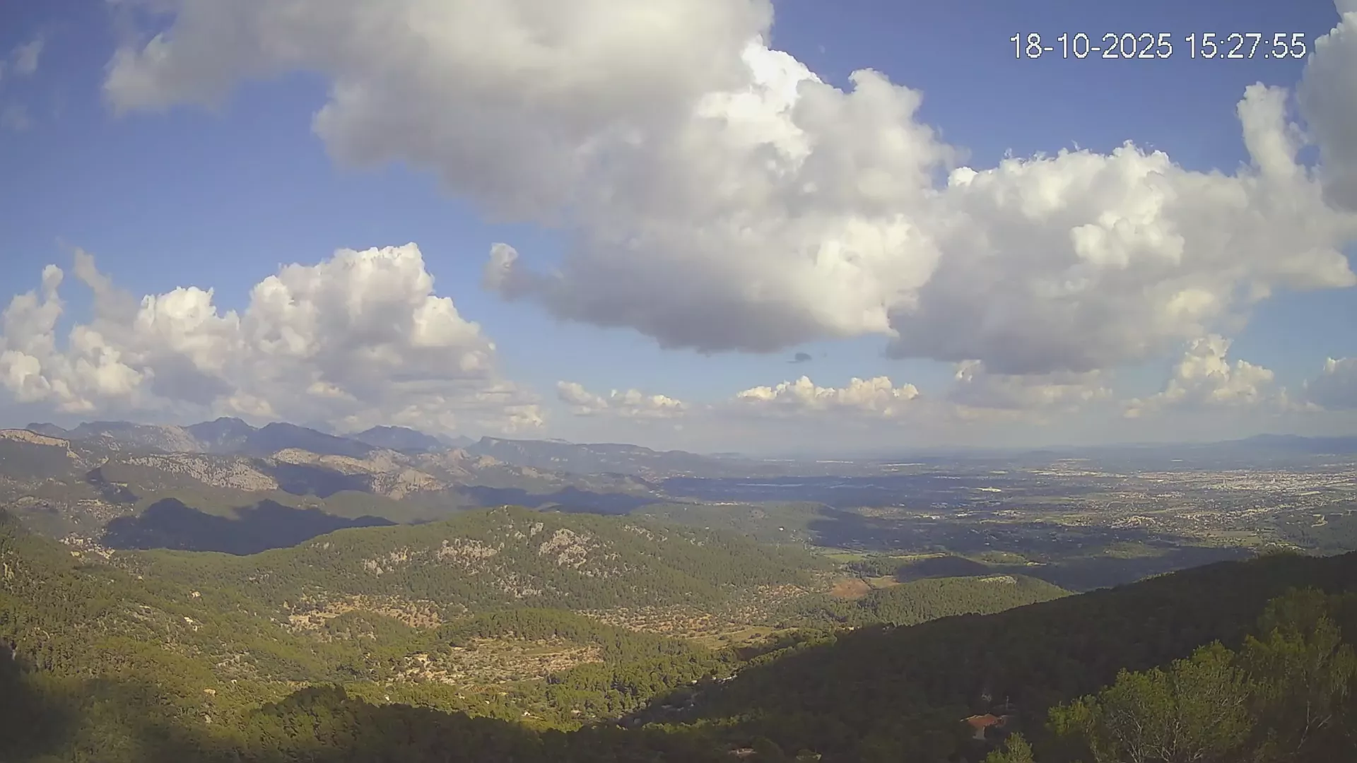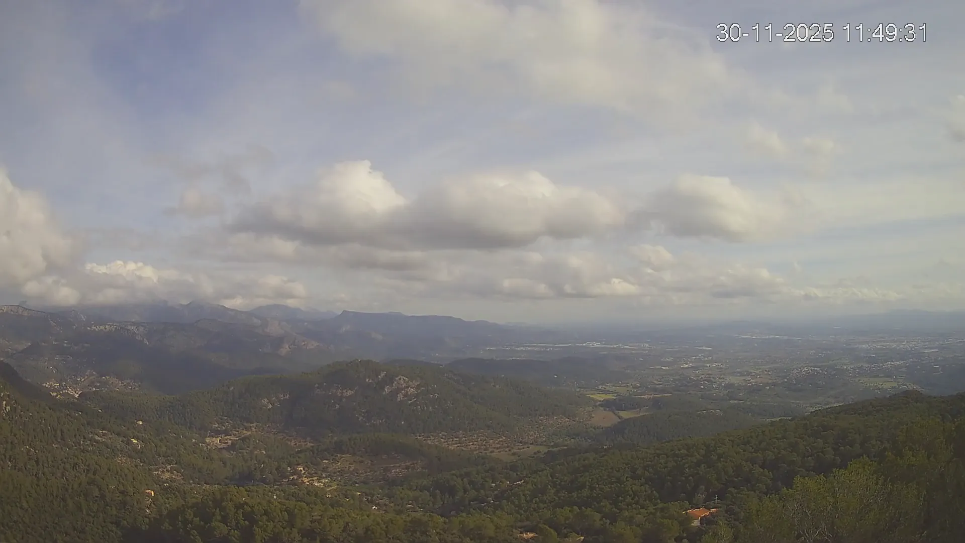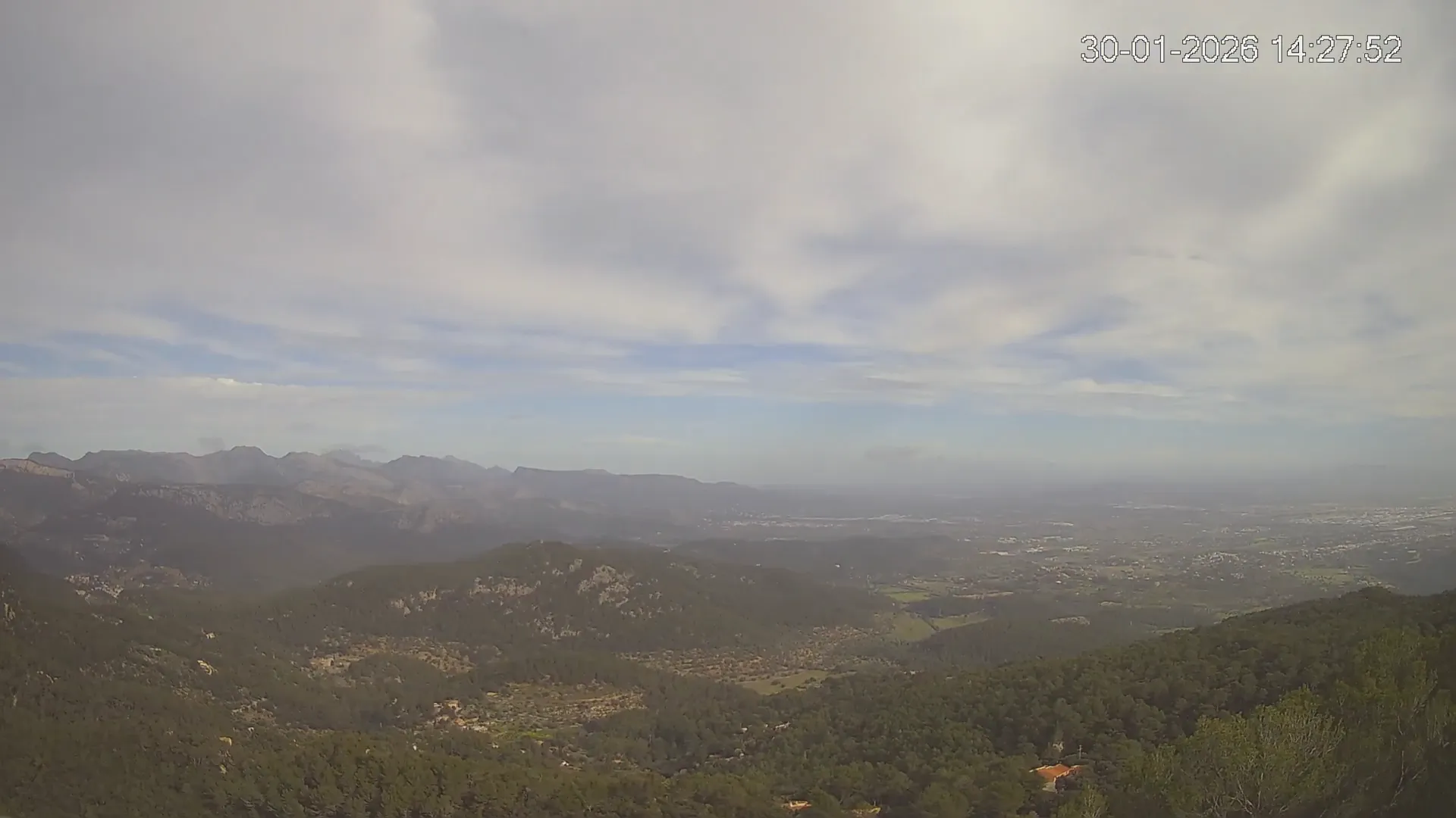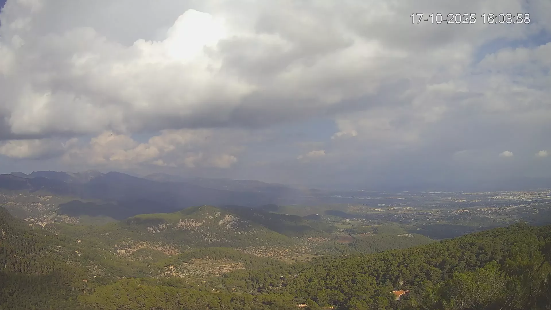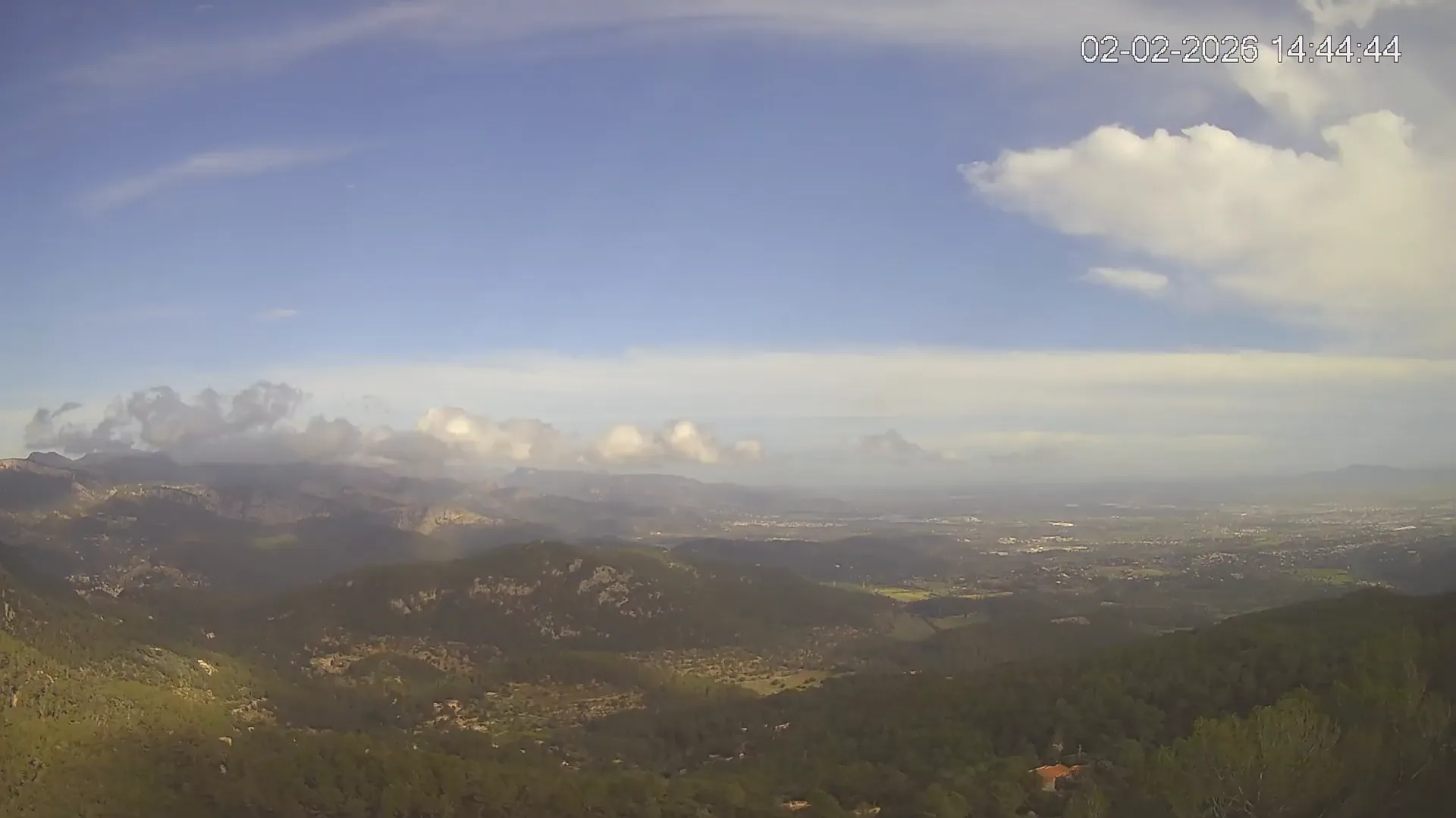 ¿Buscas una panorámica amplia del paisaje mallorquín? Esta cámara situada en el Mirador de Sobremunt ofrece una vista en tiempo real desde las alturas, capturando una mezcla de naturaleza y paisaje urbano. Desde aquí, puedes observar las colinas cubiertas de vegetación mediterránea en primer plano, mientras que al fondo se asoma la ciudad de Palma y, en días despejados, el mar en el horizonte. ¿Te interesa ver cómo ha cambiado el paisaje esta semana? Accede a los timelapses de los últimos 7 días y observa la evolución del clima, la luz recorriendo el paisaje y los colores del atardecer sobre la ciudad y el mar. Utilidad perfecta para senderistas, fotógrafos o quienes disfrutan de vistas panorámicas de Mallorca.