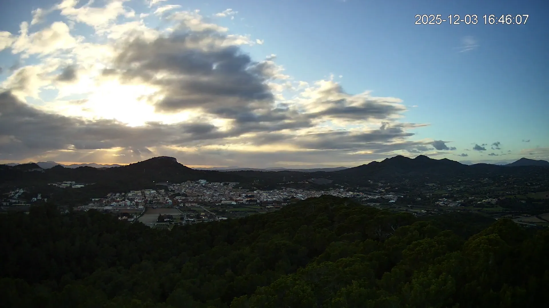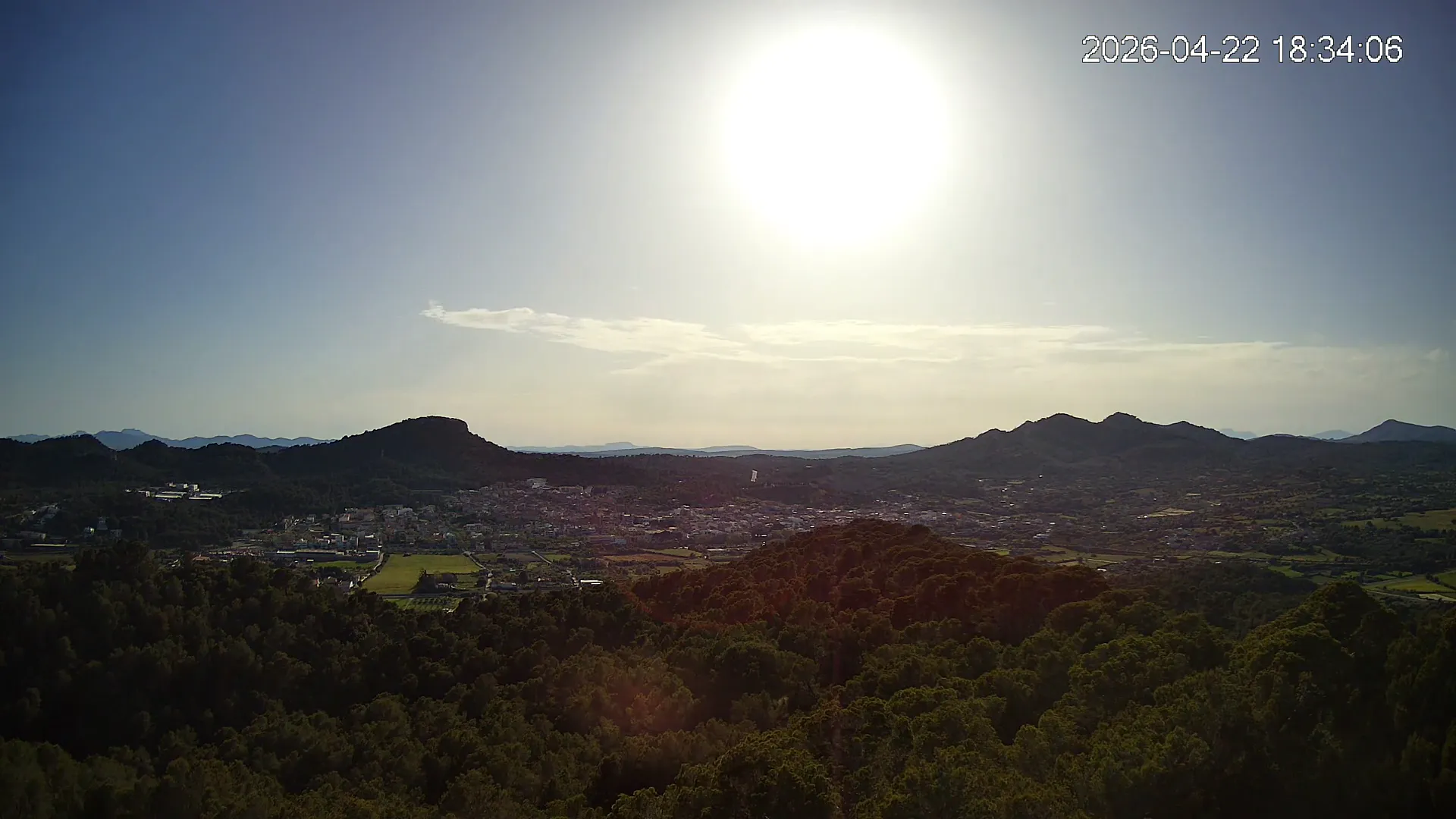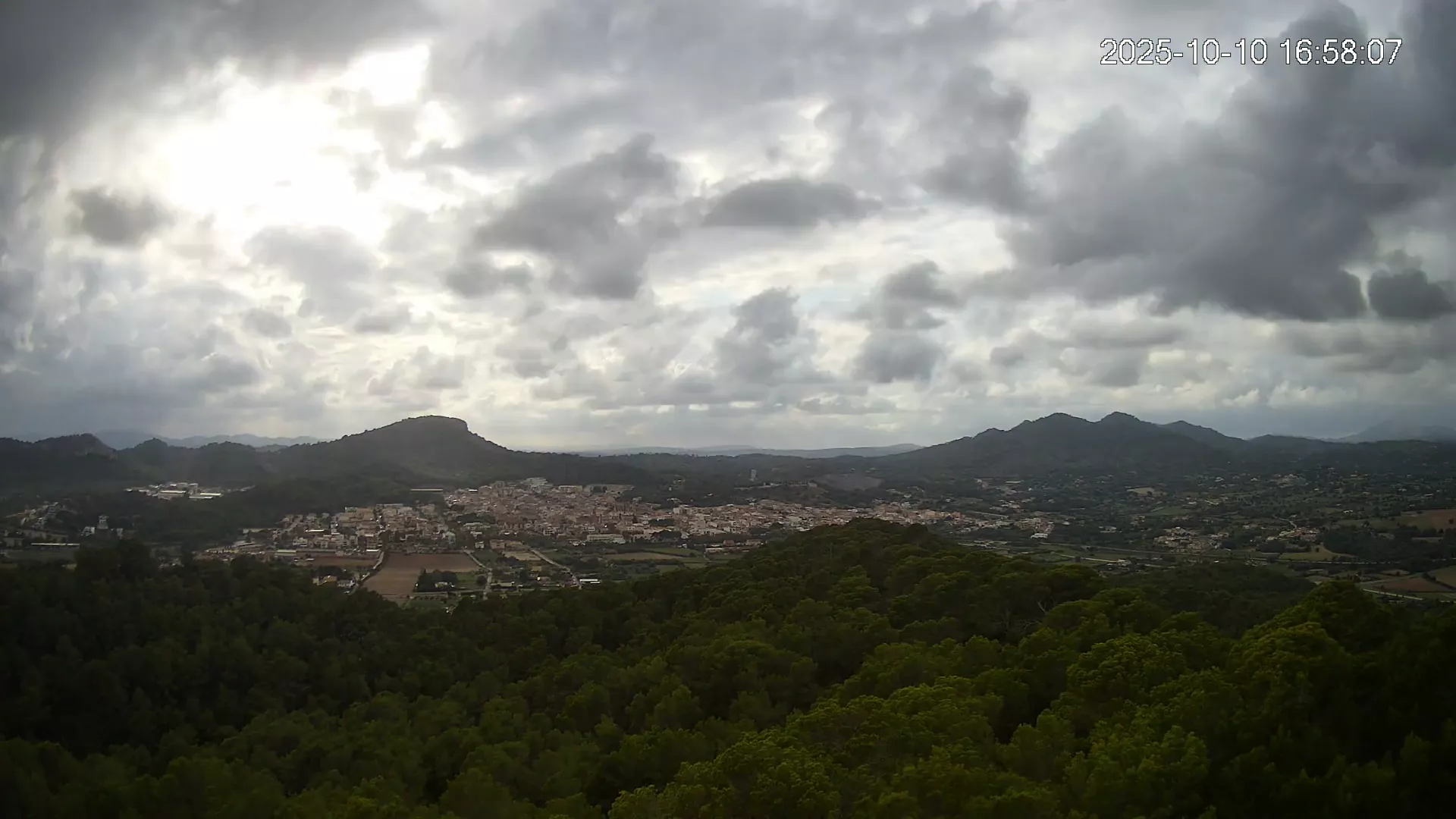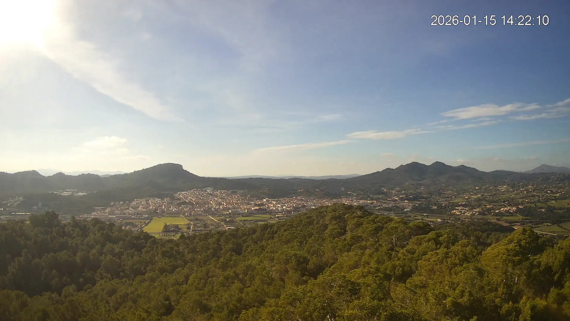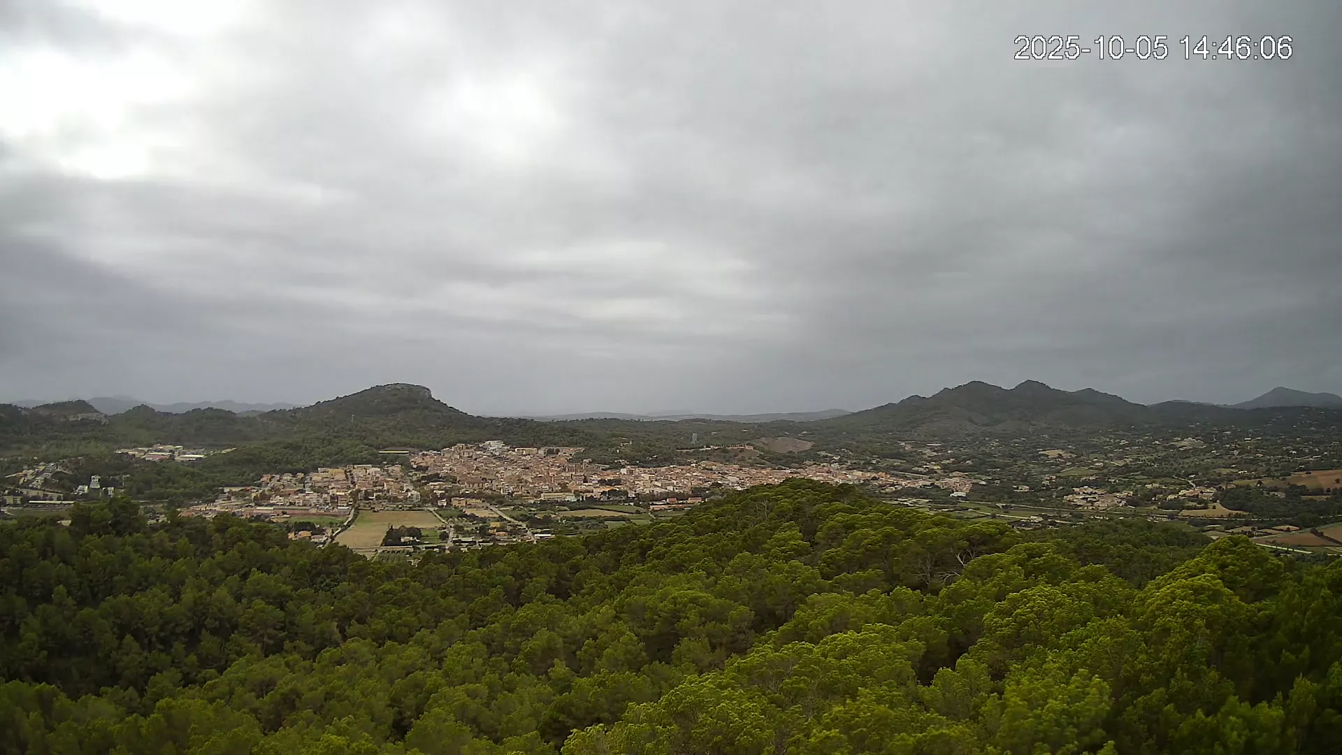 Desde el Puig de Son Corb, esta cámara ofrece una vista privilegiada del pueblo de Son Servera, con sus tejados y trazado urbano integrados en el paisaje del Llevant mallorquín. A la derecha destaca la muntanya de na Penyal, con su silueta inconfundible, que enmarca la escena y aporta carácter a esta panorámica donde naturaleza y vida local conviven en equilibrio.