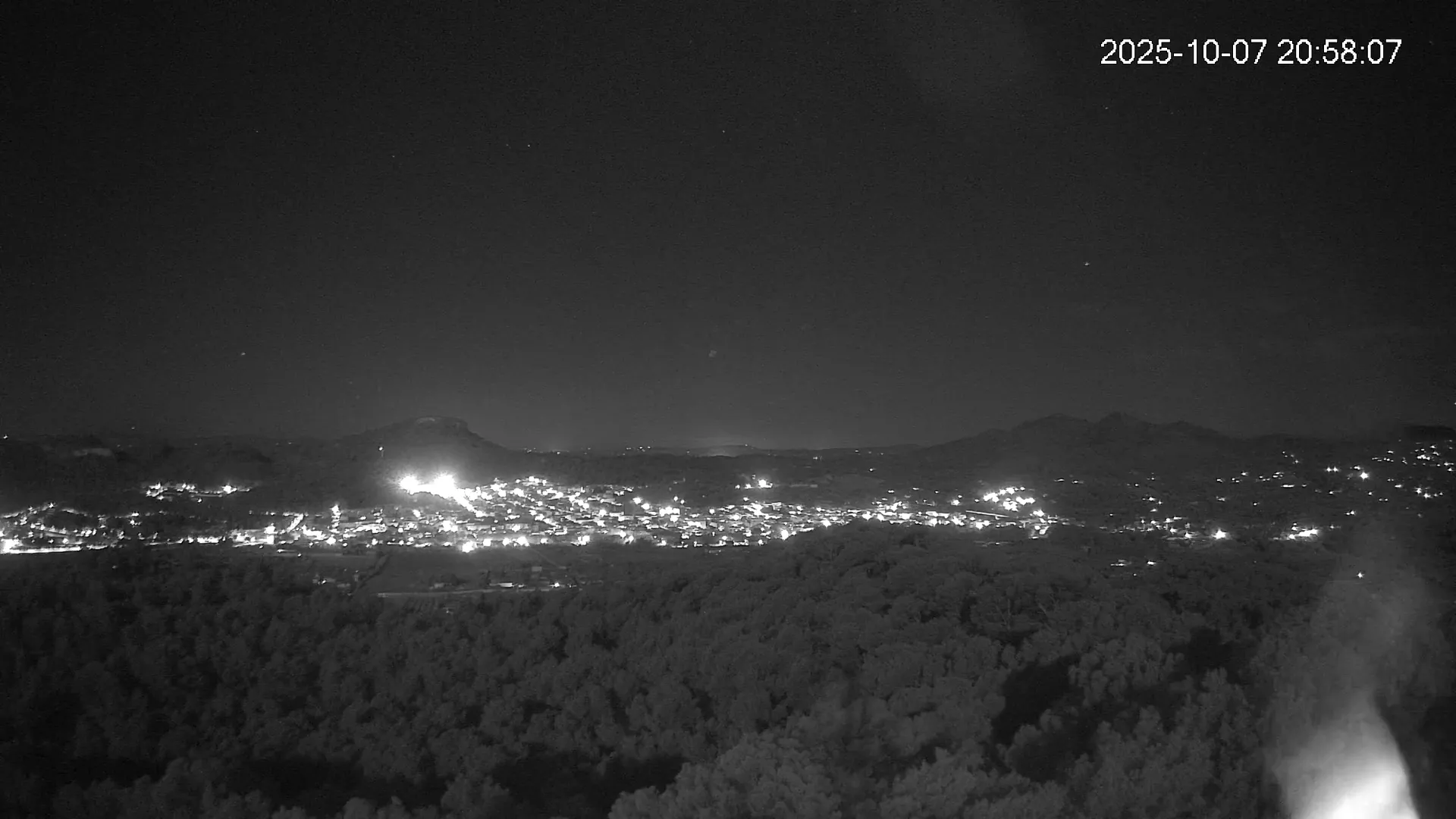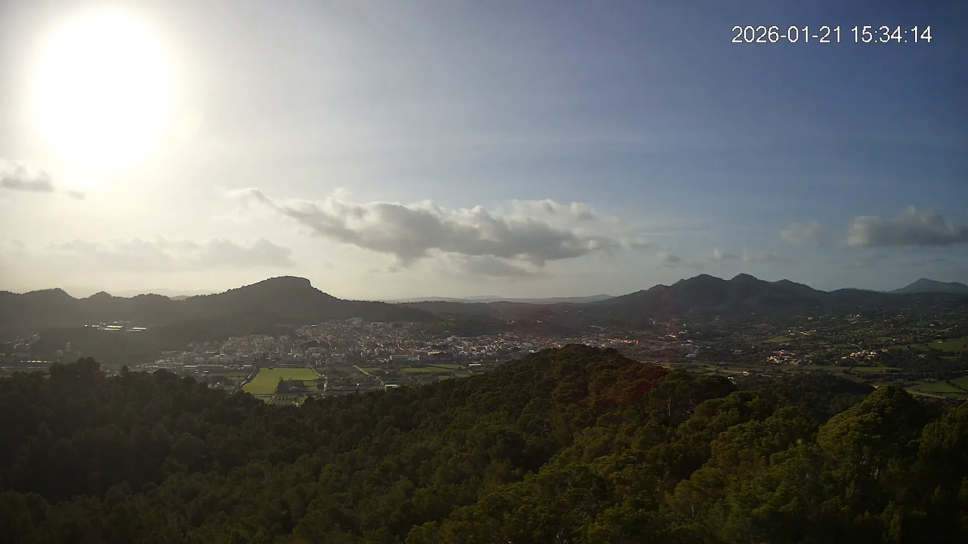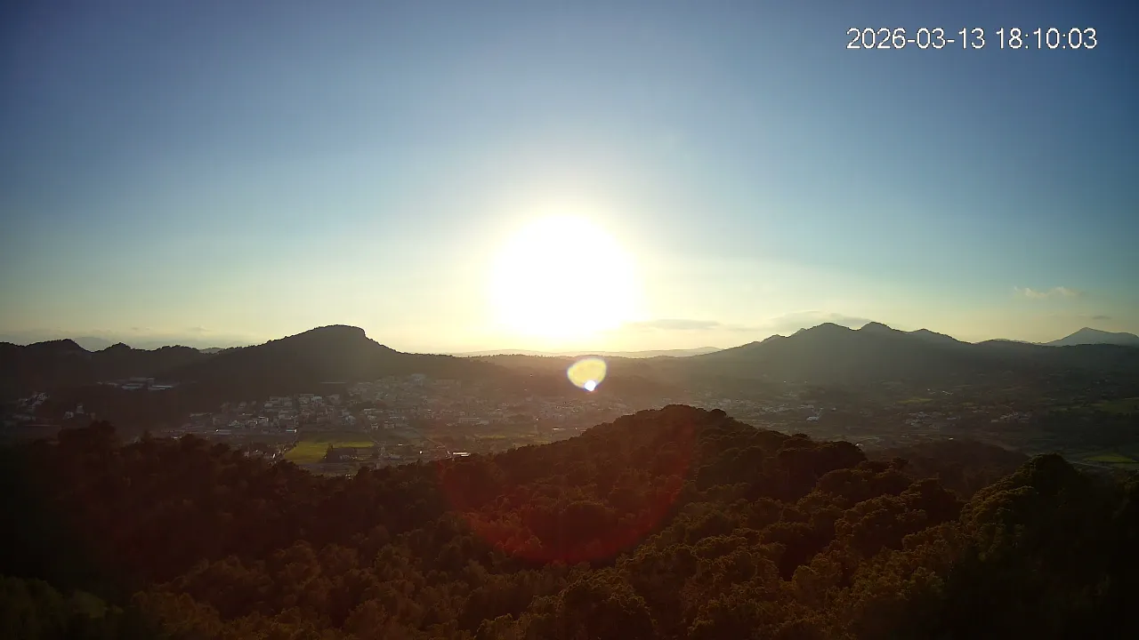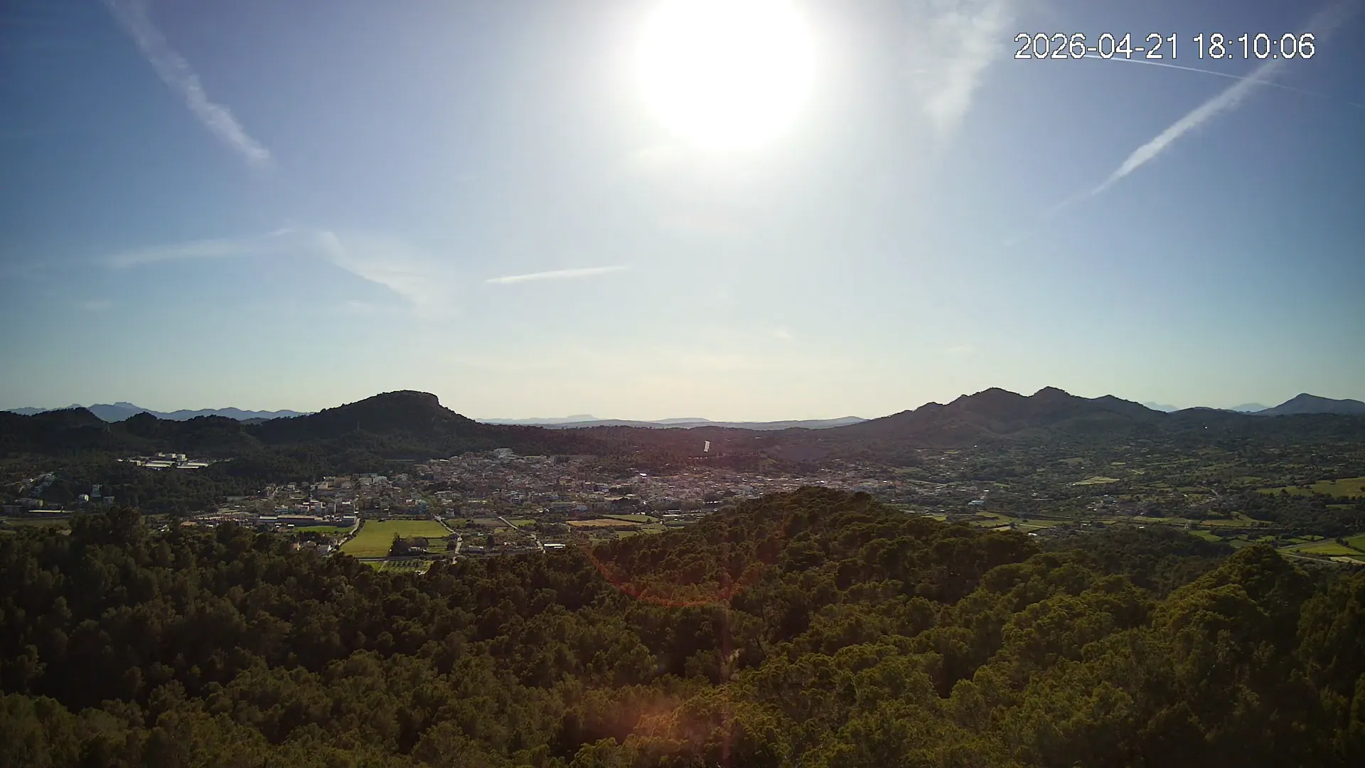 Desde el Puig de Son Corb, esta cámara ofrece una vista privilegiada del pueblo de Son Servera, con sus tejados y trazado urbano integrados en el paisaje del Llevant mallorquín. A la derecha destaca la muntanya de na Penyal, con su silueta inconfundible, que enmarca la escena y aporta carácter a esta panorámica donde naturaleza y vida local conviven en equilibrio.